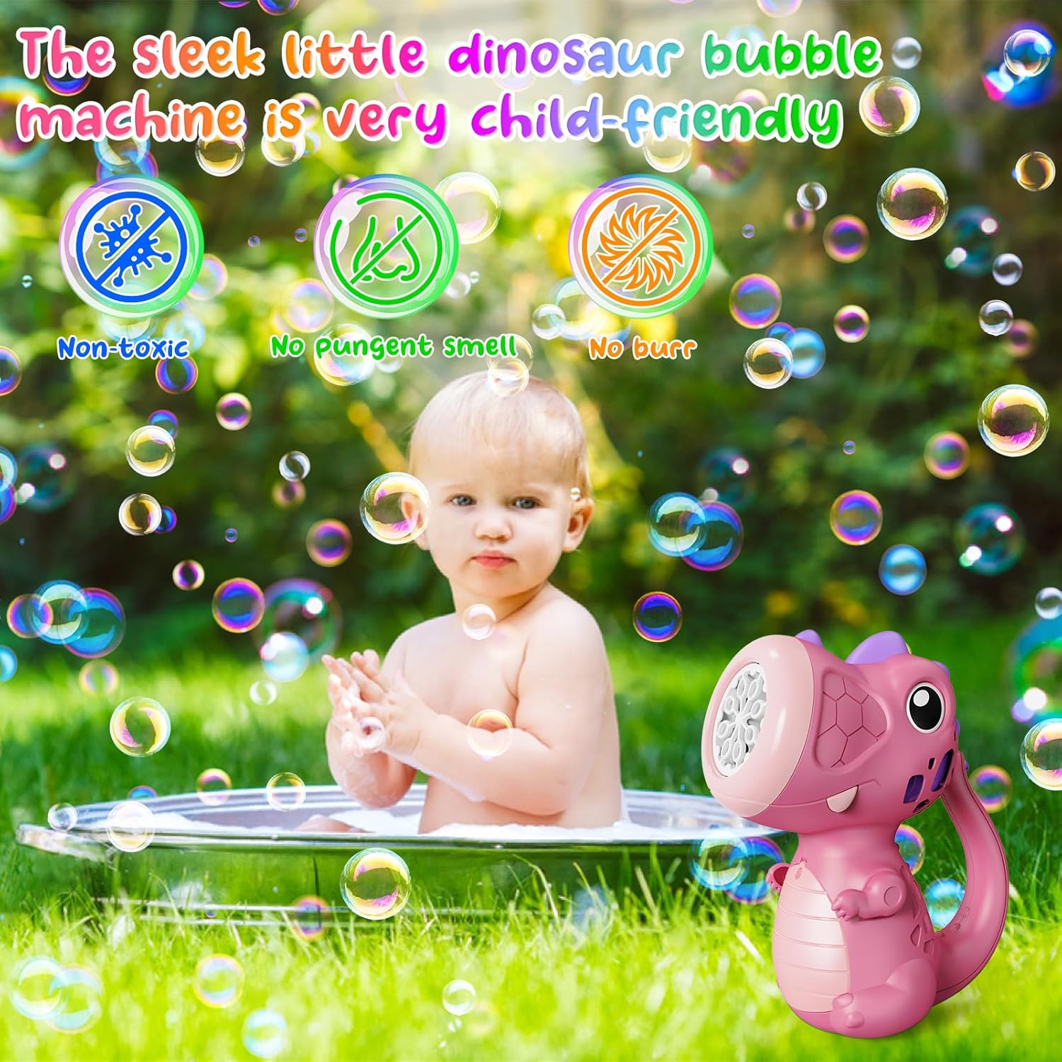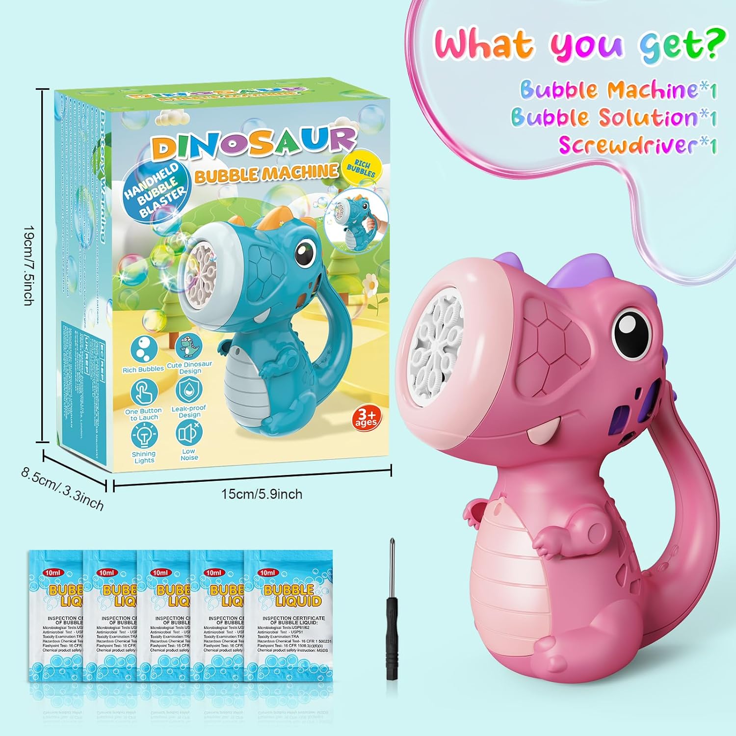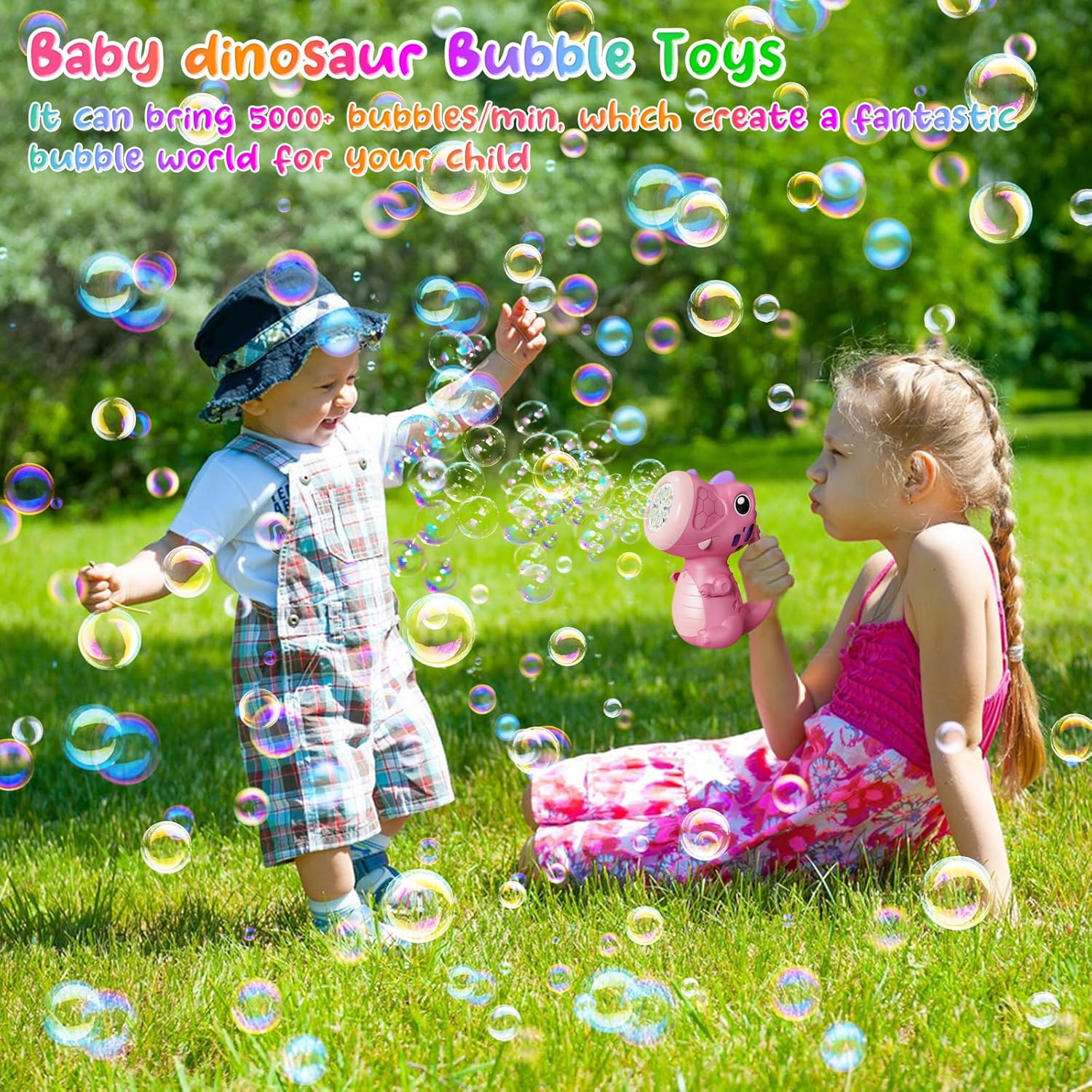 Simpatica macchina per bolle di dinosauro: la macchina per bolle di dinosauro Panacare adotta l'ultimo design di dinosauro, con forma carina e colori vivaci, che è molto attraente per i bambini. Luci fantastiche aggiungono più divertimento al momento delle bolle. Premi l'interruttore e attendi 30 secondi per generare migliaia di bolle. È il giocattolo a bolle ideale per immergere i bambini nel mondo delle bolle! Oltre 5000 bolle colorate al minuto: la macchina per bolle di dinosauro è dotata di un potente motore brushless e di una bacchetta per bolle a 8 fori, con interruttore di avvio one-touch, produce oltre 5000 bolle colorate al minuto, portando il tuo bambino in una bolla piena di bolle. L'interessante mondo delle bollicine. Il serbatoio a bolle integrato impedisce la fuoriuscita di liquidi e non macchia vestiti e mani durante l'uso. I bambini possono giocare liberamente. Design senza perdite e luce LED: la macchina per bolle per bambini è dotata di una bottiglia di liquido per bolle sigillata individualmente per evitare perdite a 360 gradi. Luce LED lampeggiante incorporata. Premi l'interruttore e scoppieranno tantissime bolle per rendere il gioco più divertente anche di notte. Fornisce effetti visivi sorprendenti. Ottimo per ragazzi e ragazze di tutte le età. Lasciate che i vostri bambini giochino con la macchina per le bolle all'aperto di notte e vivano momenti adorabili con le bolle. Materiale sicuro per i bambini: la macchina automatica per bolle è realizzata in plastica ABS ecologica e atossica, di alta qualità e durevole. Soddisfa gli standard internazionali sui giocattoli ed è sicuro per bambini, neonati, animali domestici e adulti. La soluzione per bolle ha superato il test di sicurezza, la bacchetta per bolle è saldamente collegata al flacone della soluzione e non perde la soluzione. Vengono forniti con 5 sacchetti di concentrato di bolle, che possono portare momenti felici in qualsiasi momento e rendere più piacevole il tempo di gioco all'aperto. Adatto a diverse attività: il soffiatore di bolle è un giocattolo da esterno indispensabile per diverse occasioni. Non solo porta gioia infinita a bambini, adulti, animali domestici, ma è perfetto anche per feste di compleanno per bambini, riunioni di famiglia, matrimoni, cani, gatti. e decorazione dell'atmosfera romantica per giochi con animali, feste, campeggio, feste in piscina, vacanze e altro ancora. Questa è una macchina per bolle durevole che è un ottimo regalo per neonati, bambini e animali domestici.