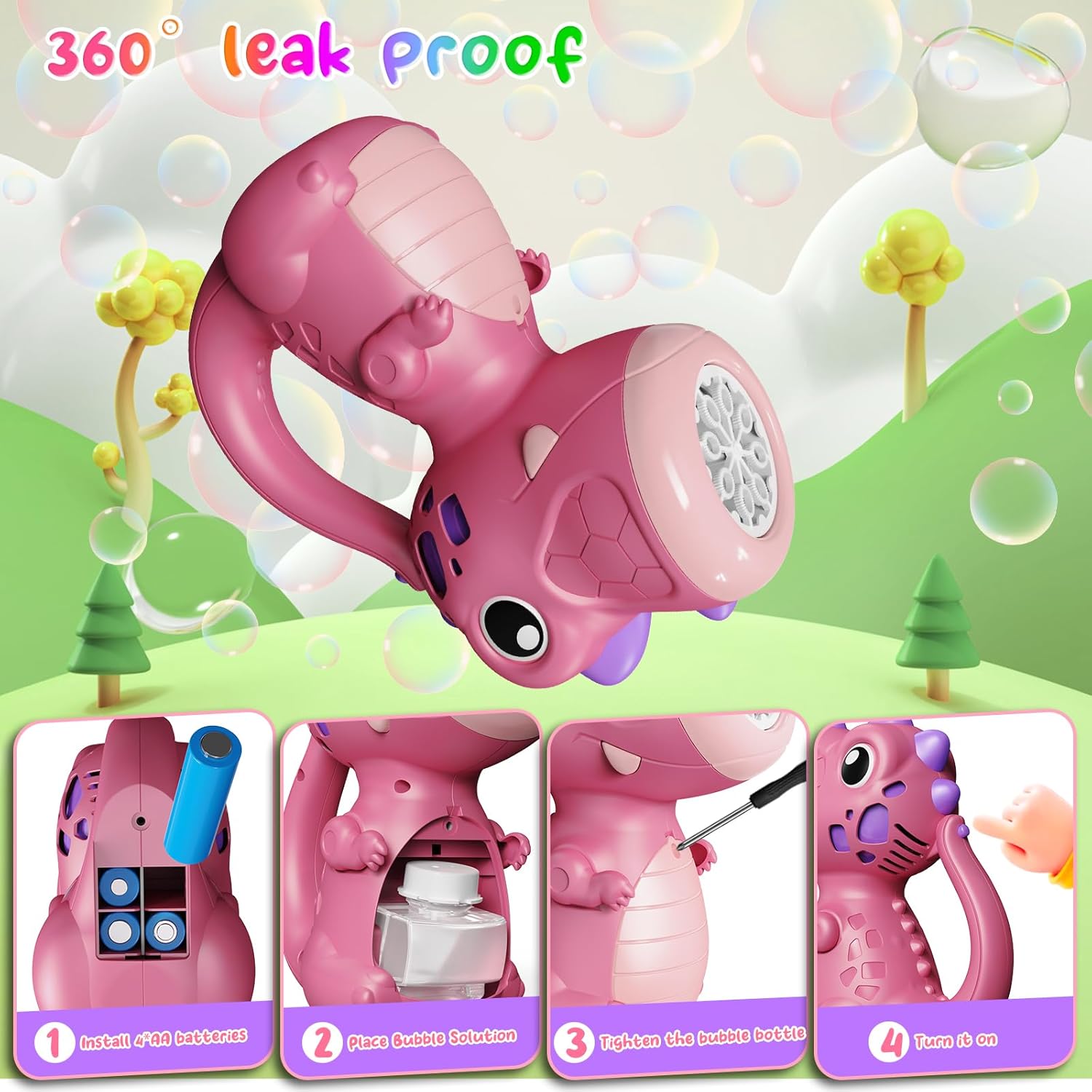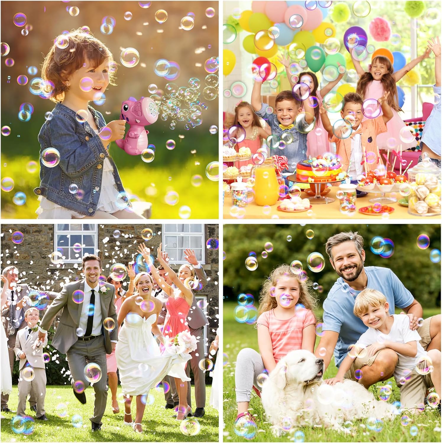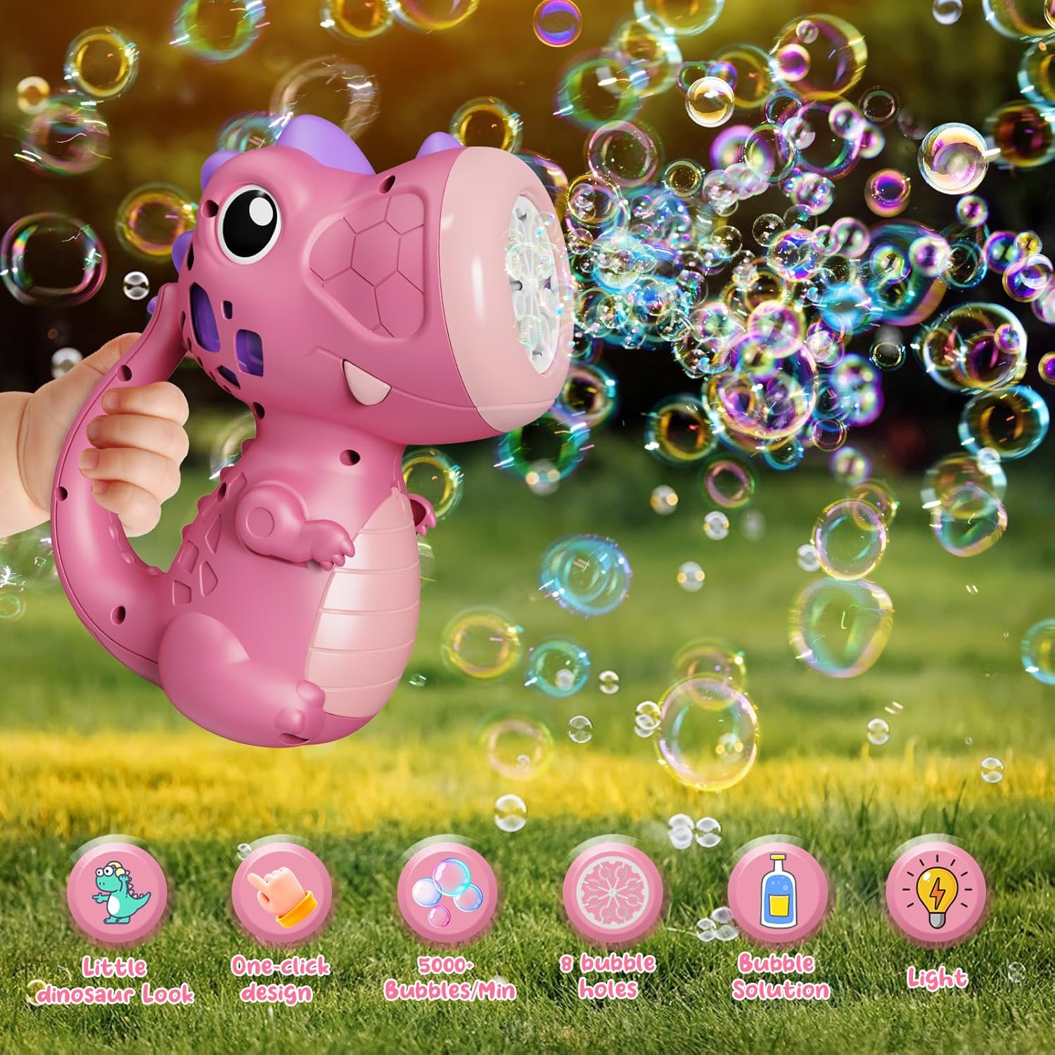 Simpatica macchina per bolle di dinosauro: la macchina per bolle di dinosauro Panacare adotta l'ultimo design di dinosauro, con forma carina e colori vivaci, che è molto attraente per i bambini. Luci fantastiche aggiungono più divertimento al momento delle bolle. Premi l'interruttore e attendi 30 secondi per generare migliaia di bolle. È il giocattolo a bolle ideale per immergere i bambini nel mondo delle bolle! Oltre 5000 bolle colorate al minuto: la macchina per bolle di dinosauro è dotata di un potente motore brushless e di una bacchetta per bolle a 8 fori, con interruttore di avvio one-touch, produce oltre 5000 bolle colorate al minuto, portando il tuo bambino in una bolla piena di bolle. L'interessante mondo delle bollicine. Il serbatoio a bolle integrato impedisce la fuoriuscita di liquidi e non macchia vestiti e mani durante l'uso. I bambini possono giocare liberamente. Design senza perdite e luce LED: la macchina per bolle per bambini è dotata di una bottiglia di liquido per bolle sigillata individualmente per evitare perdite a 360 gradi. Luce LED lampeggiante incorporata. Premi l'interruttore e scoppieranno tantissime bolle per rendere il gioco più divertente anche di notte. Fornisce effetti visivi sorprendenti. Ottimo per ragazzi e ragazze di tutte le età. Lasciate che i vostri bambini giochino con la macchina per le bolle all'aperto di notte e vivano momenti adorabili con le bolle. Materiale sicuro per i bambini: la macchina automatica per bolle è realizzata in plastica ABS ecologica e atossica, di alta qualità e durevole. Soddisfa gli standard internazionali sui giocattoli ed è sicuro per bambini, neonati, animali domestici e adulti. La soluzione per bolle ha superato il test di sicurezza, la bacchetta per bolle è saldamente collegata al flacone della soluzione e non perde la soluzione. Vengono forniti con 5 sacchetti di concentrato di bolle, che possono portare momenti felici in qualsiasi momento e rendere più piacevole il tempo di gioco all'aperto. Adatto a diverse attività: il soffiatore di bolle è un giocattolo da esterno indispensabile per diverse occasioni. Non solo porta gioia infinita a bambini, adulti, animali domestici, ma è perfetto anche per feste di compleanno per bambini, riunioni di famiglia, matrimoni, cani, gatti. e decorazione dell'atmosfera romantica per giochi con animali, feste, campeggio, feste in piscina, vacanze e altro ancora. Questa è una macchina per bolle durevole che è un ottimo regalo per neonati, bambini e animali domestici.