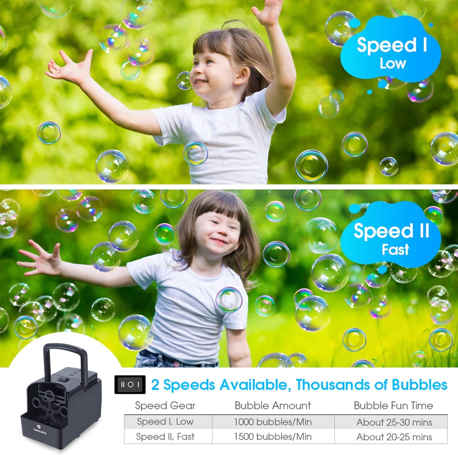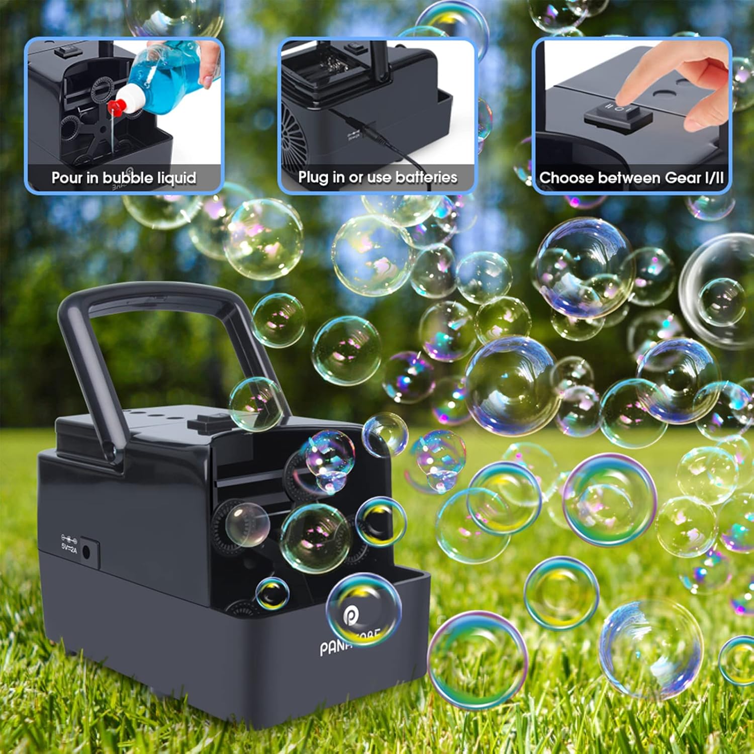 Macchina per bolle di sapone completamente regolabile: può produrre automaticamente migliaia di bolle al minuto. È possibile impostare due diverse frequenze di bolle. Crea un mondo di bolle fantasy per il tuo bambino o animale domestico. Macchina per bolle di sapone regolabile Tomatic: può produrre automaticamente migliaia di bolle al minuto. È possibile impostare due diverse frequenze di bolle. Crea un mondo di bolle fantasy per il tuo bambino o animale domestico. Facile da usare: posiziona la soluzione di schiuma davanti alla ventola della macchina per bolle di sapone e premi semplicemente il pulsante per erogare una grande quantità di bolle. La capacità della soluzione di sapone è di 150 ml e si possono produrre circa 1500 bolle di sapone al minuto. Materiali sicuri: la macchina per bolle di sapone è realizzata con materiali ABS sicuri e non tossici e ha ricevuto certificati CPSIA, ASTM, CPC e altri giocattoli per bambini. Facile da indossare e durevole. Design a misura di bambino: con l'esclusivo design elettrico, la soffiatrice può fermare la rotazione delle bacchette magiche per evitare che i bambini si feriscano le dita se afferrate accidentalmente. Adatto: La macchina automatica per bolle di sapone è uno strumento per creare un'atmosfera romantica e sognante, ideale per matrimoni, compleanni, feste e altre attività. Inoltre, può essere un grande regalo per i tuoi amici e familiari.
