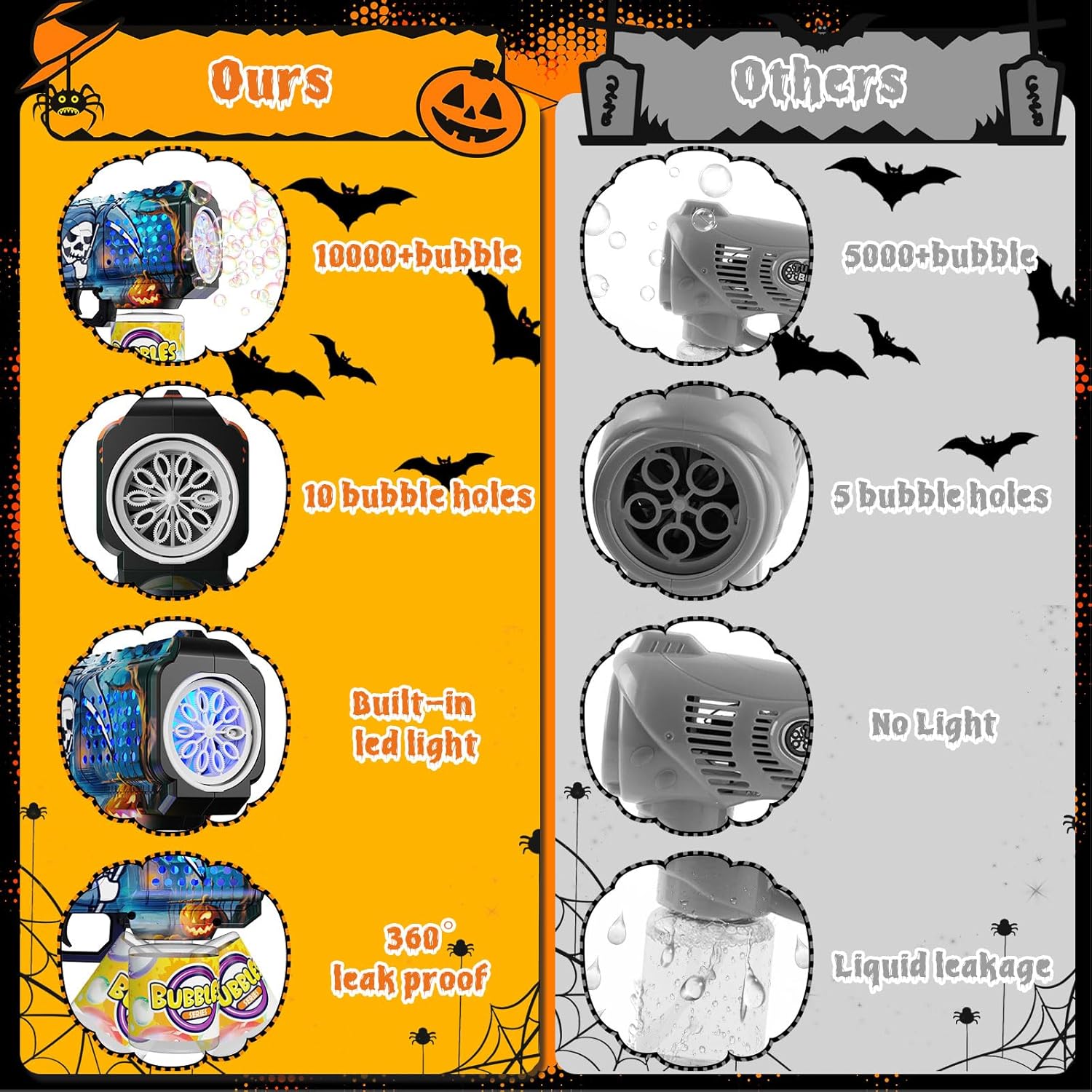 🎃【Divertimento spettrale】La nostra pistola a bolle di Halloween è appositamente progettata con adorabili decorazioni di zucca/fantasma, che la rendono l'accessorio definitivo per le tue avventure dolcetto o scherzetto e le feste festive! 🕷️【Bolle veloci e ricche】Le nostre pistole a bolle hanno motori potenti che possono produrre bolle in rapida successione, fino a 4000-10000 bolle al minuto. Una ventola interna mantiene le bolle in circolazione. Rispetto ad altre pistole a bolle grandi e ingombranti, le prestazioni della nostra pistola a bolle sono le stesse, ma le dimensioni sono più leggere, più adatte al tuo bambino e facili da trasportare. 🎃【Perfetto per tutte le occasioni】Che tu stia organizzando una festa di Halloween o andando porta a porta a raccogliere caramelle, questa pistola a bolle aggiungerà una dose extra di eccitazione e gioia a tutte le tue celebrazioni di Halloween. 🕷️【Sicurezza dei bambini】I giocattoli a bolle sono realizzati con materiali ABS di alta qualità con superficie liscia, senza spigoli vivi, senza sbavature, senza irritazioni, resistenti agli odori, sicuri e non tossici. Hanno ottenuto i certificati CE, EN71, CPSIA, ASTM e CPC. È un materiale molto amichevole per il tuo bambino. 🎃【Design a prova di perdite】La bottiglia per bolle e la pistola per bolle si adattano perfettamente e non perdono. Anche se i bambini corrono in giro o si rincorrono. Non dovrai mai più preoccuparti che i vestiti dei tuoi figli si sporchino di nuovo.