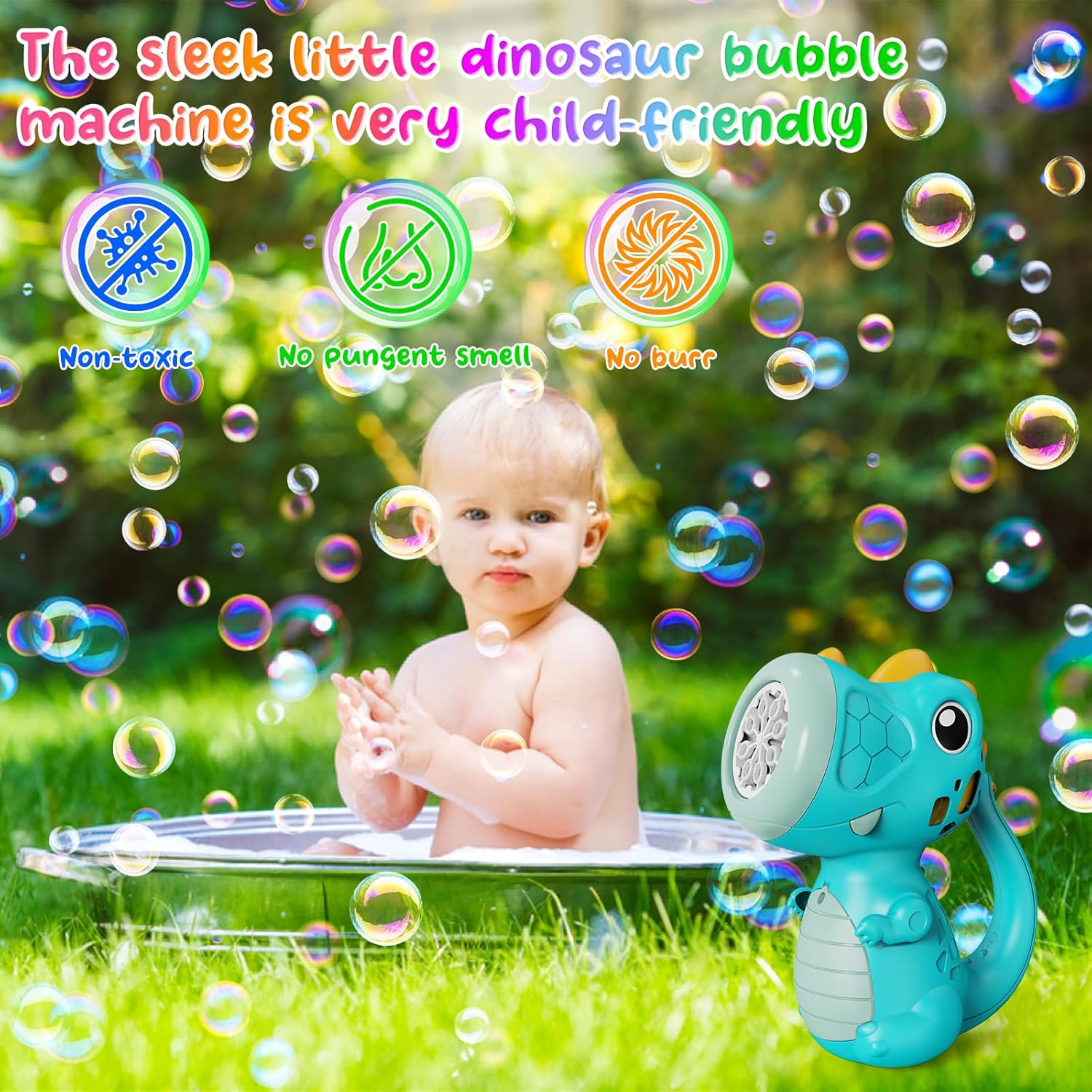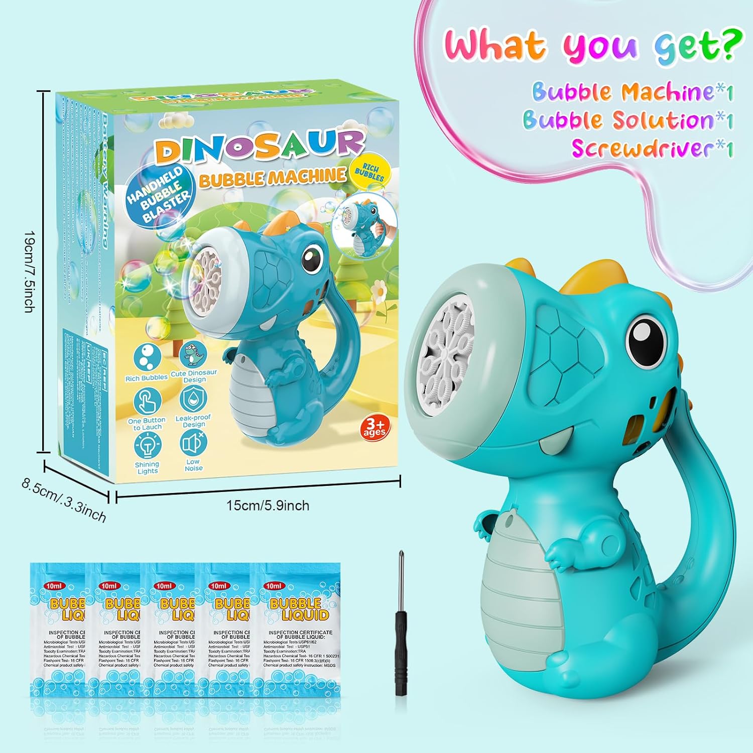 ⭐La macchina per le bolle dei dinosauri è irresistibilmente carina e piace ai bambini con i suoi colori vivaci e il suo aspetto carino. Il cucciolo di dinosauro ha le dimensioni perfette per le piccole mani del tuo bambino. ⭐Facile da usare: anche i bambini piccoli possono usarlo facilmente. Basta premere il pulsante sulla coda del cucciolo di dinosauro, accompagnato da luci lampeggianti, e più di 5.000 bolle al minuto esplodono dalla bocca del dinosauro, permettendo ai bambini di immergersi completamente in un meraviglioso mondo di bolle. ⭐Facile da trasportare: i bambini possono tenere i cuccioli di dinosauro per la coda e giocare e inseguire allegramente le bolle di sapone nell'aria nel parco, nel giardino, nel cortile o ovunque. Oppure puoi semplicemente posizionarlo ovunque. Che si tratti di un regalo di compleanno o di un giocattolo per tutti i giorni, questo è sicuramente il regalo più divertente per i bambini piccoli. ⭐Materiali di qualità adatti ai bambini: quando abbiamo selezionato i materiali per questo giocattolo a bolle automatico, soprattutto per i bambini, abbiamo utilizzato materiali ABS atossici di alta qualità, durevoli e robusti. E abbiamo fatto in modo che la superficie fosse rotonda e liscia, senza bave e odori pungenti. E' molto adatto ai bambini. ⭐Acquista ora e includeremo anche 5 buste di concentrato di bolle. Puoi mescolare il liquido per bolle in un rapporto di 1:5 o 1:8 e ottenere fino a 400 ml di liquido per bolle, che equivale a circa 10 bottiglie di liquido per bolle.