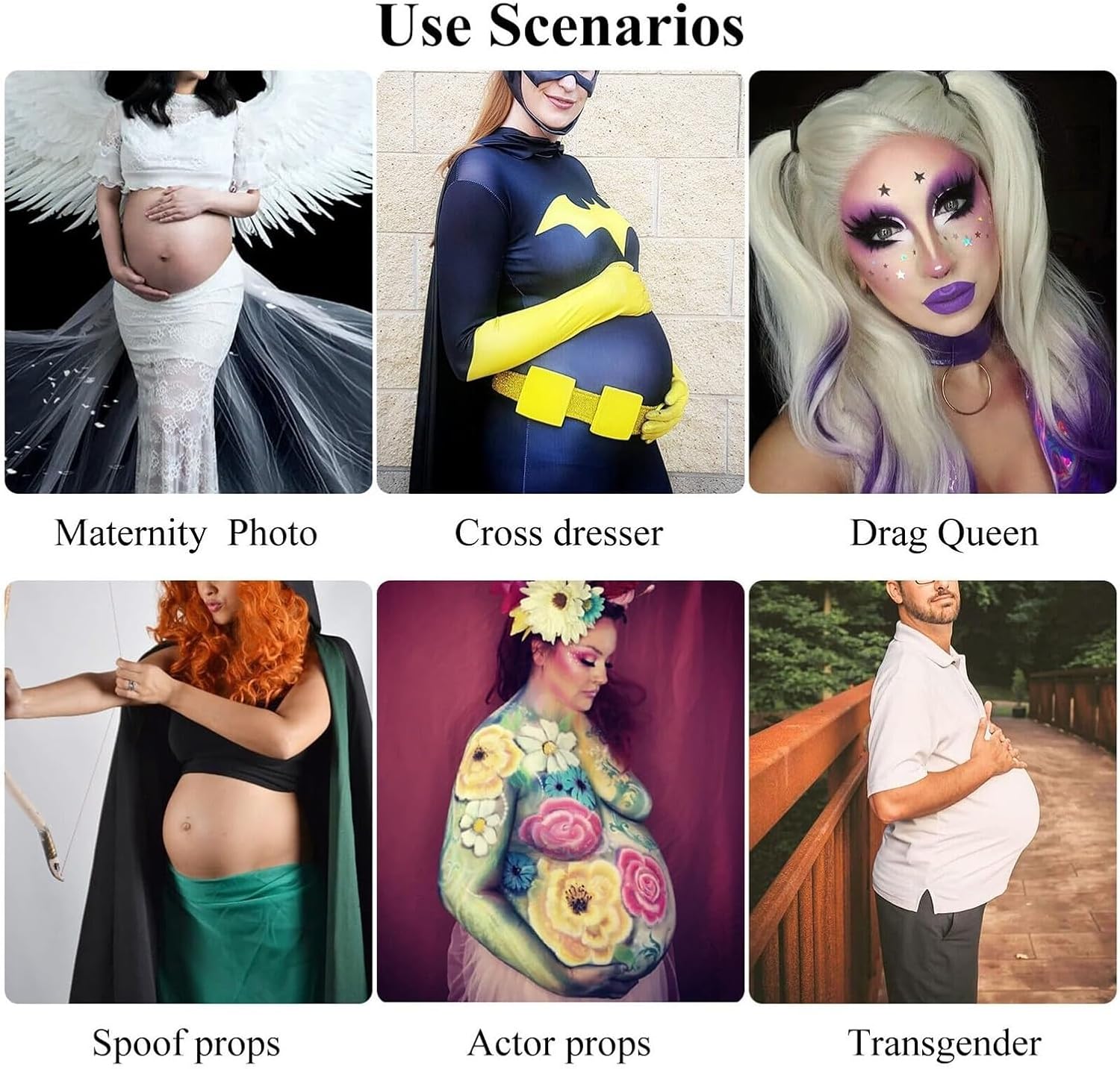 Taglia della pancia gemellare: scegli tra S (3-4 mesi), M (5-7 mesi) o L (8-10 mesi) per una simulazione di gravidanza realistica. Imita perfettamente la pancia gemellare naturale con contorni e distribuzione del peso realistici. Silicone alimentare di alta qualità: realizzato in silicone morbido e sicuro per la pelle, questo pancione leggero è ipoallergenico, inodore e delicato sulla pelle sensibile. Progettato per un uso prolungato senza irritazioni. Vestibilità sicura e confortevole: presenta un design ergonomico con imbottitura in cotone elastico per una vestibilità aderente e senza oscillazioni. Rimane in posizione durante i movimenti, ideale per costumi, spettacoli o prove di abbigliamento premaman. Multiuso: ideale per cosplay, produzioni teatrali, spettacoli drag, transgender, servizi fotografici di maternità, costumi di Halloween e scherzi. Facile manutenzione: pulire con sapone neutro e asciugare all'aria. Evitare oggetti appuntiti, calore e prodotti chimici. Una leggera spolverata di talco mantiene la superficie liscia e ne prolunga la durata.