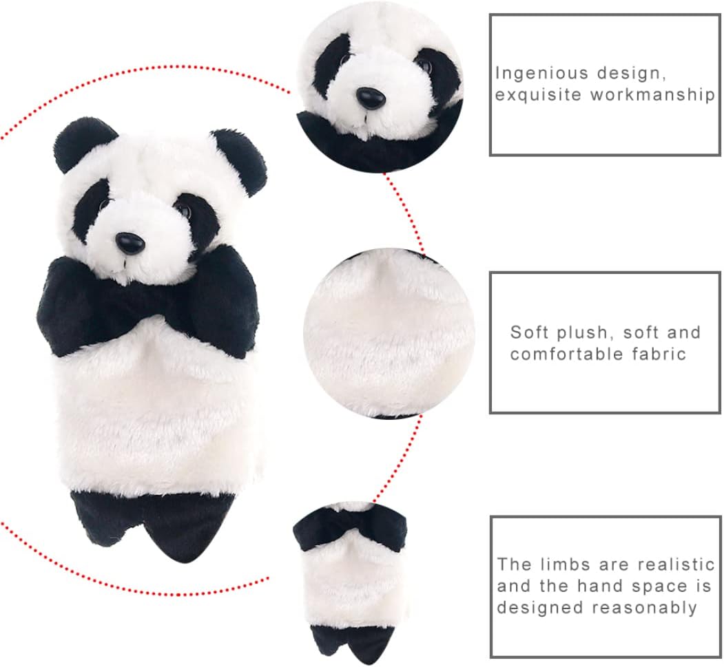 Giocattoli portatili: portatili e possono essere portati ovunque tu vada, il che renderà più divertente il tempo della storia del bambino. Materiale: questo giocattolo è realizzato in materiale sicuro, lussuoso e cotone. Panda carina: il nostro burattino Panda è dotato di cartoni animati. Espressioni facciali, trame soffici, tutti i dettagli sono ben progettati. Dimensioni: il burattino a mano panda è di circa 25 cm, perfettamente in forma per il tuo palmo. Applicazione: applicabile all'educazione della prima infanzia, ai giocattoli in età prescolare, agli oggetti di scena di giochi di narrazione, alle attività familiari, alla festa a tema degli animali, agli oggetti di scena del palcoscenico.