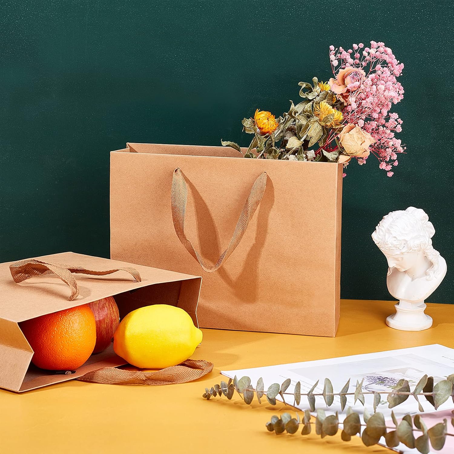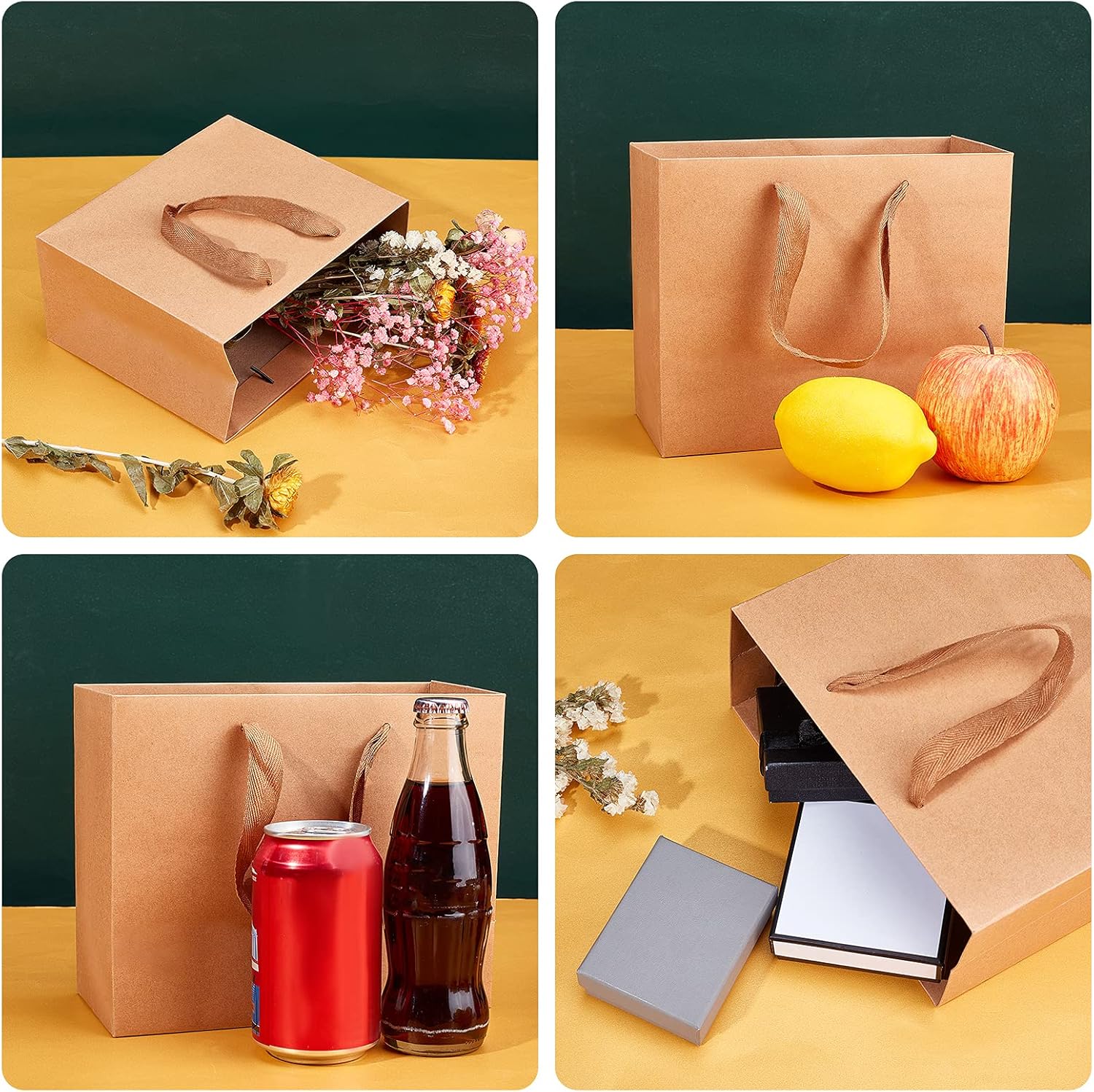 Dimensioni: 22x18x10 cm. I nostri sacchetti regalo marroni aiutano i tuoi regali e li proteggono dal mondo esterno. Puoi anche usarli come contenitori per bomboniere e omaggi. La confezione include: confezione da 10 sacchetti regalo in carta. Il nuovo manico in tessuto è più resistente del normale manico in carta e offre una sensazione confortevole sotto carichi pesanti di sacchetti di carta fai da te: con colori naturali solidi, puoi personalizzarli con le tue idee o disegni. I sacchetti di carta spessa possono essere dipinti, timbrati, inchiostrati, stampati e abbelliti in qualsiasi modo. Resistente e versatile: questa borsa regalo è realizzata in normale carta kraft e ha un robusto manico in tessuto. Sono sacchetti di carta resistenti e robusti e i sacchetti a scatola hanno un fondo piatto in modo che possano reggere bene. Ampio utilizzo: sono la soluzione perfetta per un modo divertente di essere creativi facendo regali, facendo acquisti al dettaglio, facendo shopping, festeggiando o confezionando articoli per una conferenza. Borse con manico Kraft, buste di carta, buste regalo, borse nuziali, borse per la spesa, borse per merchandise, borse per feste.