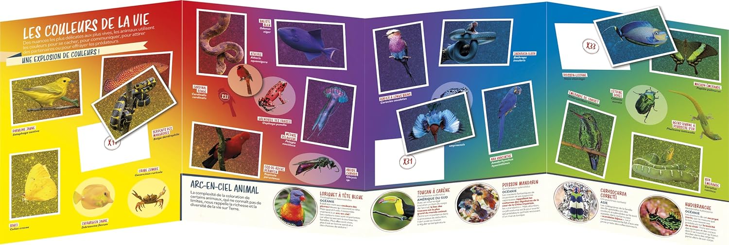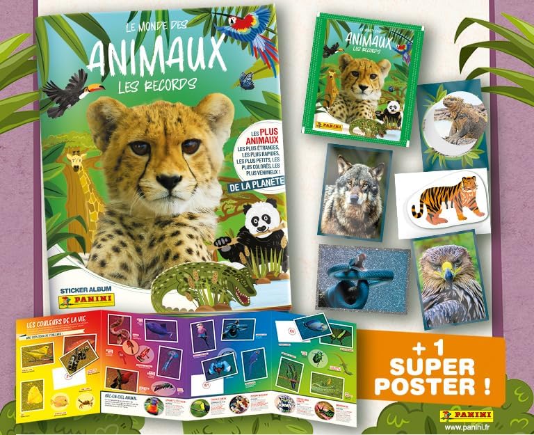Scopri tantissime informazioni incredibili sugli animali e impara divertendoti. Questo set contiene 1 album + 50 buste da 5 figurine, per un totale di 250 figurine L'album contiene 48 pagine + 1 poster 224 figurine da collezionare per completare il tuo album su tutti i dischi degli animali I più strani, i più veloci, i più piccoli, i più colorati, i più velenosi... Non rimarrai intrappolato con gli animali e stupirai i tuoi amici e genitori