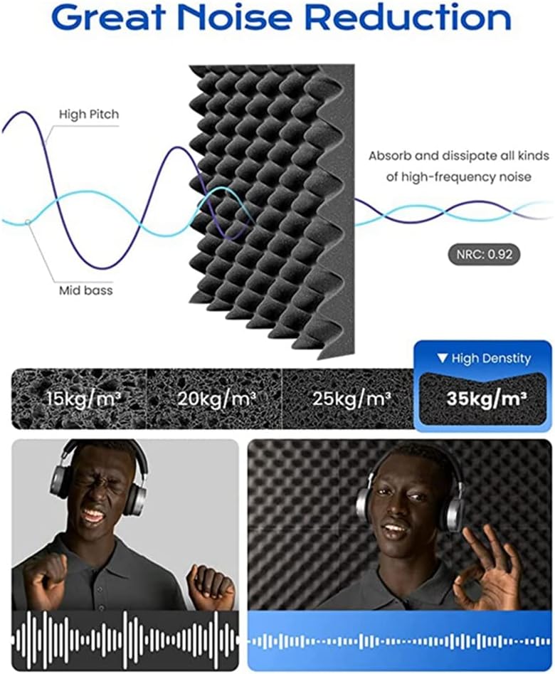 [Riduce il rumore] I insonorizzati in schiuma per uova sono un efficace materiale di isolamento acustico che riduce il rumore esterno, creando un silenzioso per il tuo studio di casa, studio di registrazione o ufficio. [Prevenzione 'eco] Questo pannello acustico in schiuma presenta un design a cassa d' che riduce efficacemente l'eco e il riflesso interni, fornendo un'esperienza più e naturale. [Alta resilienza e densità] I in schiuma fonoassorbente a recupero rapido sono realizzati in materiale poliuretanico di alta qualità con una ad alta densità e alta resilienza, che garantisce una lunga durata e prestazioni di isolamento acustico efficaci. [Sicuro e non tossico] La schiuma per casse per uova insonorizzata è realizzata con materiali atossici di alta qualità che sono sicuri per l'uso in qualsiasi . La schiuma è di sostanze chimiche nocive e soddisfa i più elevati standard di sicurezza antincendio, rendendola una scelta affidabile e sicura per le tue esigenze di isolamento acustico. [Versatile] La schiuma insonorizzante per uova è adatta per una varietà di applicazioni, tra cui registrazione musicale, produzione video, chat vocale, chiamate in conferenza, home theater e altro ancora, rendendo il tuo suono più e professionale.
