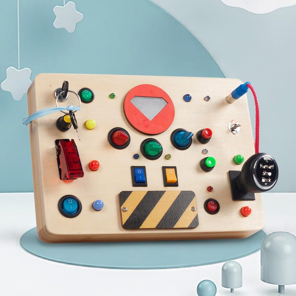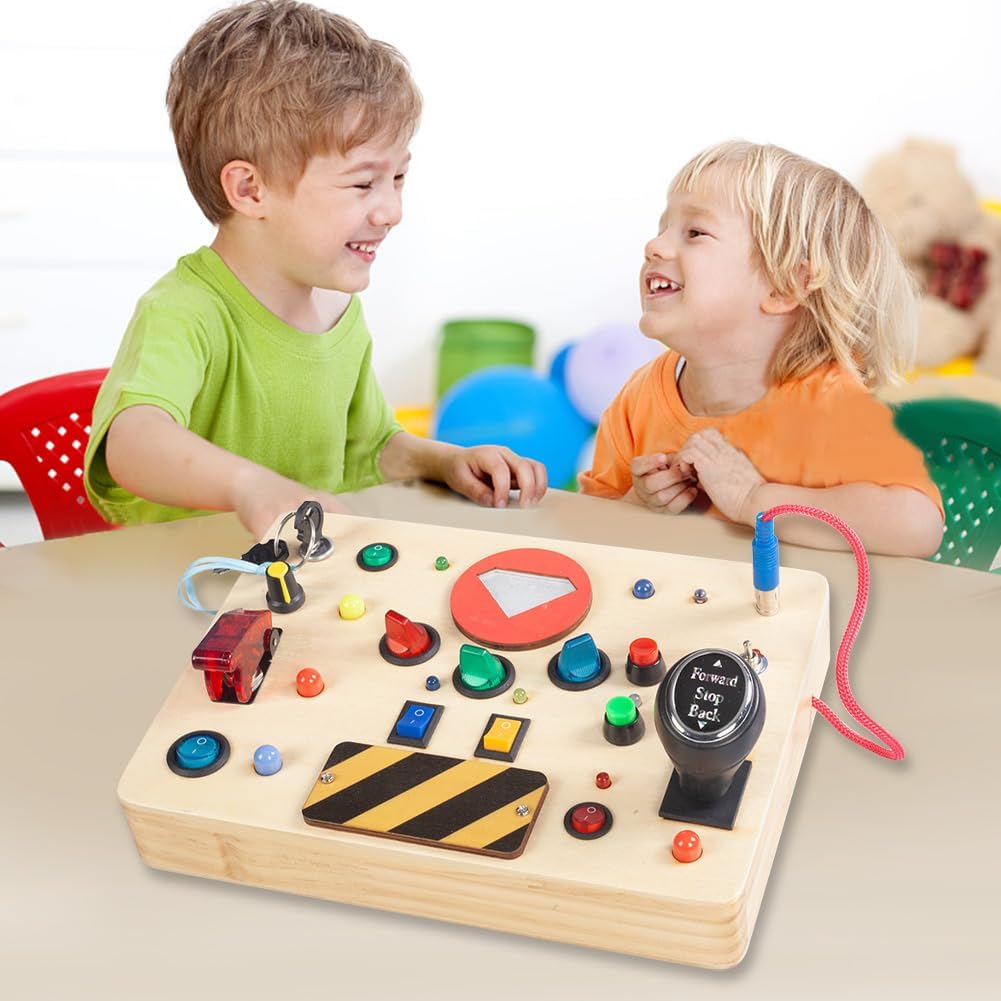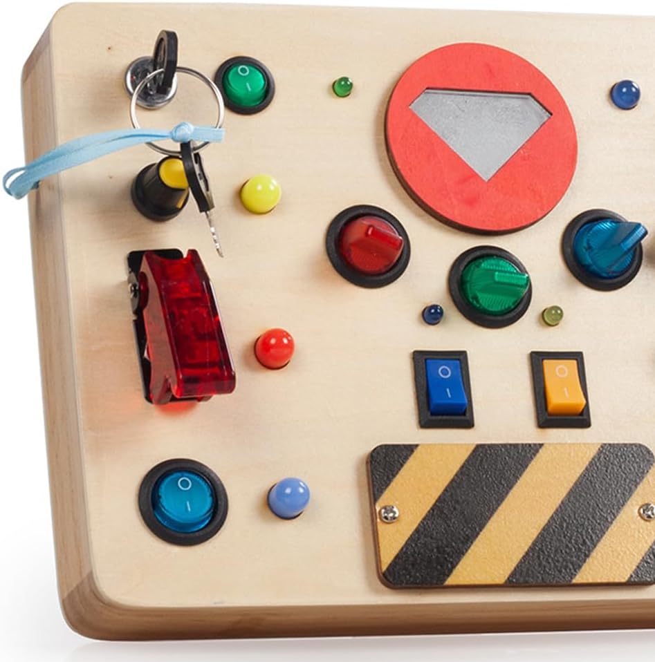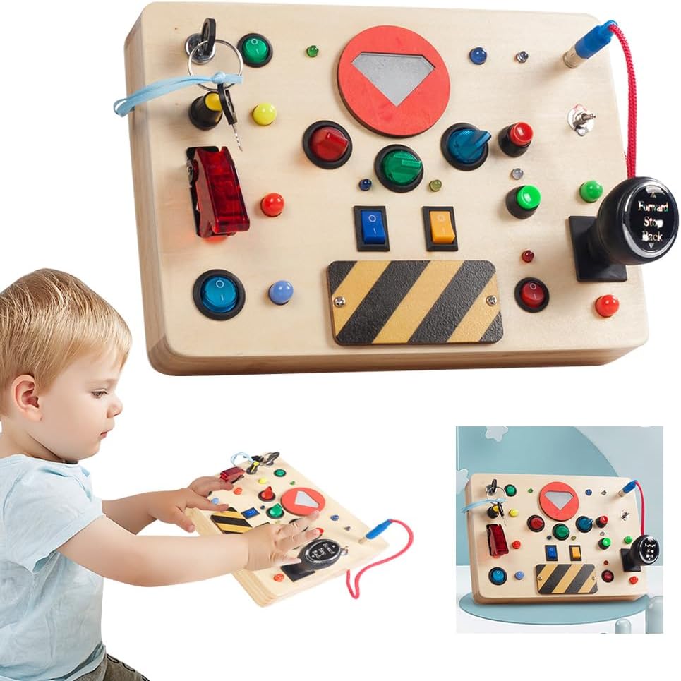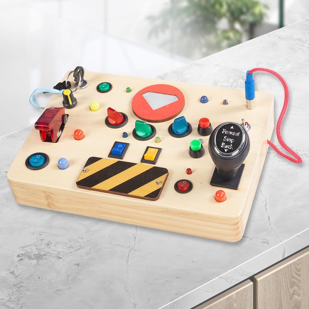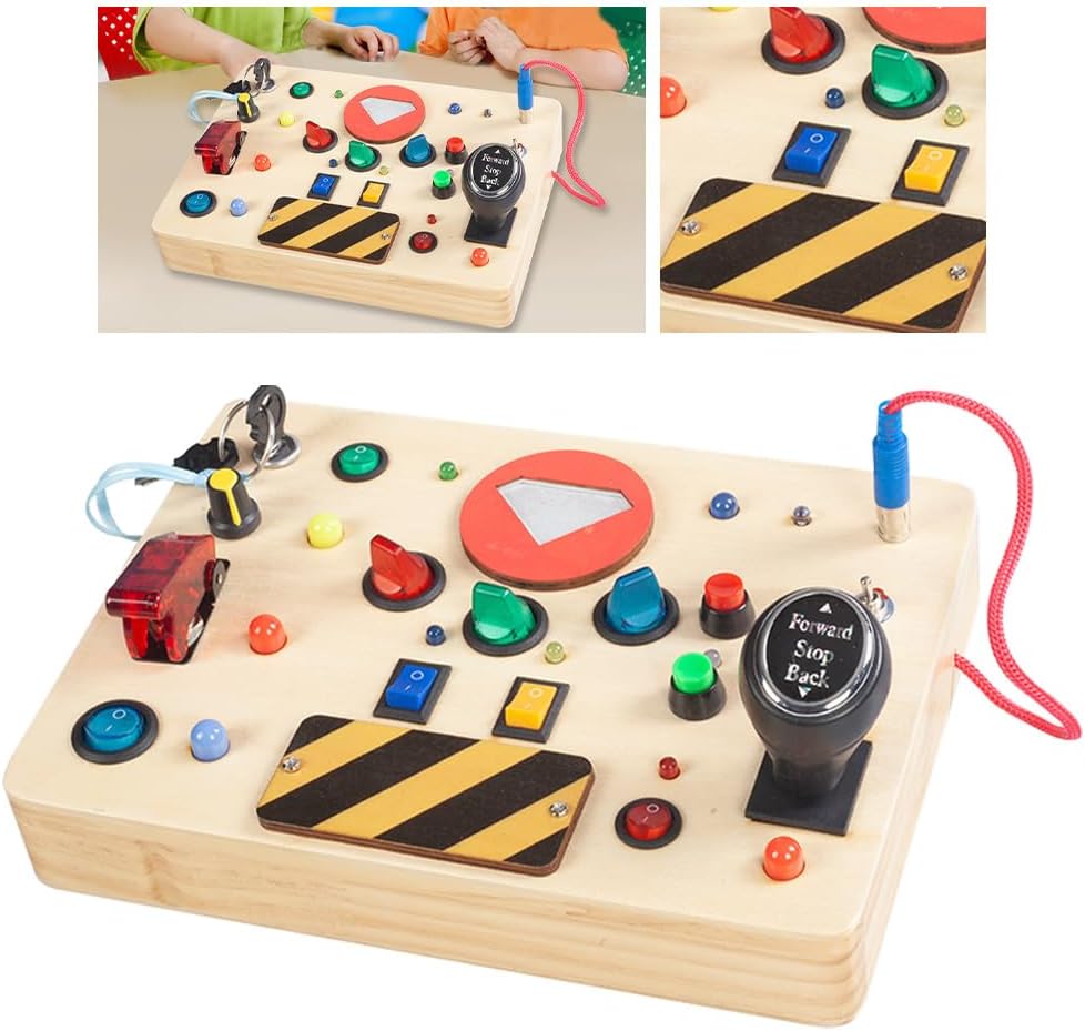 Legno ecologico: realizzata con materiali di legno resistenti e non tossici, la nostra lavagna LED garantisce un'esperienza di gioco sicura e affidabile, priva di sostanze nocive. Il tocco naturale e la sensazione calda del materiale in legno migliorano sia l'estetica che la durata del giocattolo. Design coinvolgente della scheda: la nostra lavagna luminosa a LED con presa interruttore è ingegnosamente progettata per introdurre i bambini alla conoscenza di base dei circuiti e ai principi della fisica. Interagendo con vari interruttori e prese, i bambini sviluppano capacità vitali di osservazione, pensiero logico e risoluzione dei problemi. Stimolare l'apprendimento precoce: la nostra scheda per l'abilità di coordinazione presenta una gamma di interruttori e prese che incoraggiano i bambini a esplorare e comprendere i concetti fondamentali di circuiti e fisica. Questo approccio pratico alimenta le capacità di osservazione, il pensiero logico e le capacità di risoluzione dei problemi. Incantevoli effetti di luce a LED: decorata con accattivanti luci a LED, la nostra tavola in legno fai-da-te offre effetti visivi affascinanti. Le luci LED tremolanti e mutevoli attirano l'attenzione dei bambini, incoraggiando la loro esplorazione e suscitando un profondo interesse per il giocattolo. Giocattolo interattivo in legno: la nostra tavola per la percezione dei colori incoraggia il coinvolgimento attivo e la partecipazione. Smontando, assemblando e manipolando gli interruttori, i bambini migliorano la coordinazione occhio-mano, affinano le loro capacità motorie e liberano la loro immaginazione. Questa esperienza interattiva promuove la creatività e lo sviluppo cognitivo.