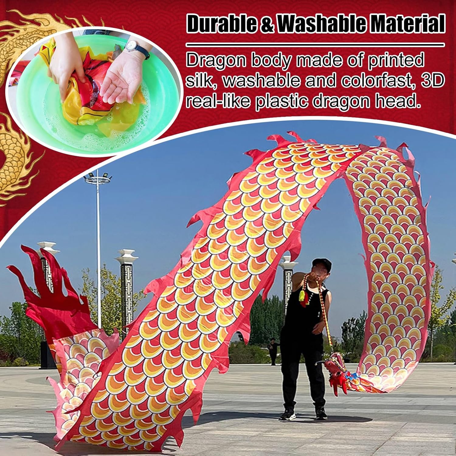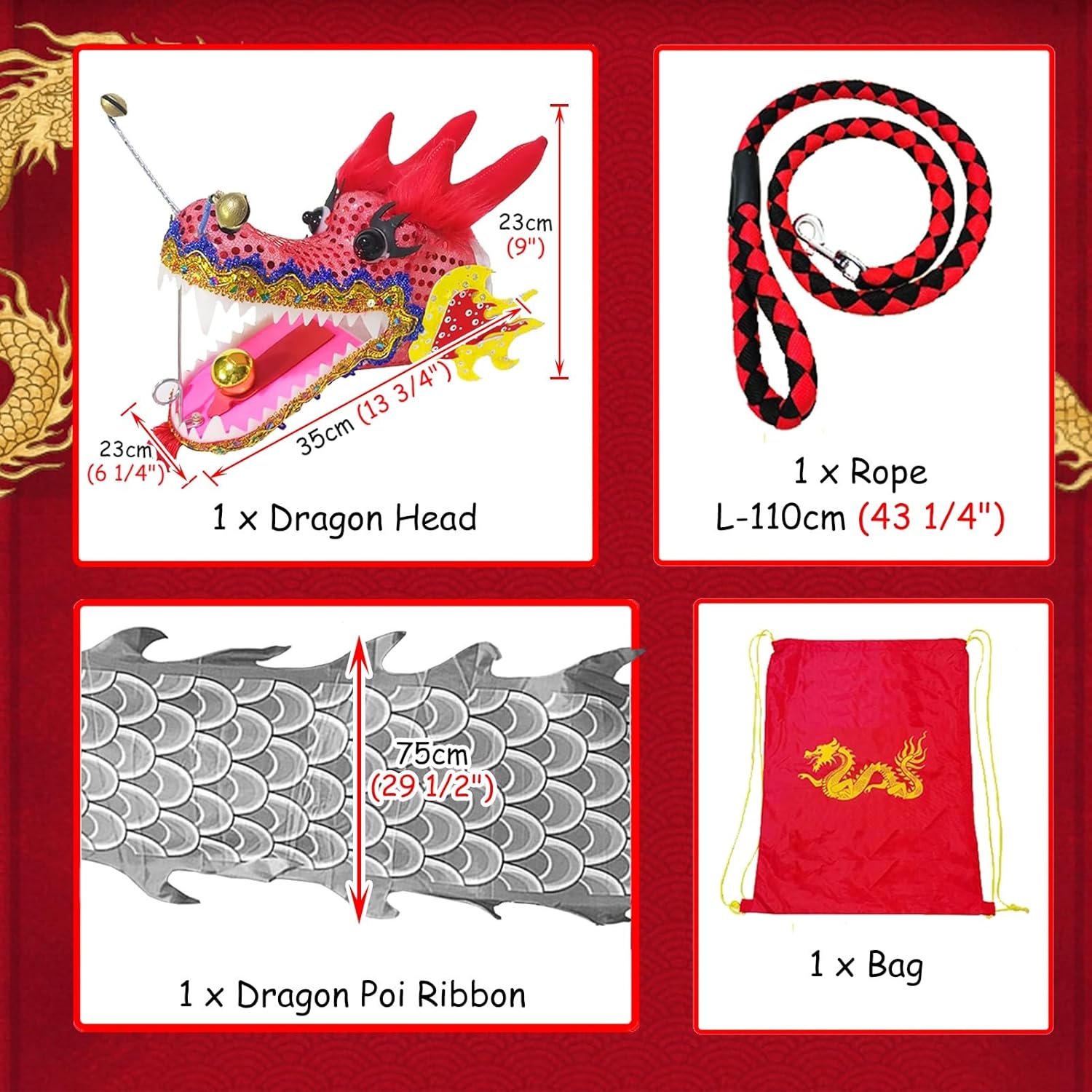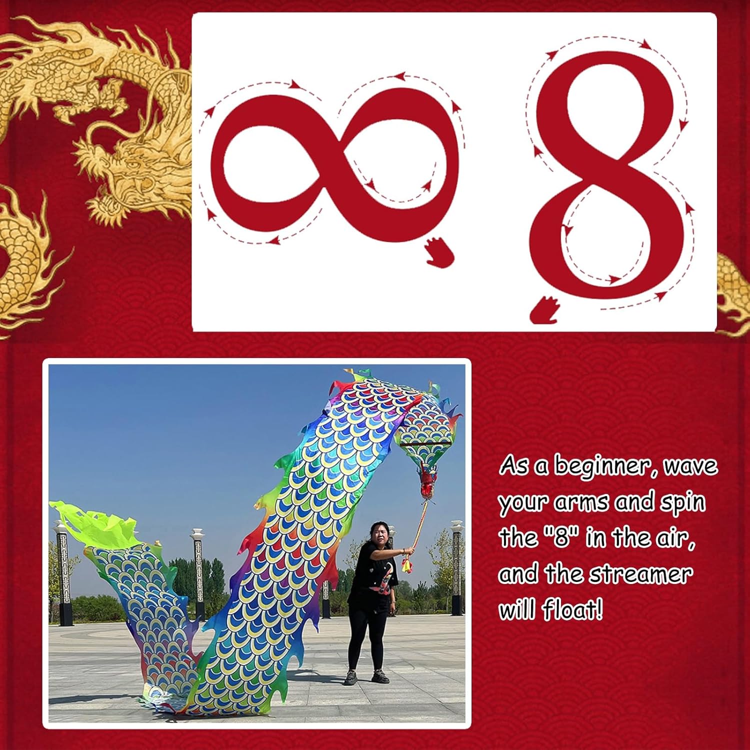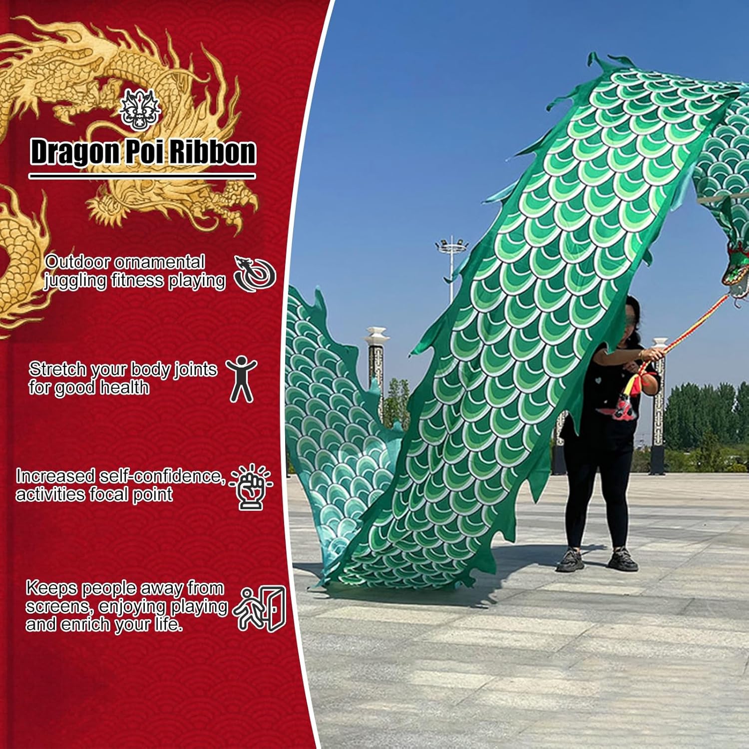 ☑️【Dragon Poi Band Dance】La danza del drago è un intrattenimento tradizionale cinese, le stelle filanti fluenti sono molto decorative. Può portare molto divertimento alla tua famiglia. Tiene le persone lontane dagli schermi, rende il gioco divertente e arricchisce la tua vita. ☑️【Drago Streamer Colorato e Resistente】Corpo del drago realizzato in seta stampata, lavabile e resistente al colore, testa di drago 3D in vera plastica, anticaduta e non facile da rompere, robusta corda lunga e zaino portatile. ☑️【Danzatrice di nastri per fitness all'aperto】Far oscillare i nastri della danza del drago può allungare il tuo corpo. Allena le spalle, il collo e la colonna lombare, migliora la mobilità articolare e allevia lo stress e l'ansia. ☑️ 【Regalo creativo e artistico】 I nastri da danza del drago sono il regalo perfetto per bambini, adolescenti, adulti e anziani che amano i draghi cinesi! Puoi fare esercizi di fitness, ballare, fare giochi di destrezza ed esibirti in spettacoli di talento in cortili, parchi, spiagge e altre vaste aree. ☑️ 【Facile da montare e utilizzare】 Collega la corda alla testa del drago, quindi unisci insieme la testa del drago e la fascia del drago e infine stringi la corda attorno al drago. Come principiante, muovi le braccia e ruota l'"8" in aria e lo streamer galleggerà!