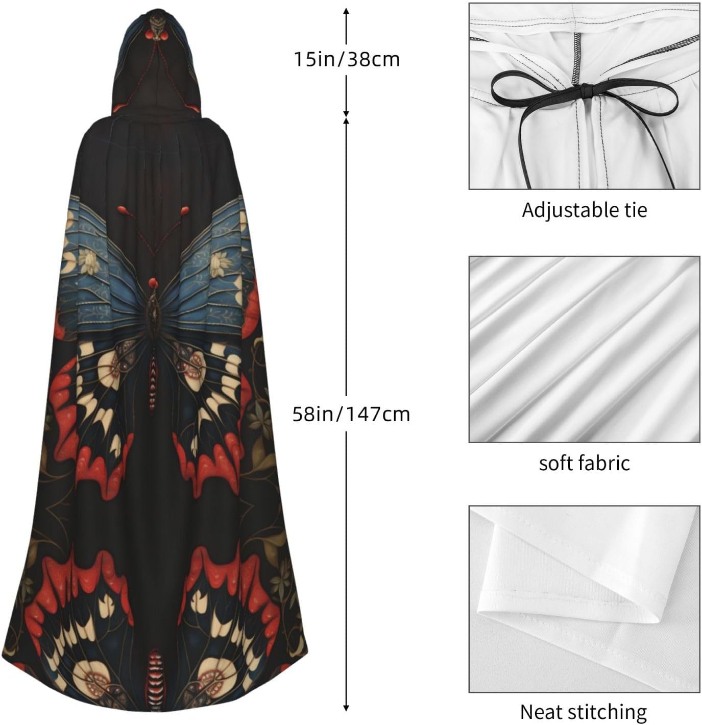 Il mantello con cappuccio è realizzato in fibra di poliestere di alta qualità, caratterizzato da un mantello oversize con papillon, senza cerniera, comodo da indossare e un mantello lungo e resistente. Adatto per Natale, Halloween, giochi di ruolo, costumi da palcoscenico, feste in costume e feste a tema.