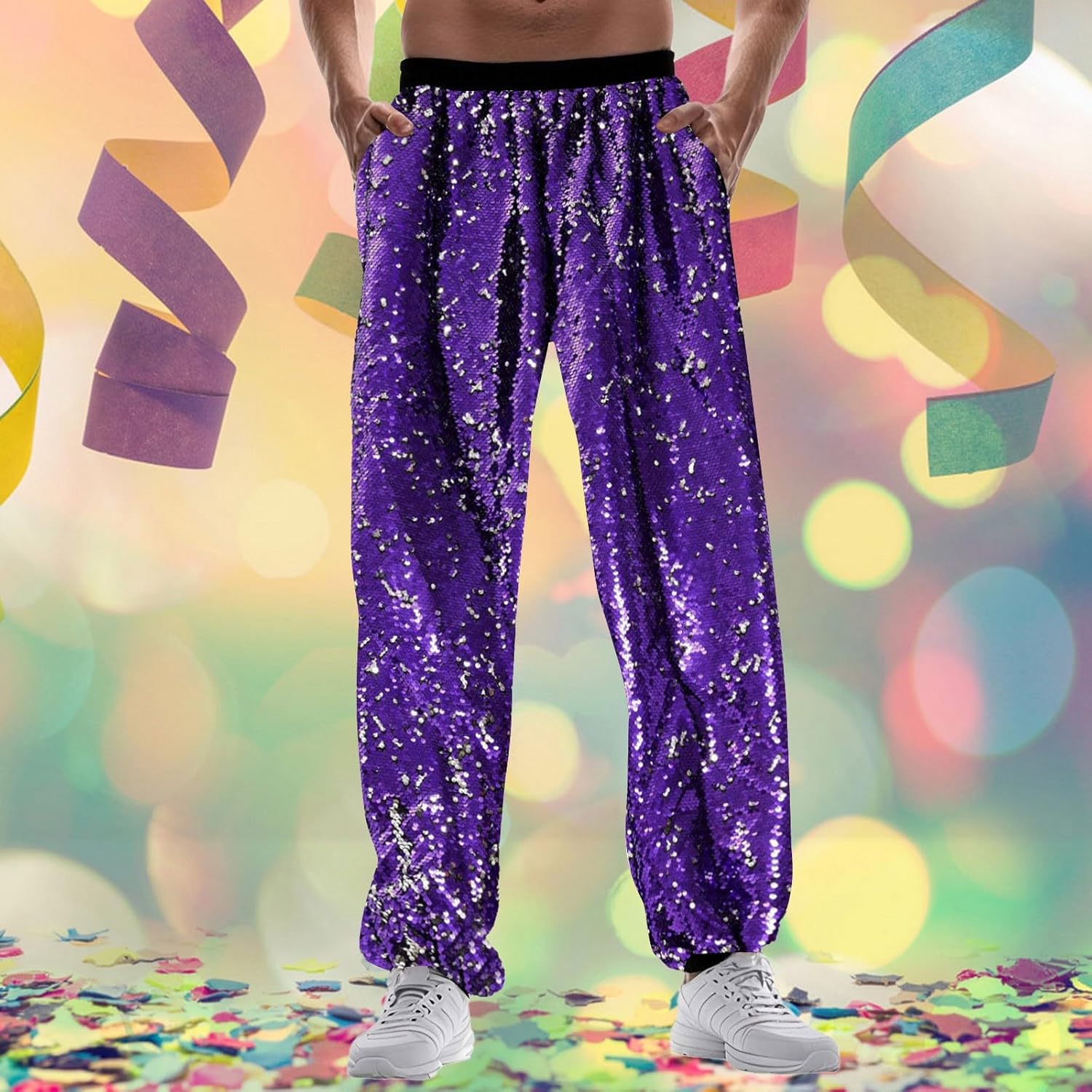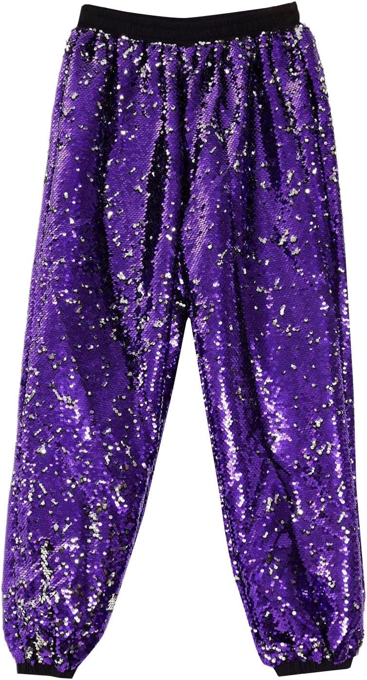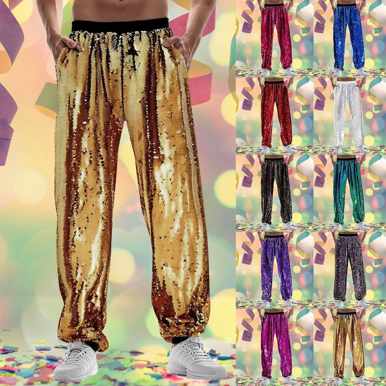 Pantaloni da jogging da uomo, in metallo, lucidi, per feste in discoteca, con paillettes, colore oro argento, anni '70/80, per feste e carnevale, stile hippie con glitter metallizzati