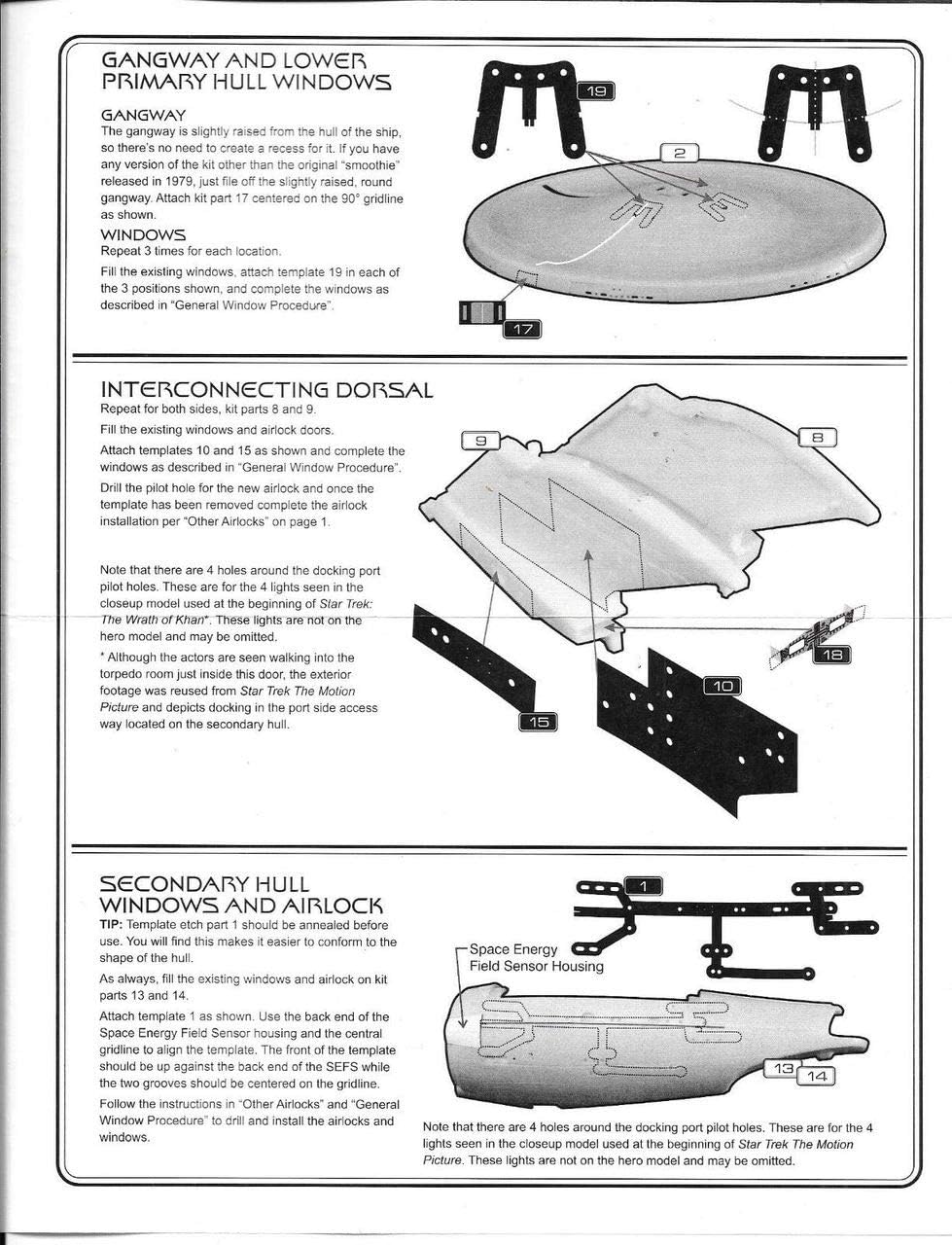 Trapano finestre posizionate con precisione e dimensioni uniformi per la scala 1/537 Refit U.S.S. Kit Enterprise di AMT. Include anche dettagli lanciasiluri, arboreto e finestre lounge ufficiali, nuova paratia posteriore del ponte e dettagli di sfiato dorsale. PER KIT: AMT1080, AMT S970 & Classic