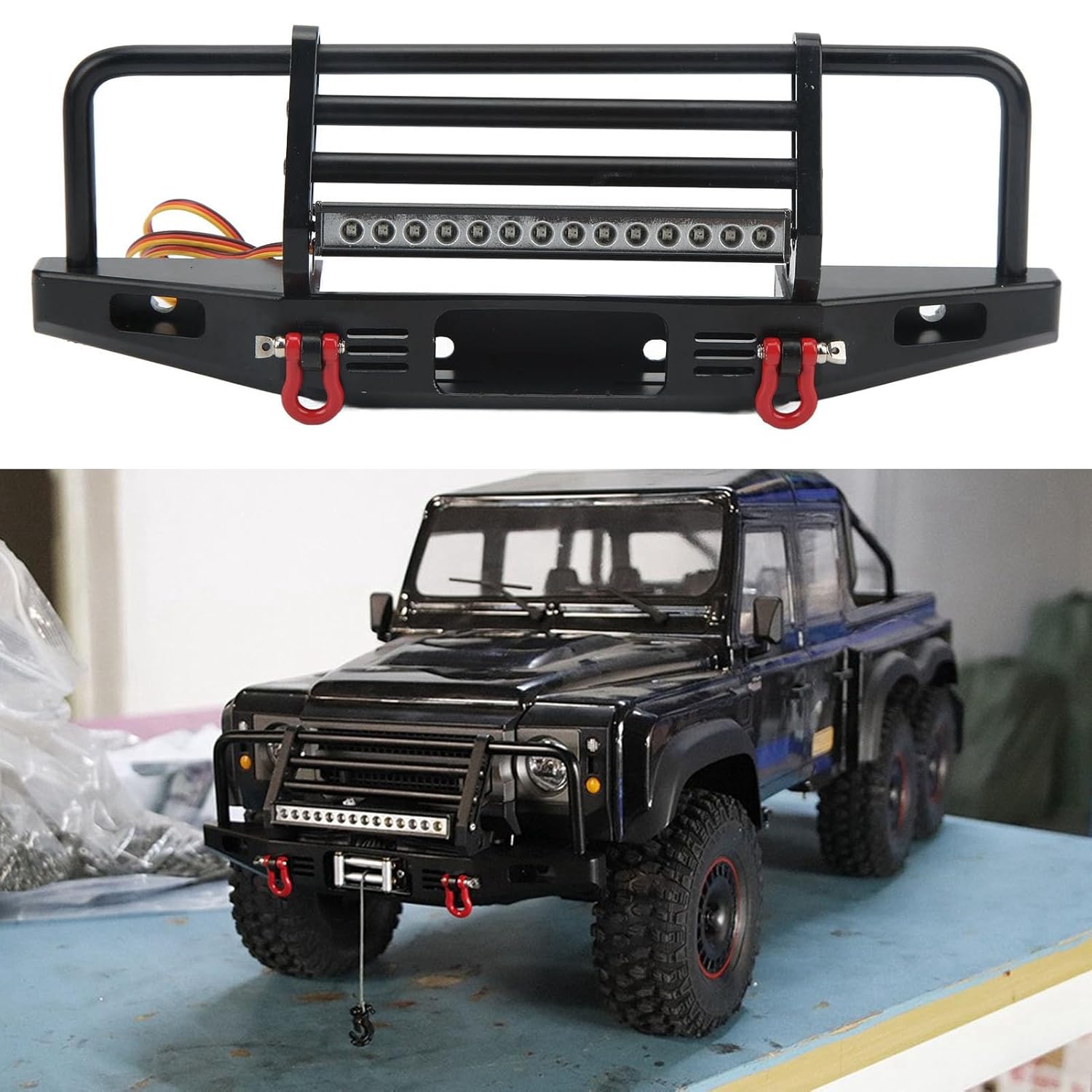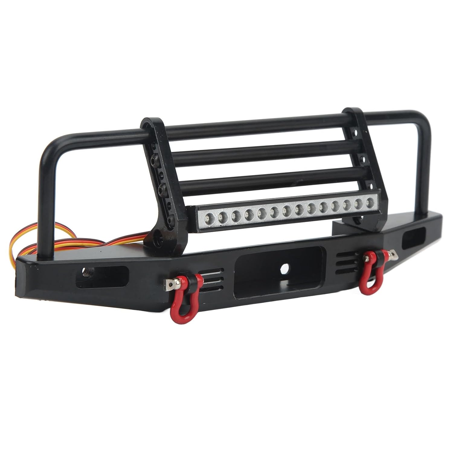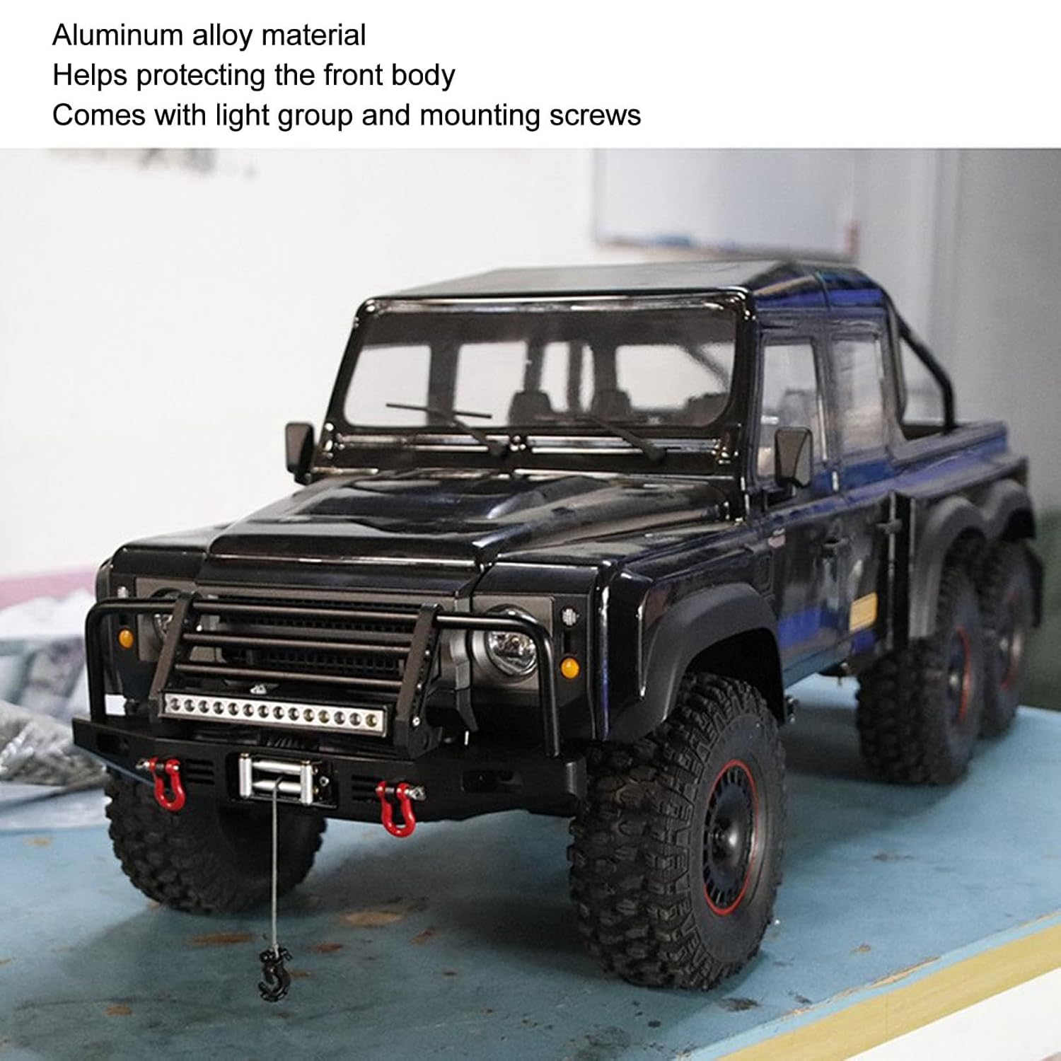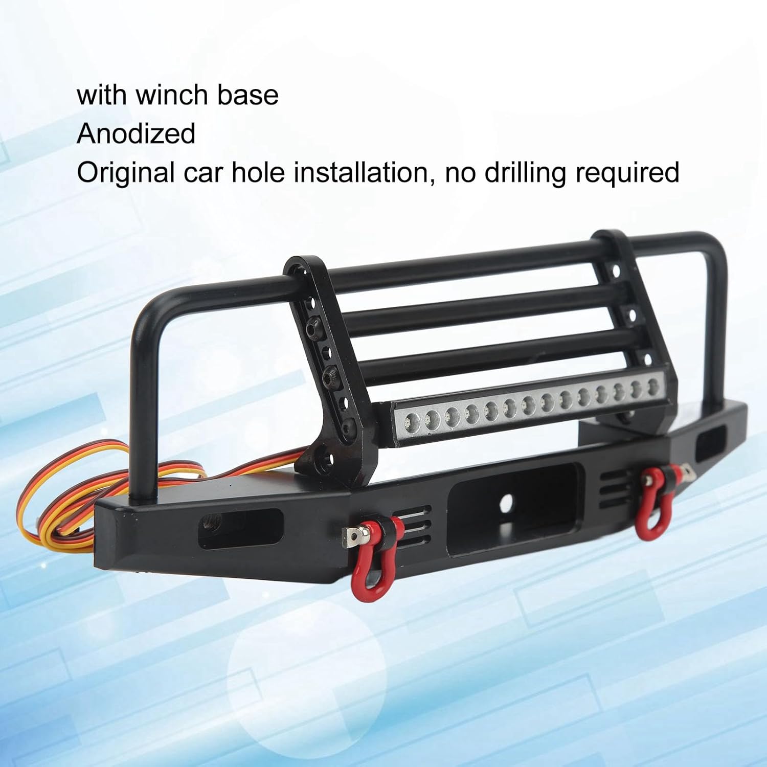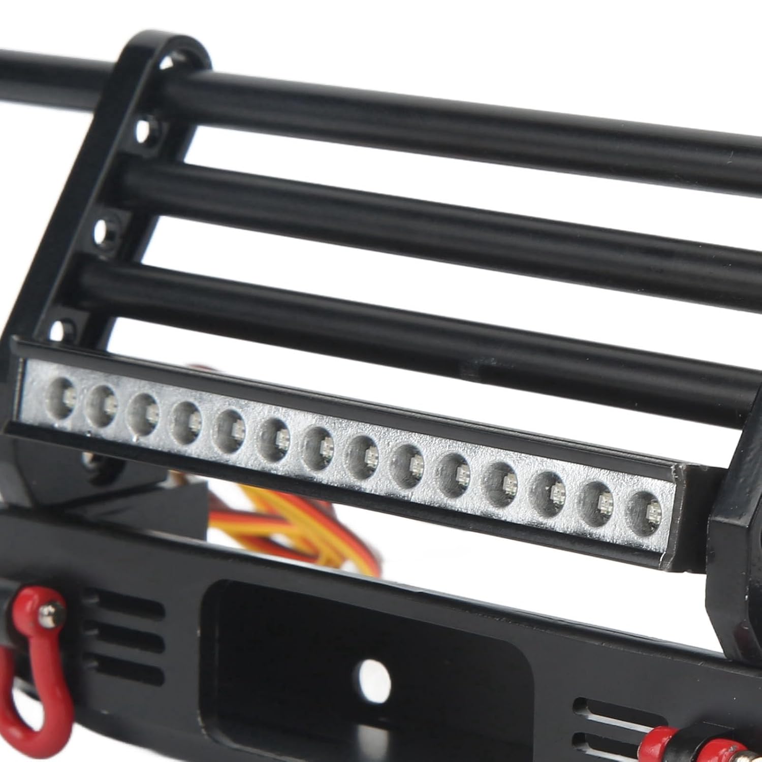 [Lega di alluminio]: il paraurti anteriore RC è realizzato in lega di alluminio di alta qualità, migliorando l'aspetto con resistenza alla corrosione ed estetica elegante. [Effetto protettivo]: questo paraurti anteriore in metallo RC offre prestazioni stabili e protegge il corpo anteriore da urti, graffi e altri danni. [Illuminazione affidabile]: dotato di un set leggero e viti di montaggio, il paraurti anteriore RC garantisce una migliore visibilità per la tua auto RC in condizioni di oscurità. [Base del verricello]: con una base del verricello, questo paraurti per auto RC migliora l'aspetto visivo del tuo veicolo RC e lo rende più vivido e attraente. [Trattamento anodizzato]: il paraurti in metallo per auto RC con LED viene utilizzato per una facile installazione e smontaggio, utilizzando il foro originale dell'auto per il montaggio senza trapani.