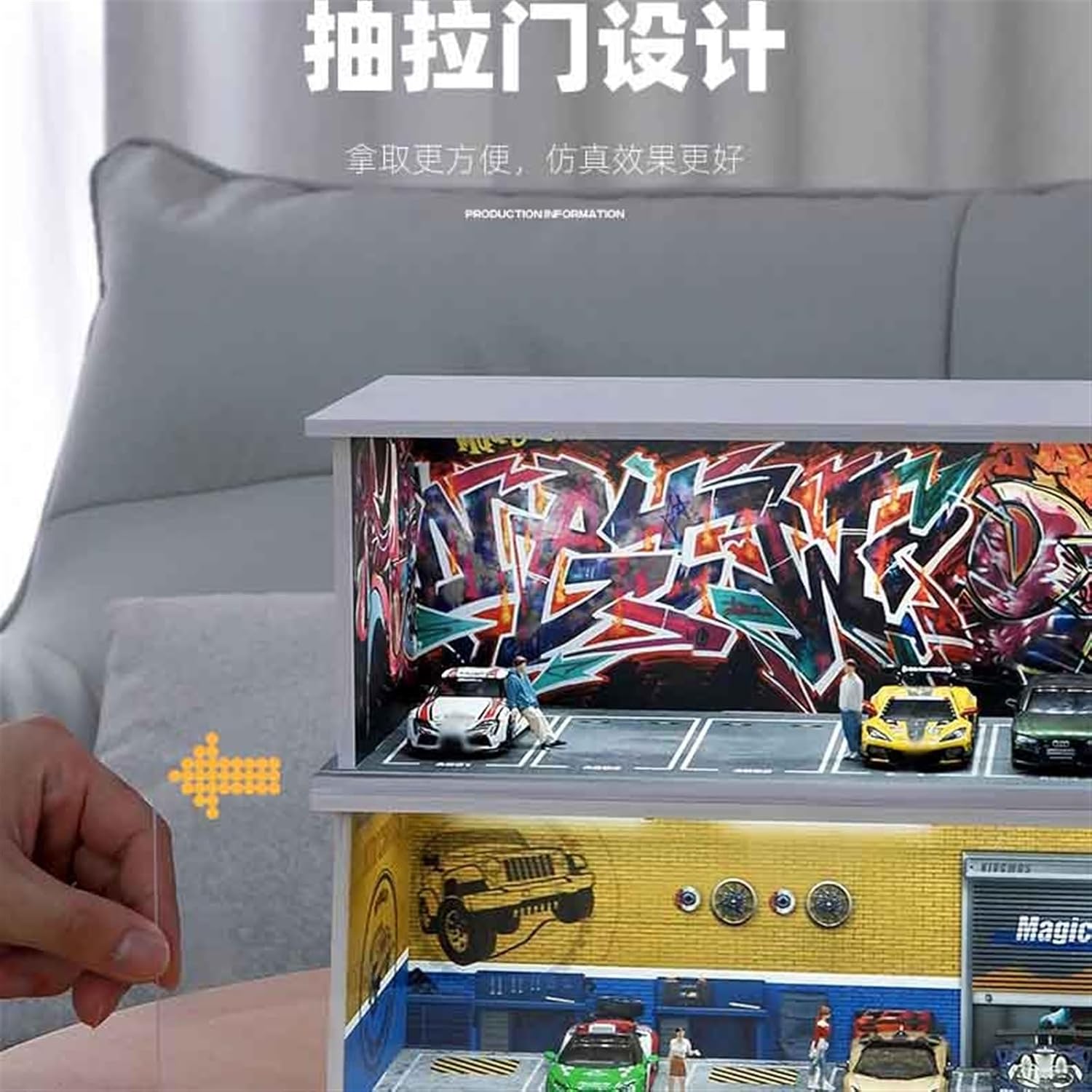 1:64 modello di parcheggio simulato garage con scena in miniatura Display per modello di auto assemblato in PVC con parcheggio illuminato Materiale: realizzato in PVC e materiale acrilico, resistente alla polvere, ad alta resistenza e durevole. Deflettore acrilico altamente trasparente estraibile in acrilico altamente trasparente per una migliore visualizzazione a prova di polvere Parcheggio Modellino Auto Con scene dall'atmosfera speciale, puoi divertirti a mostrare preziose collezioni nel tuo ufficio o a casa. Questo è un ottimo regalo per gli appassionati di auto che hanno appena iniziato le loro collezioni e un'ottima idea per coloro che apprezzano i display superbi.