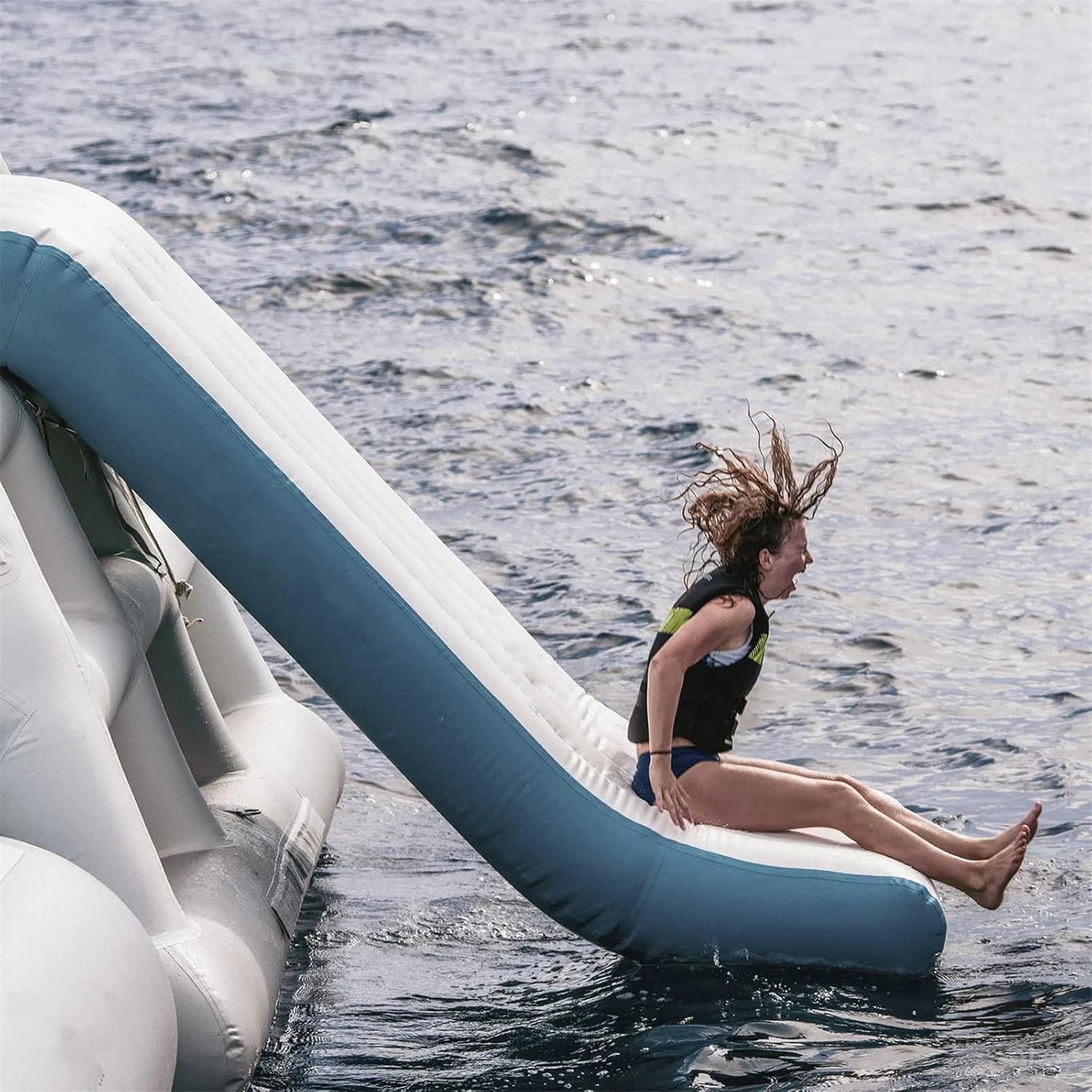 [Materiale] Questo scivolo gonfiabile è realizzato con un telone in PVC ecologico da 0,9 mm con una superficie liscia e impermeabile e buone proprietà ignifughe, resistenti al freddo, al calore e anti-invecchiamento. Il telo da salto nero sulla parte superiore è realizzato in materiale PP, che ha un'eccellente capacità di rimbalzo. [Gonfiaggio rapido] Con la nostra pompa ad aria elettrica inclusa, ci vogliono meno di 10 minuti per far esplodere il trampolino. È un sistema molto facile da installare e smontare, non è richiesto alcun assemblaggio aggiuntivo. [Maniglie multiple integrate] Questo scivolo gonfiabile ha diverse maniglie integrate per un facile spostamento e per aiutarti a mantenere un migliore equilibrio sull'acqua. Può essere posizionato su stagni, laghi, fiumi, piscine, pavimenti e palloni marini per giocare ed è adatto sia ai bambini che agli adulti. [Risparmio di spazio] Quando non lo usi, rimuovi semplicemente il gas dal corpo e piegalo in modo che non occupi molto spazio e sia comodo da riporre. Basta pulirlo con un panno e brillerà come nuovo. [Ampiamente usato] Buona compatibilità con le piscine. All'aperto, al coperto, in giardino, in spiaggia, purché gonfiato, può essere giocato sempre e ovunque, divertirsi, lasciare che i bambini si esercitino di più e si rinfreschino d'estate.