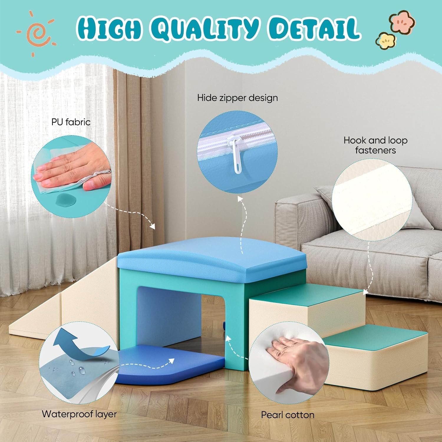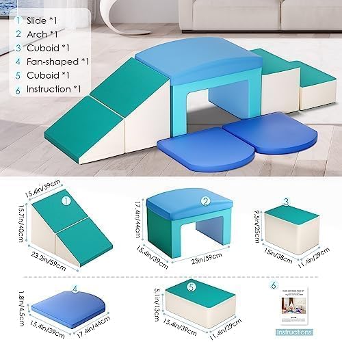Esplorazione e creatività: questo set include 6 blocchi di arrampicata in schiuma, perfetti per varie attività di gioco come arrampicare, strisciare, scivolare e costruire. Promuovono la coordinazione fisica, le capacità motorie e l'immaginazione dei bambini. Materiali morbidi e sicuri: l'imbottitura in schiuma ad alta densità offre un supporto eccellente. La morbida schiuma, il tessuto ipoallergenico e i colori rilassanti garantiscono il comfort sensoriale e la sicurezza dei bambini. Certificazione: i nostri prodotti sono certificati secondo gli standard di sicurezza statunitensi ed europei, garantendo l'assenza di sostanze nocive e la loro sicurezza per i bambini. Qualità: i nostri prodotti soddisfano i più elevati standard di qualità. Dalla produzione di schiuma alla lavorazione, ogni passo è rigorosamente controllato per una finitura impeccabile. Utilizziamo materiali di alta qualità per garantire la durata e la longevità dei nostri prodotti. Facile da pulire e resistente: realizzato in tessuto morbido, resistente e facile da pulire. Dotato di cerniera per un facile smontaggio e lavaggio.