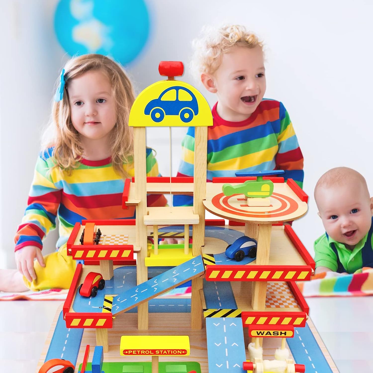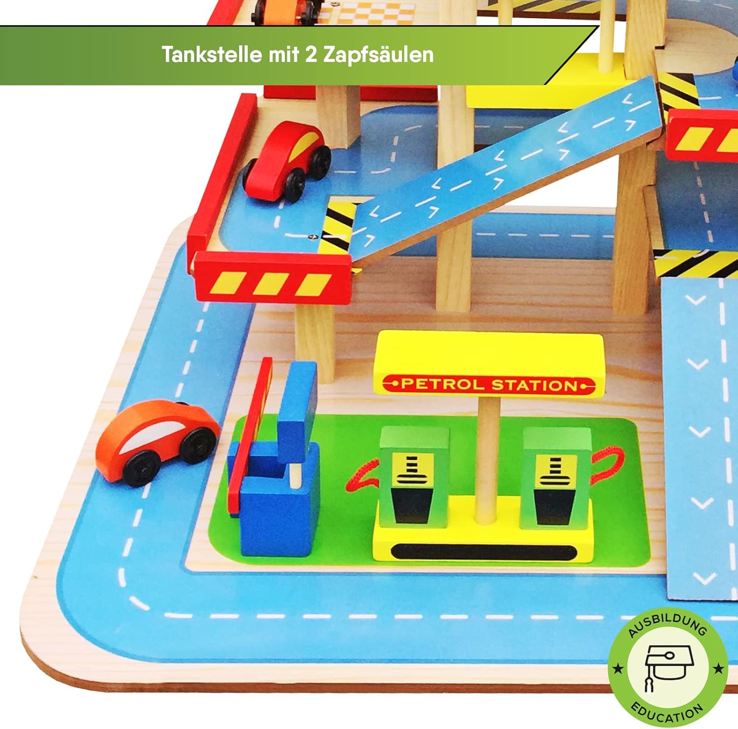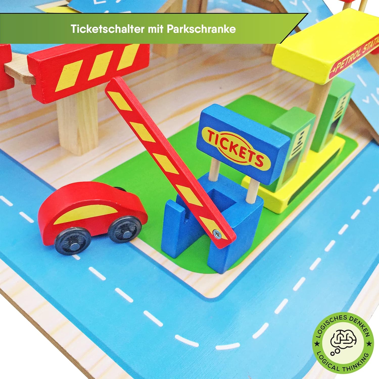 Divertimento puro: il parcheggio multipiano BALINCO offre un gioco versatile su 3 piani. Dalla biglietteria con barriera di parcheggio regolabile alla piattaforma di atterraggio per elicotteri sul ponte di parcheggio. Attiva i sensi e stimola la curiosità: I piani del parcheggio sono collegati da rampe, ma se le cose devono essere più veloci, le auto possono anche essere trasportate rapidamente a ogni piano grazie all'ascensore regolabile manualmente. Promuove creatività e responsabilità: le auto devono essere rifornite di carburante prima o poi e hanno bisogno di un autolavaggio ogni tanto. Non può quindi mancare una stazione di servizio e un autolavaggio integrato con spazzole orizzontali e verticali. Tutto incluso nel set: Sono incluse 4 macchinine di colori diversi e un coloratissimo elicottero con rotore mobile. Un'ottima idea regalo: regalate al vostro bambino un gioco educativo in legno di BALINCO.