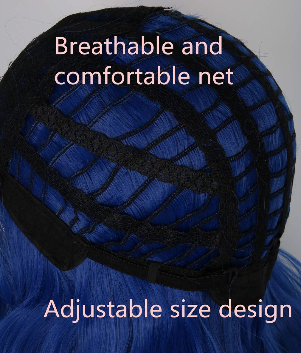 PARRUCCA DI ALTA QUALITÀ: Parrucca lunga blu realizzata in materiale sintetico resistente al calore con riccioli dall'aspetto naturale VESTIBILITÀ REGOLABILE: Dotata di cuffia regolabile e traspirante per un comfort ottimale e una tenuta sicura USO VERSATILE: Ideale per carnevale, costumi in maschera, Halloween, feste in costume e altre occasioni festive FACILE CURA: Facile da pulire e modellare, resistente al calore fino a 150°C, Peso solo 250 grammi SUGGERIMENTI: Il colore può variare a causa dei diversi monitor o luci. Facciamo ogni sforzo per visualizzare accuratamente il colore corretto di tutti i prodotti. Può essere tagliato o rifilato secondo necessità