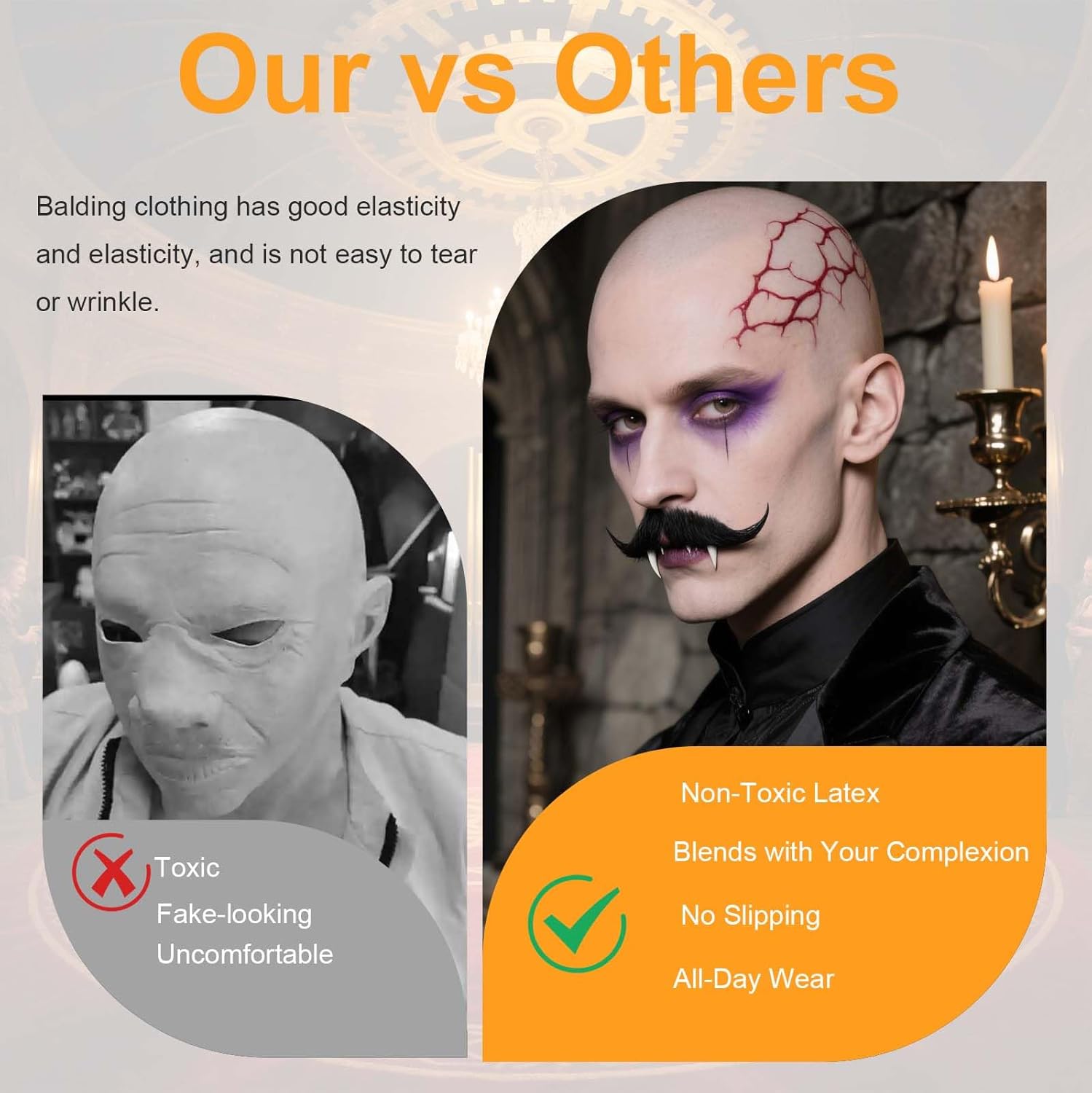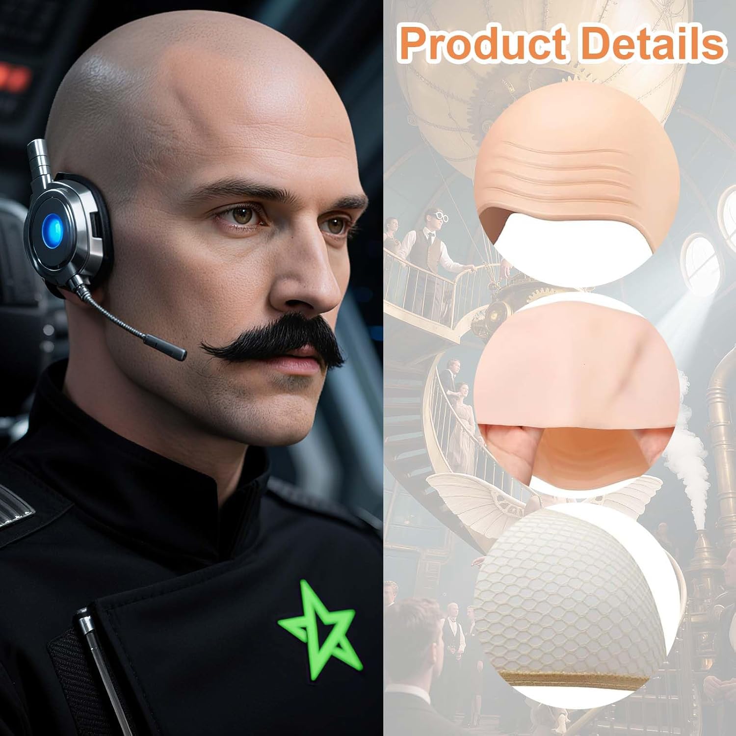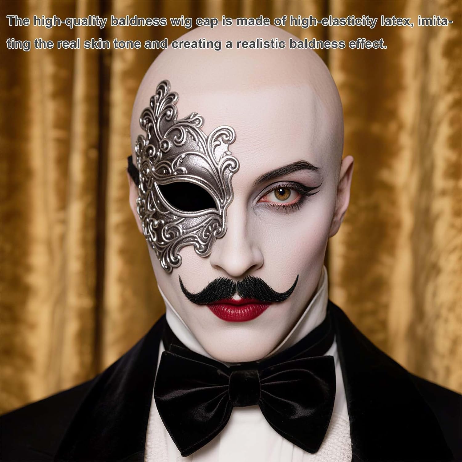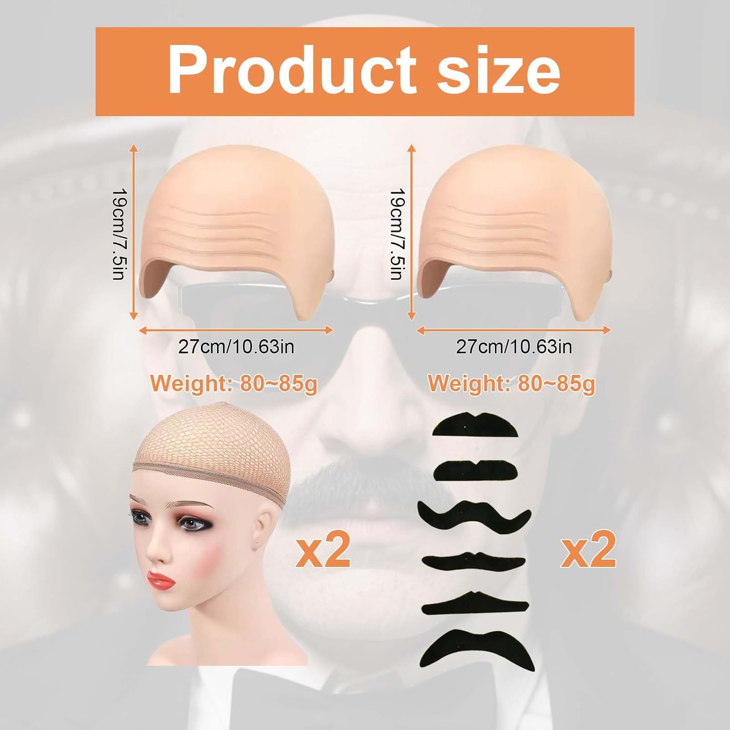 Punto di vendita 1: Il set parrucca calva comprende 2 pezzi di cuffie realistiche che imitano alla perfezione l’effetto calvo, 12 baffi finti assortiti e 2 retine color carne: una combinazione completa ideale per travestimenti originali, spettacoli teatrali, feste in maschera, eventi cosplay, film e celebrazioni di Halloween. Questo kit permette di creare look realistici e divertenti, trasformando l’aspetto in pochi minuti e garantendo un risultato sorprendente per ogni occasione speciale. Punto di vendita 2: La parrucca calva è realizzata in lattice di alta qualità con una straordinaria elasticità e resistenza: il materiale morbido si adatta perfettamente alla forma della testa senza creare fastidi o irritazioni, mantenendo un aspetto naturale che riproduce la tonalità della pelle. La robustezza della cuffia impedisce strappi e pieghe, consentendo di riutilizzarla a lungo per molteplici eventi e travestimenti creativi. Punto di vendita 3: La struttura elastica della cuffia consente di indossarla su diverse misure di testa: per un effetto ancora più aderente e naturale, è possibile personalizzare i bordi con un semplice taglio, così da adattarla con precisione al profilo del viso. La parrucca calva risulta confortevole anche per utilizzi prolungati, mantenendo un’aderenza stabile senza comprimere eccessivamente la cute. Punto di vendita 4: L’uso della parrucca calva è estremamente pratico grazie al suo design compatto e leggero: può essere piegata facilmente e riposta in borsa o in uno zaino, risultando comoda da portare con sé durante eventi, feste o spettacoli. La superficie liscia permette una pulizia veloce con un panno umido, garantendo igiene e praticità dopo ogni utilizzo. Punto di vendita 5: Per un effetto ancora più realistico, si consiglia di applicare un velo di lattice sul bordo della cuffia prima di indossarla e completare con prodotti cosmetici per uniformare il colore alla pelle. Grazie ai baffi inclusi, si possono creare travestimenti unici che trasformano l’aspetto in pochi istanti, dando vita a personaggi divertenti o spaventosi perfetti per qualsiasi occasione a tema.