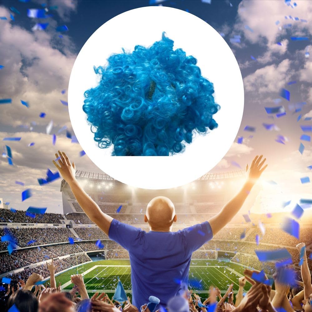 DESIGN BICOLORE: Parrucca riccia in due tonalità distintive - azzurro brillante e bianco, perfetta per i tifosi del Napoli e le celebrazioni MATERIALE PREMIUM: Realizzata in fibra sintetica di alta qualità che garantisce un aspetto realistico e ricci ben definiti VESTIBILITÀ UNIVERSALE: Struttura interna elasticizzata che si adatta comodamente a diverse misure di testa per un comfort ottimale STILE FESTIVO: Ricci voluminosi e vivaci che creano un look appariscente ideale per eventi sportivi e feste a tema FACILE MANUTENZIONE: Parrucca leggera e resistente, semplice da indossare e conservare per utilizzi multipli