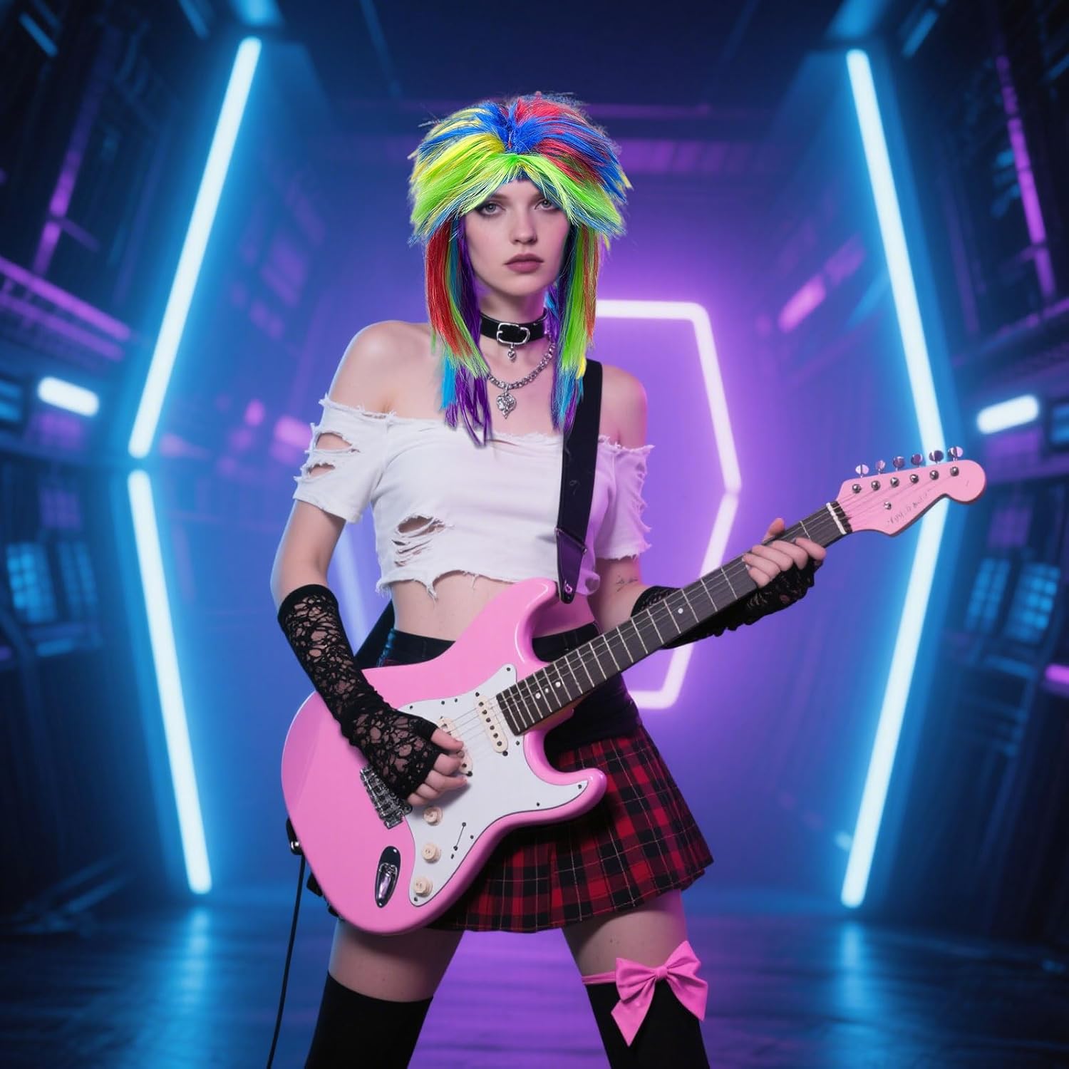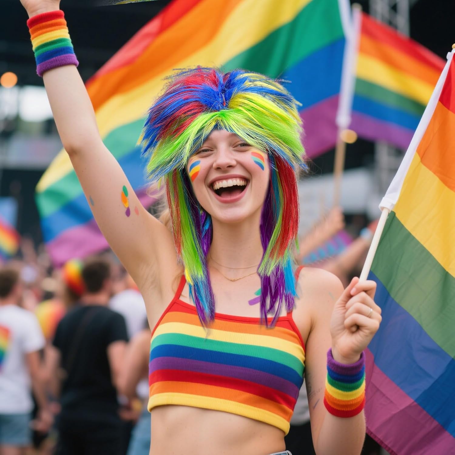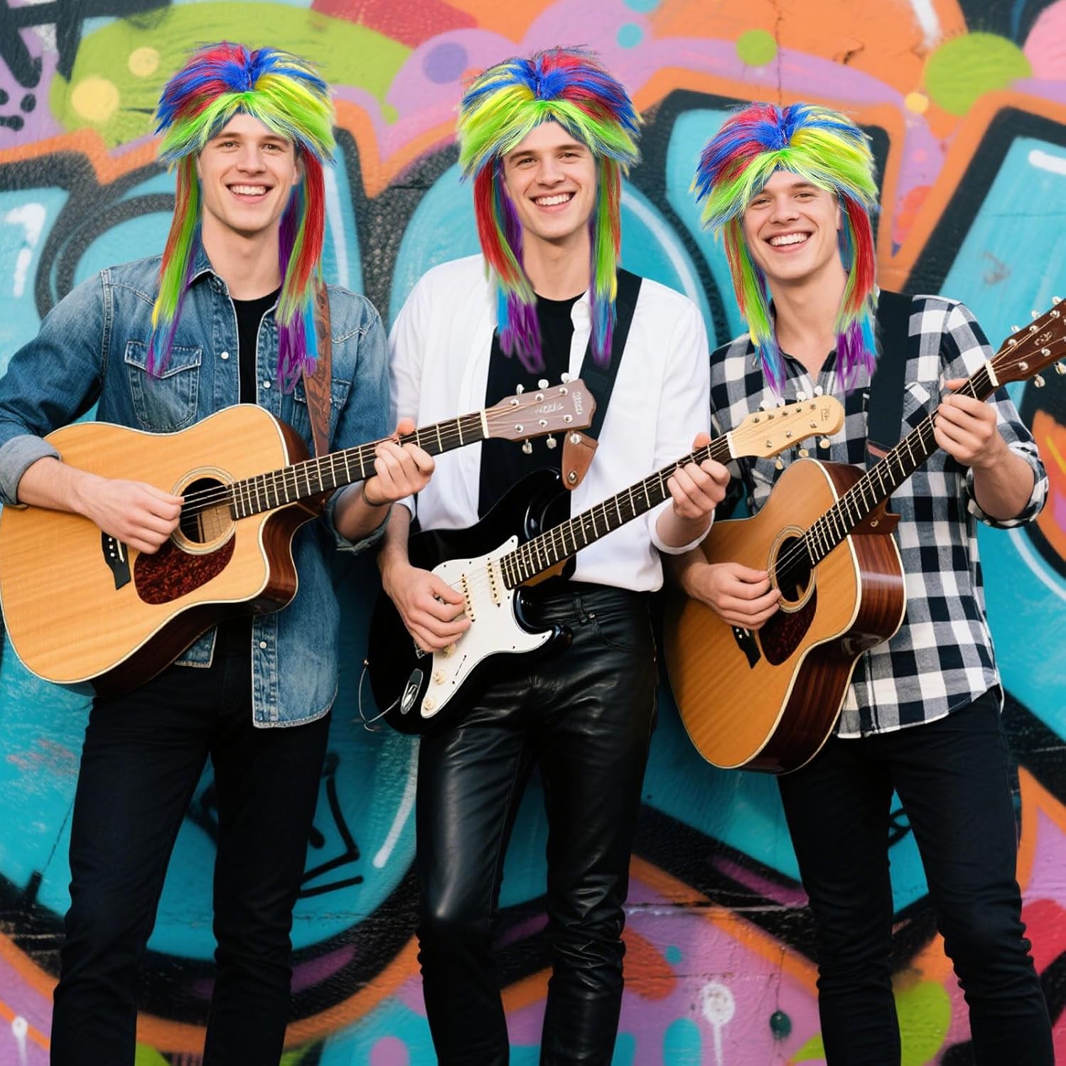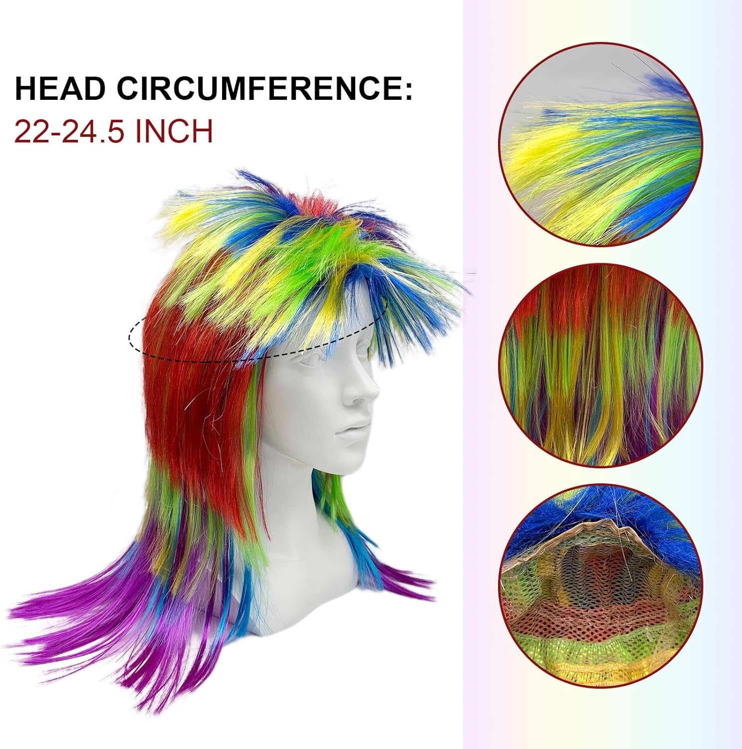MATERIALE: La parrucca Rainbow Pop è realizzata in fibra sintetica di alta qualità resistente al calore, che è fine lustro, tocco morbido e setoso, Questa parrucca è molto adatto per l'uso a lungo termine QUANTITÀ DEL PACCHETTO: 1 parrucca Rocker, dimensione adatta per la maggior parte degli adulti e adolescenti.A causa di estrusione durante l'imballaggio o durante il trasporto, è necessario scuotere o spazzolare delicatamente la parrucca dopo aver ricevuto, sarà soffice. FACILE DA INDOSSARE: La nostra parrucca è facile da indossare, pulita, maneggevole e facile da togliere. utilizzare uno shampoo delicato per lavare la parrucca in acqua calda e asciugarla naturalmente al vento per prolungare la vita della parrucca. NOTA BENE: Poiché la forma del viso e della testa di ogni persona è diversa, l'effetto di indossare potrebbe non essere esattamente lo stesso come mostrato nelle foto.La visualizzazione dell'immagine è solo per riferimento AMPIA APPLICAZIONE: Perfetto per Halloween vestire feste, carnevale, gay pride.daily wear, feste a tema Rocking, fancy dress 70s, 80s theme style, disco dance, feste in costume role-playing