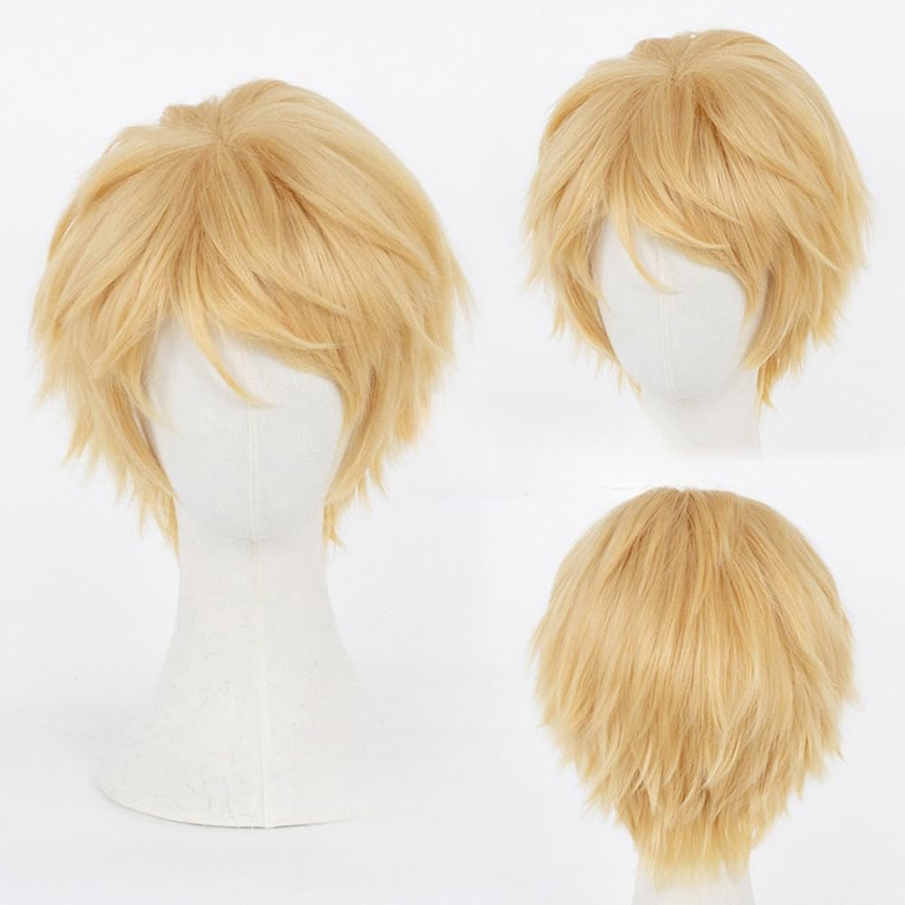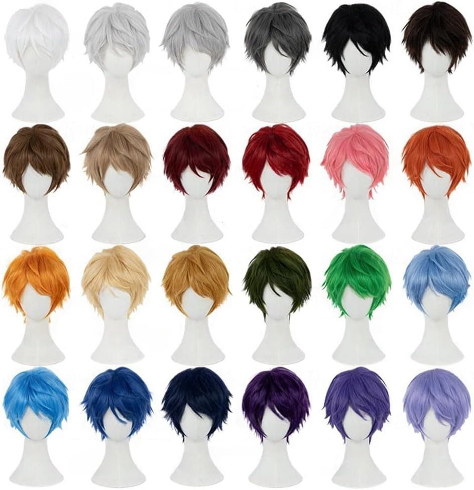 Parrucca Corta da Uomo per Cosplay, con Capelli Lisci e a Strati, con Frangia, in Capelli Sintetici Resistenti al Calore