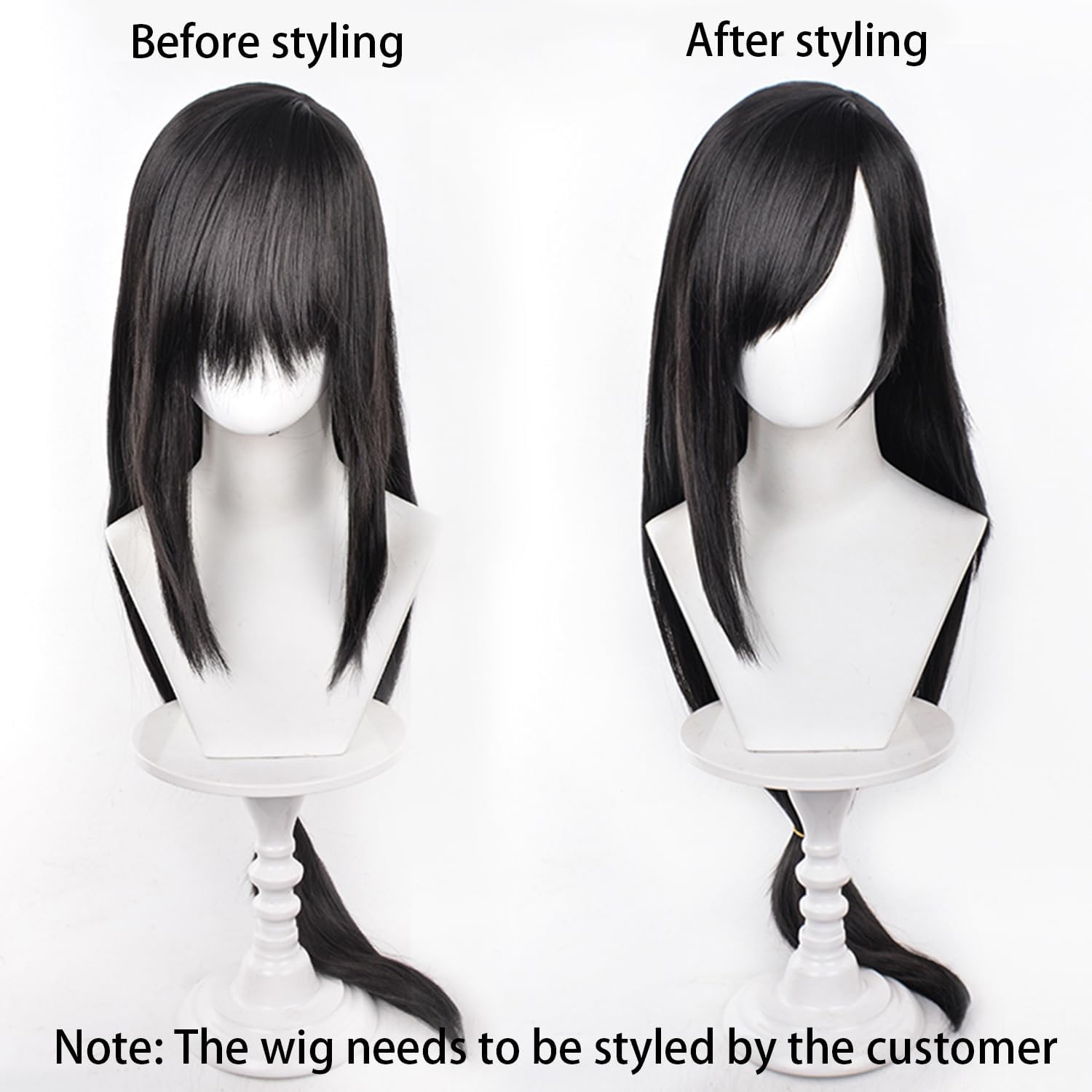 Parrucca nera - Fibra sintetica resistente al calore, che può essere permanente a meno di 200 gradi centigradi, tinta, tagliata o personalizzata con il proprio stile. Materiale - le parrucche per cosplay sono realizzate al 100% in fibra sintetica ad alta temperatura, che è setosa e affascinante come i capelli umani, molto adatta anche per un uso prolungato della parrucca. Facile da indossare - con cinghie regolabili, puoi indossare la tua parrucca e regolare facilmente i ganci all'interno del cappuccio con la dimensione adatta alla tua testa. La circonferenza della parrucca può essere regolata da 54 a 60 cm (21-27 pollici). Multi-Occasione: La parrucca lunga per donne per Halloween, Natale, Pasqua, Carnevale, feste in costume, feste a tema o semplicemente per andare in discoteca. Indossare le nostre parrucche o costumi da cosplay ti porterà molto divertimento. Si prega di notare: facile da lavare e curare utilizzando solo un po' di shampoo delicato in acqua fredda. Lavare dopo averlo ricevuto, ma evitare acqua calda e fuoco. Il colore prende l'oggetto materiale, l'immagine fornisce solo un riferimento.