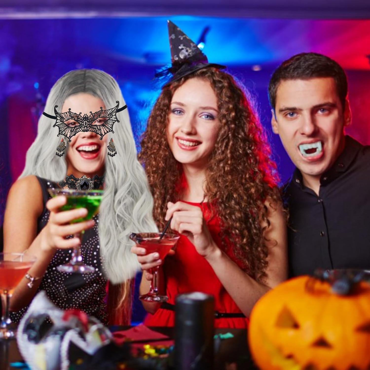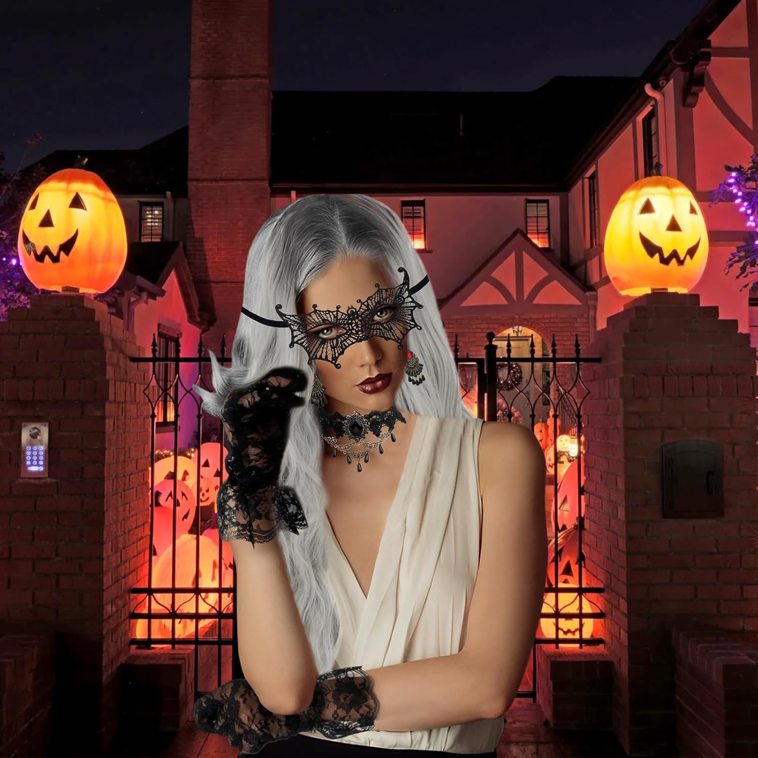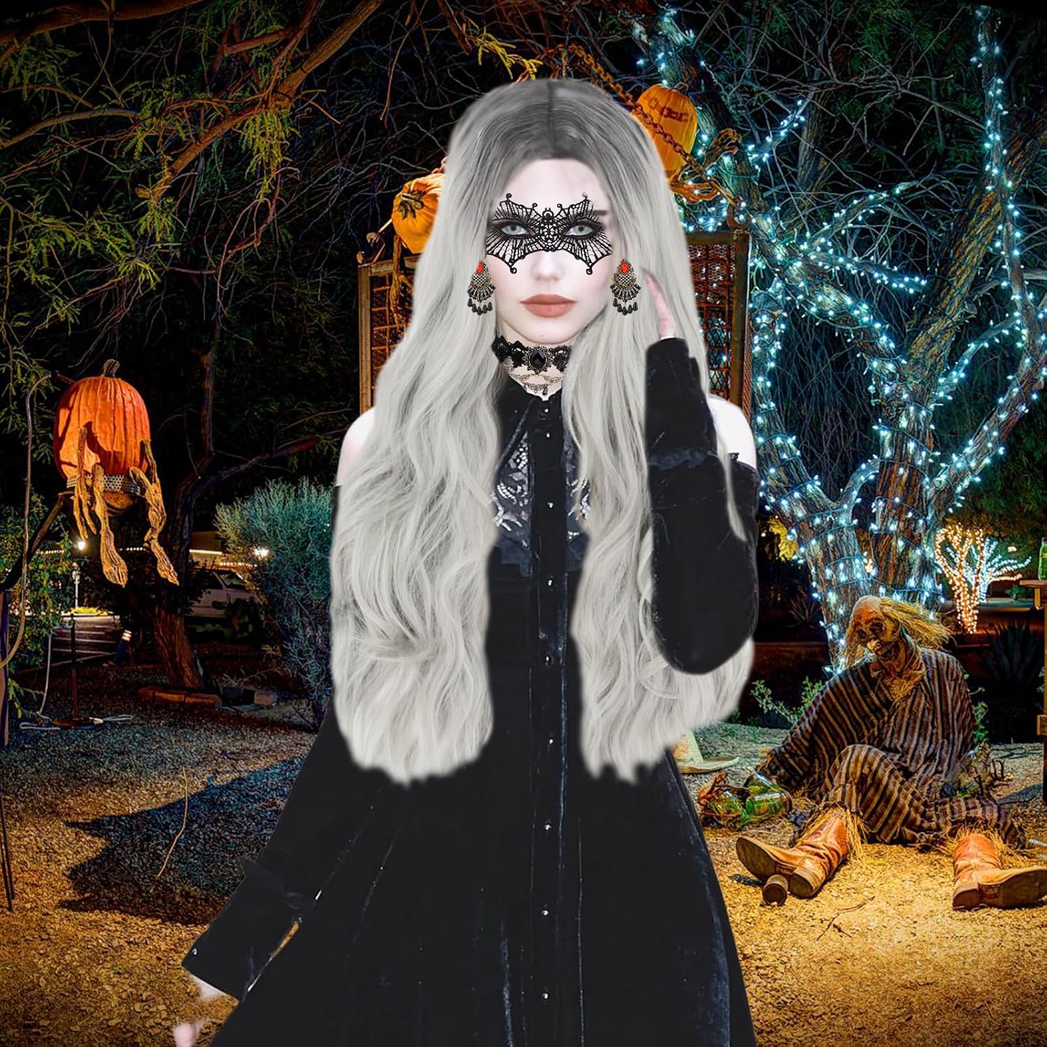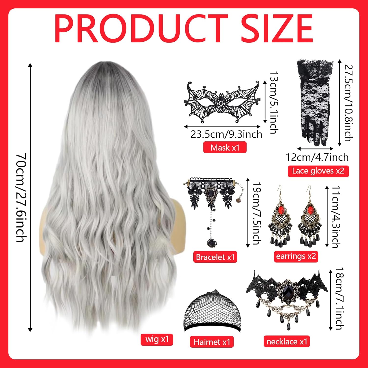 Set di parrucche da donna: riceverete 1 parrucca ondulata grigia argentata da 70 cm, 1 rete per parrucca, 1 maschera in pizzo, 1 paio di guanti corti, 1 collana gotica, 1 paio di orecchini gotici. Questi accessori si abbinano perfettamente a qualsiasi costume da donna di Halloween. Parrucca di alta qualità: le nostre parrucche grigie sono realizzate in fibre sintetiche di alta qualità e sono perfettamente combinate con un cuoio capelluto simulato. I lunghi riccioli naturali saranno realisticamente in stile. La rete rosa incorporata è traspirante, morbida e comoda da indossare. La cuffia può essere regolata in base alla circonferenza della testa. Facile da trasportare: il set di parrucche viene fornito con una rete per parrucca, traspirante e altamente elastica. Ben avvolgente, più naturale da indossare. La parrucca grigia ha una fascia elastica all'interno che può essere regolata liberamente in base alla circonferenza della testa. Adatto per la maggior parte delle persone. Raggiungere una vestibilità liscia e ferma, più comodo da indossare. Set di gioielli gotici: SOETDERT parrucca da donna con pizzo nero e gioielli gotici. Può essere utilizzato tutto l'anno e può essere indossato con diversi abiti, ideale per donne e ragazze. Puoi indossarlo a vari eventi come feste. Porta più segreto alla tua festa. Per tutte le feste: il forte stile gotico si adatta perfettamente ai temi mistici di Halloween e Mardi Gras. Perfetto per Halloween, carnevale, feste in costume, feste in maschera, appuntamenti, cosplay, costumi del giorno dei morti e molto altro ancora. Sii la regina glamour della festa!
