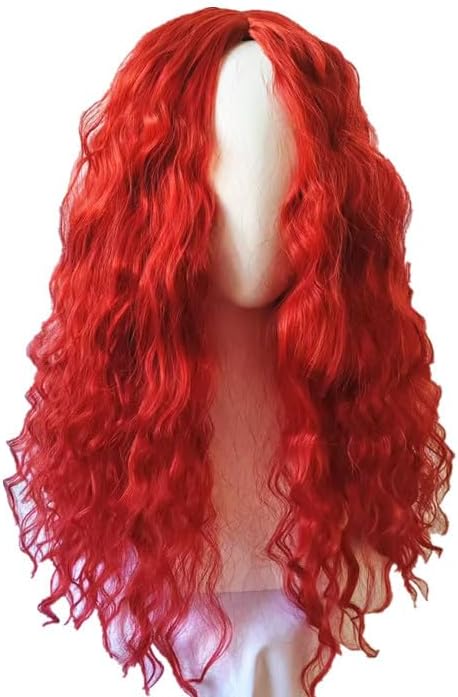 Parrucca da donna con capelli rossi lunghi e ondulati, per cosplay e feste in costume anim