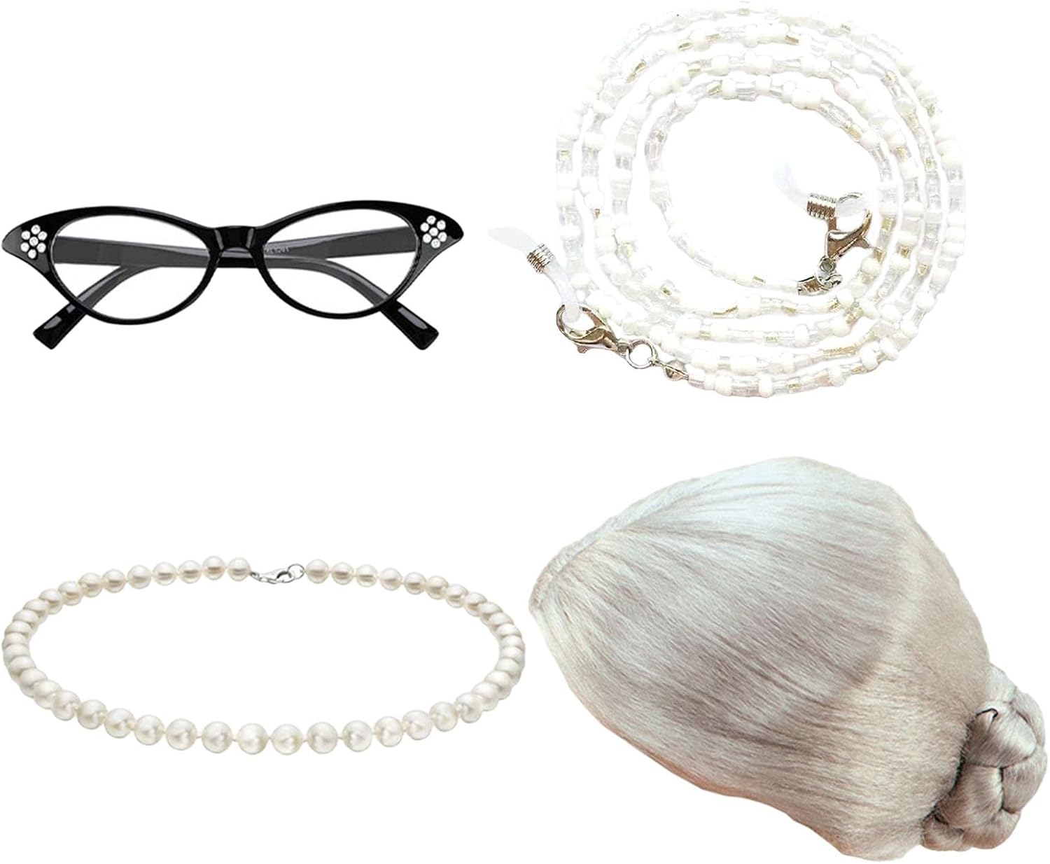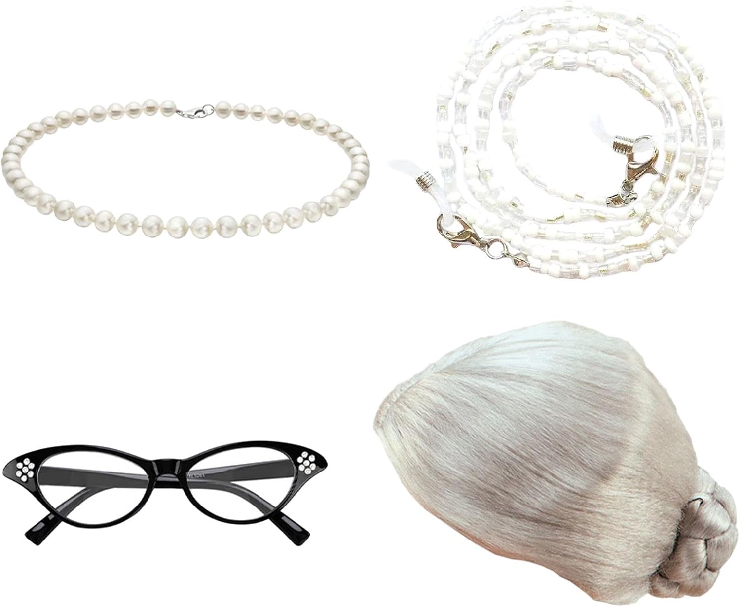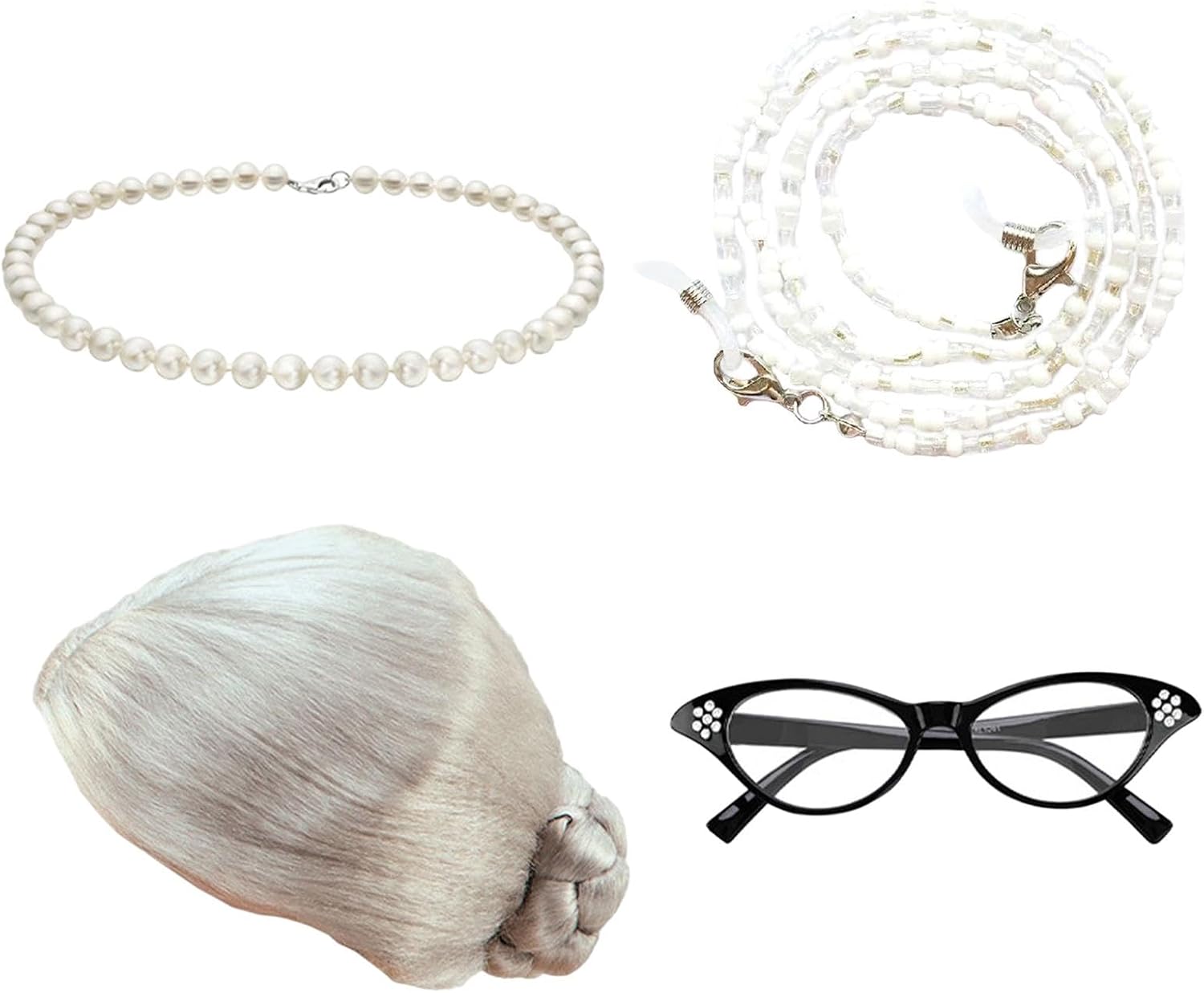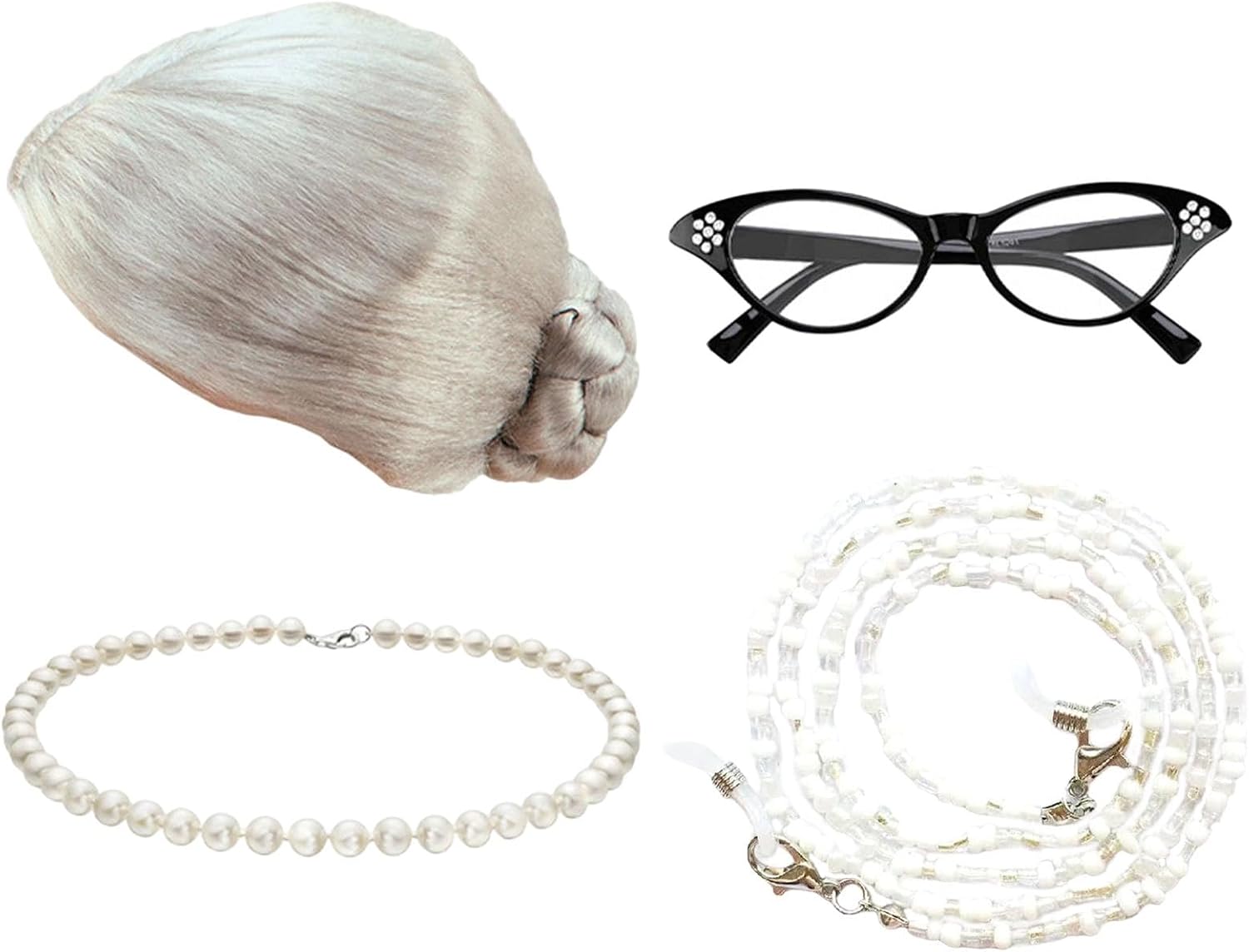 Facile da indossare: il set di costumi da vecchia signora può essere facilmente vestito, leggero e portatile da trasportare. Materiale: il set di parrucche Granny è realizzato in plastica, resistente e garantisce un uso e una lunga durata. Decorazione: il set di parrucca da nonna è il tocco perfetto per il tuo costume da nonna. Taglia: taglia unica. Sembra molto realistico e bello. Ampie applicazioni: questi accessori decorativi per costumi da vecchia signora sono oggetti di scena per spettacoli teatrali, Halloween, Natale, interpretazione situazionale, feste a tema e altre occasioni da indossare, per offrirti un'esperienza vivida