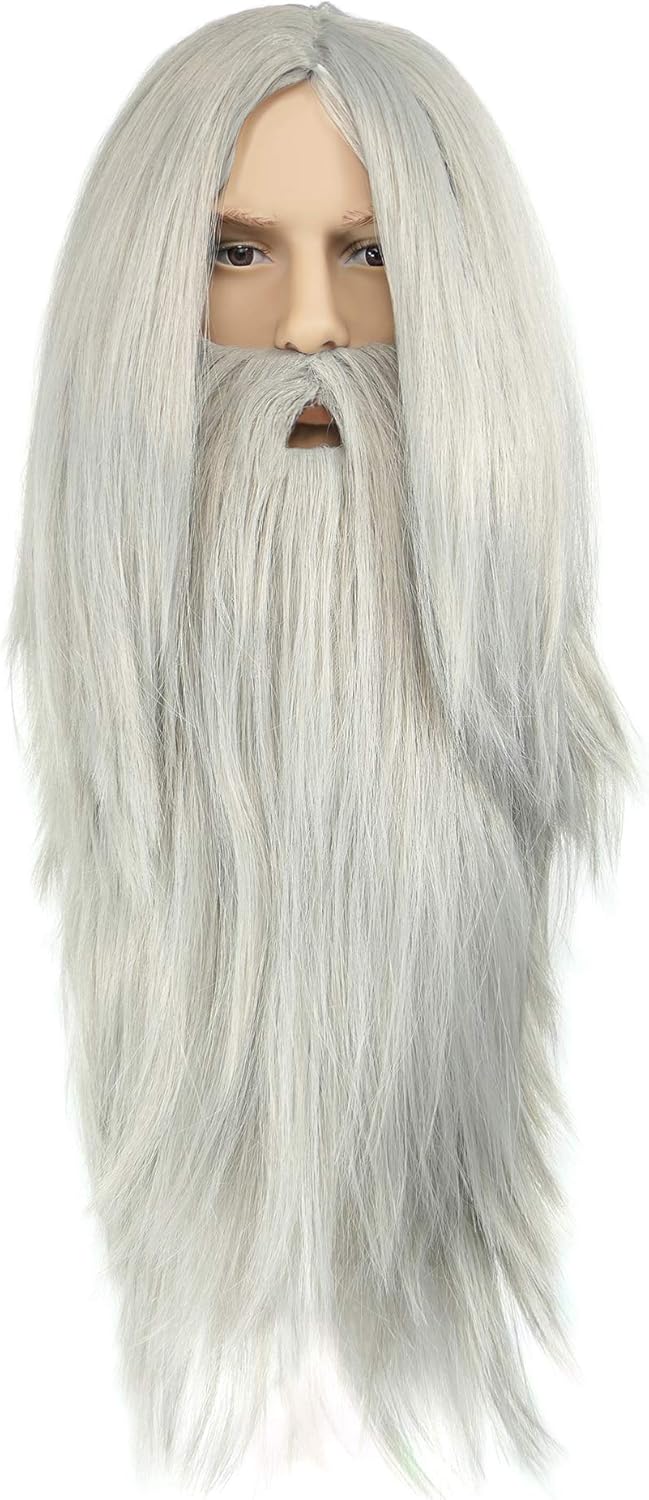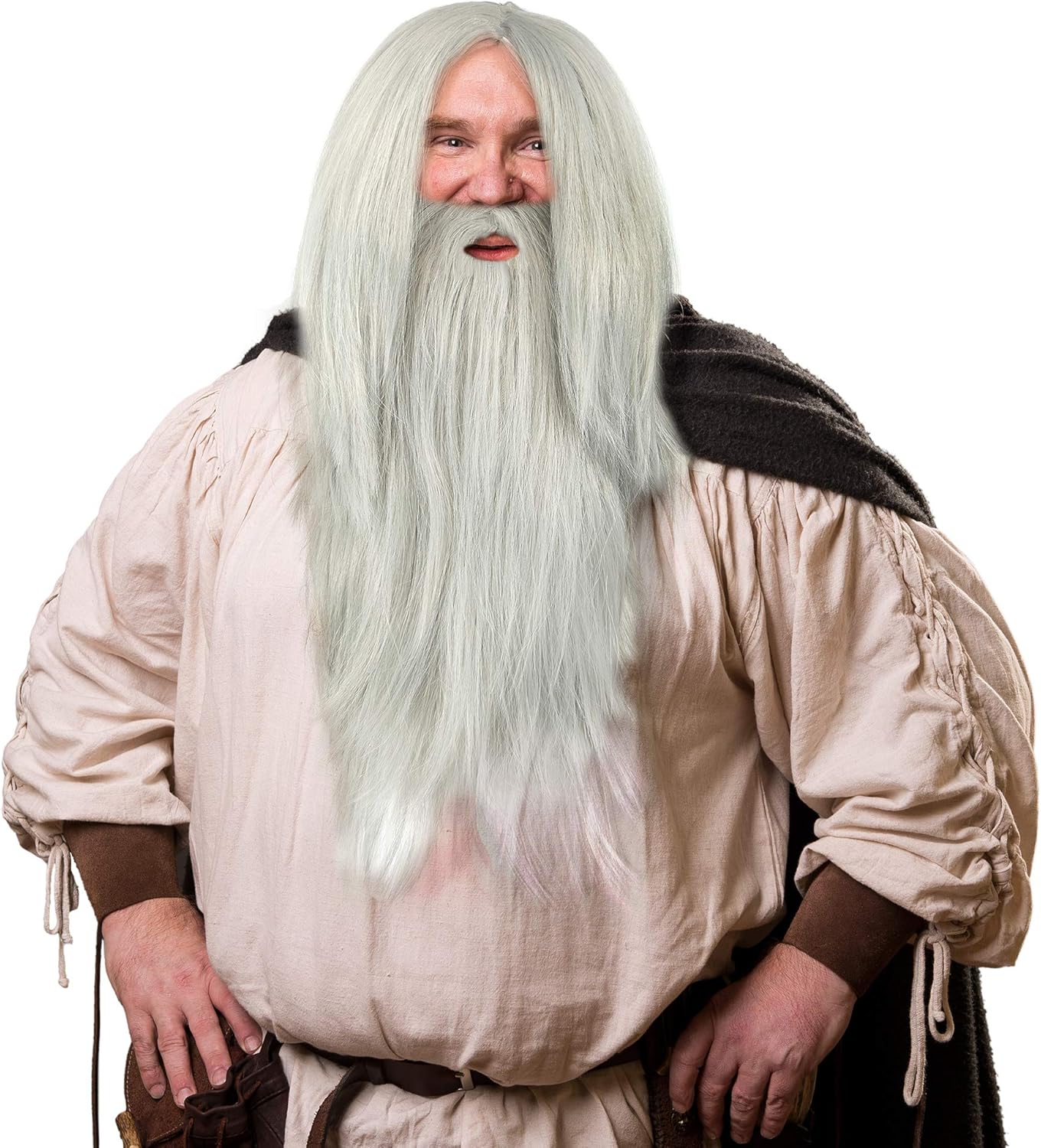 Grande parrucca da mago in grigio con barba lunga grigia super accessorio per completare il tuo travestimento da Mago Gandalf Zeus Dio Stregone Merlino o Silente Non importa se avete bisogno della parrucca da mago con barba per il carnevale o per una festa motto - con essa attirerete sicuramente l'attenzione. Contenuto della fornitura: parrucca da mago + barba Materiale: 100% poliestere