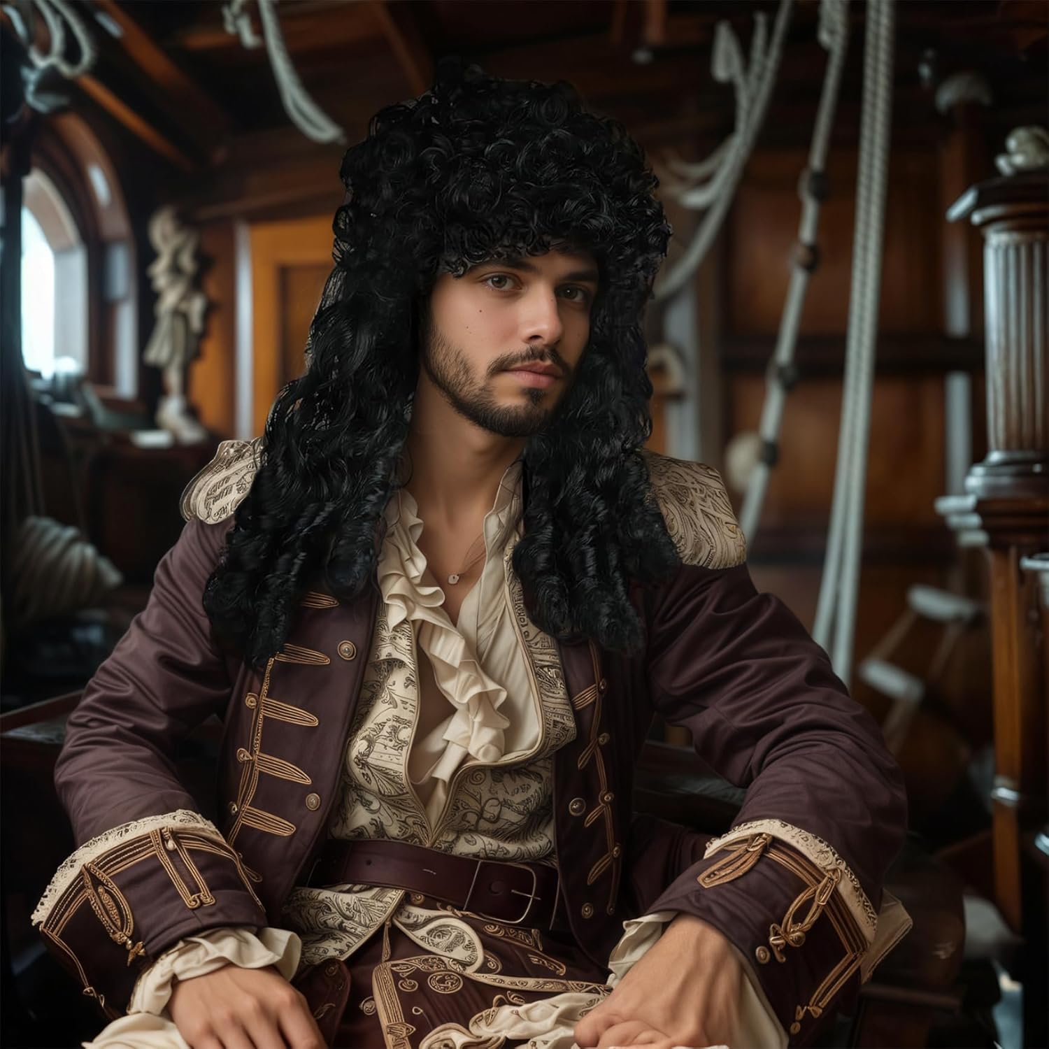 Vestibilità comoda: realizzata con materiali traspiranti e spalline regolabili, questa parrucca garantisce una vestibilità aderente e confortevole per un uso prolungato durante feste o convegni senza irritazioni. Facile manutenzione: questa parrucca da pirata è semplice da modellare e pulire e richiede uno sforzo minimo per mantenerla fresca e realistica, rendendo la preparazione del costume rapida e senza problemi. Qualità: realizzata per un uso ripetuto, la parrucca presenta fibre sintetiche resistenti che mantengono la loro forma resistendo ai grovigli e all'effetto, fornendo un valore duraturo per molteplici eventi. Accessorio per costumi versatile: ideale per varie occasioni come Halloween, feste a tema, cosplay o spettacoli teatrali, questa parrucca abbina facilmente a qualsiasi costume da pirata, aggiungendo carattere e stile istantanei. Autentico look da pirata: progettata con lunghi capelli neri e ricci, questa parrucca da pirata cattura perfettamente il classico stile da capitano, valorizzando qualsiasi costume da pirata per uomo e rendendoti al centro dell'attenzione durante Halloween o eventi cosplay.