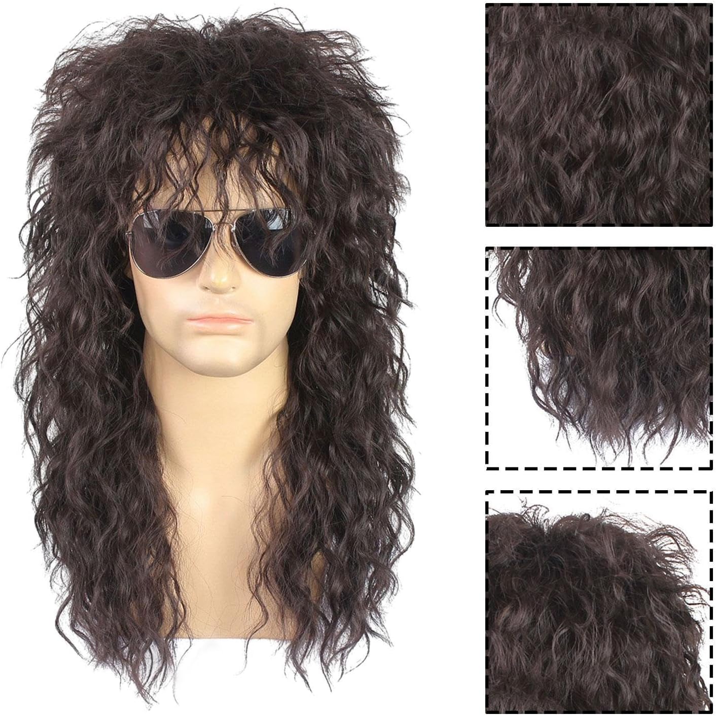 Accessori per costumi anni '80: le parrucche marroni sono perfette per feste a tema anni '80, cosplay, accessori per costumi anni '80, balli in maschera, costumi di Halloween o semplicemente divertimento. Lunghezza ideale della parrucca: 45 cm. Realizzato in fibre capillari di alta qualità che ti permettono di lisciare, tingere e persino tagliare i capelli per adattarli perfettamente alle tue idee. Adatto per la maggior parte delle persone. 【Ecologico】Utilizzando 100% fibra ad alta temperatura, resistente al calore, un processo speciale lo rende facile da curare, fornendo una lunga durata. 【Taglia unica】 I capelli lunghi ricci per uomini e donne possono essere tagliati da soli. Dotato di un berretto taglia unica, puoi goderti la vestibilità perfetta e confortevole. 【Accessori fotografici anni '80/90】 Può essere utilizzato per cosplay anni '70/80/90, costume da rapper alla moda, accessori per costume da rock, look Mullet anni '80, accessori per la decorazione per bambini. Goditi una parrucca per capelli dall'aspetto professionale, costume fai da te.