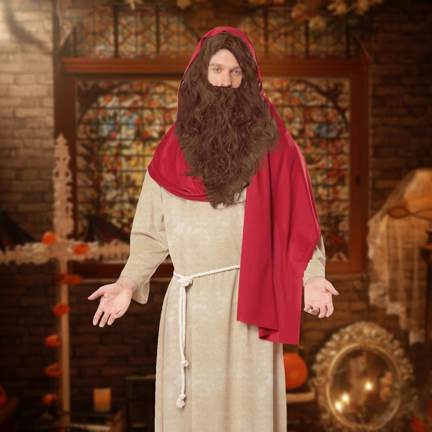 Parrucca e barba in maschera: questi set di parrucche e baffi sono ideali per qualsiasi spettacolo, cosplay di maghi e personaggi medievali, che si abbinano perfettamente a feste di scena, TV, film e costumi. Alta qualità: realizzato con fibre sintetiche, questo set di parrucca e barba è morbido, confortevole e realistico. Le fibre sono di facile manutenzione, garantendoti la possibilità di goderti questo set per molte festività natalizie a venire. Facile da indossare: la barba è dotata di un elastico che può essere facilmente regolato per adattarsi a diverse forme e dimensioni del viso. È comodo da indossare e non scivola o cade facilmente. Perfetto per il gioco di ruolo: la parrucca lunga e riccia e i baffi sono ideali per cosplay di celebrità, comici o membri di gruppi di ragazzi, aggiungendo una sensazione affascinante e fresca al tuo costume. Regalo perfetto: la parrucca da uomo è un accessorio indispensabile e un regalo meraviglioso per i tuoi amici e la tua famiglia in occasione di compleanni, Halloween e Natale, lasciando ricordi indimenticabili e portando un grande successo alla tua festa