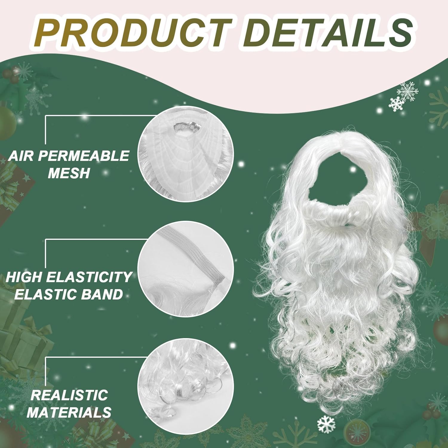 LA CONFEZIONE COMPRENDE: Il nostro set include una parrucca bianca da Babbo Natale. Meravigliosa parrucca di Babbo Natale per creare un'atmosfera piacevole e interessante, può abbinarsi perfettamente al tuo costume, rendendo più divertente il ruolo che interpreti e scattando foto divertenti MATERIALE AFFIDABILE: la parrucca di Babbo Natale è realizzata in fibra sintetica di alta qualità, odore sicuro e non irritante, liscia sulle superfici, affidabile e riutilizzabile, puoi usarla con facilità e sicurezza, vieni e crea il tuo stile DECORAZIONE NATALIZIA: Questa barba finta bianca può essere utilizzata per accessori per costumi natalizi, giochi di ruolo, spettacoli teatrali, spettacoli comunitari, compleanni, celebrazioni aziendali di fine anno, feste festive, feste a tema DELIZIA VERSATILE: Che tu stia interpretando Babbo Natale per un evento di beneficenza o semplicemente desideri diffondere un po' di allegria natalizia, questa parrucca da Babbo Natale è un must, gli accessori per la barba possono aiutarti a creare un aspetto da Babbo Natale per una trasformazione festosa COME REGALO: La barba è folta e multistrato e i baffi sono eccellenti, mentre la parrucca bianca come la neve di Babbo Natale completa l'ensemble classico, catturando i cuori di tutti, il regalo ideale per il prossimo Natale e Capodanno per donne e uomini