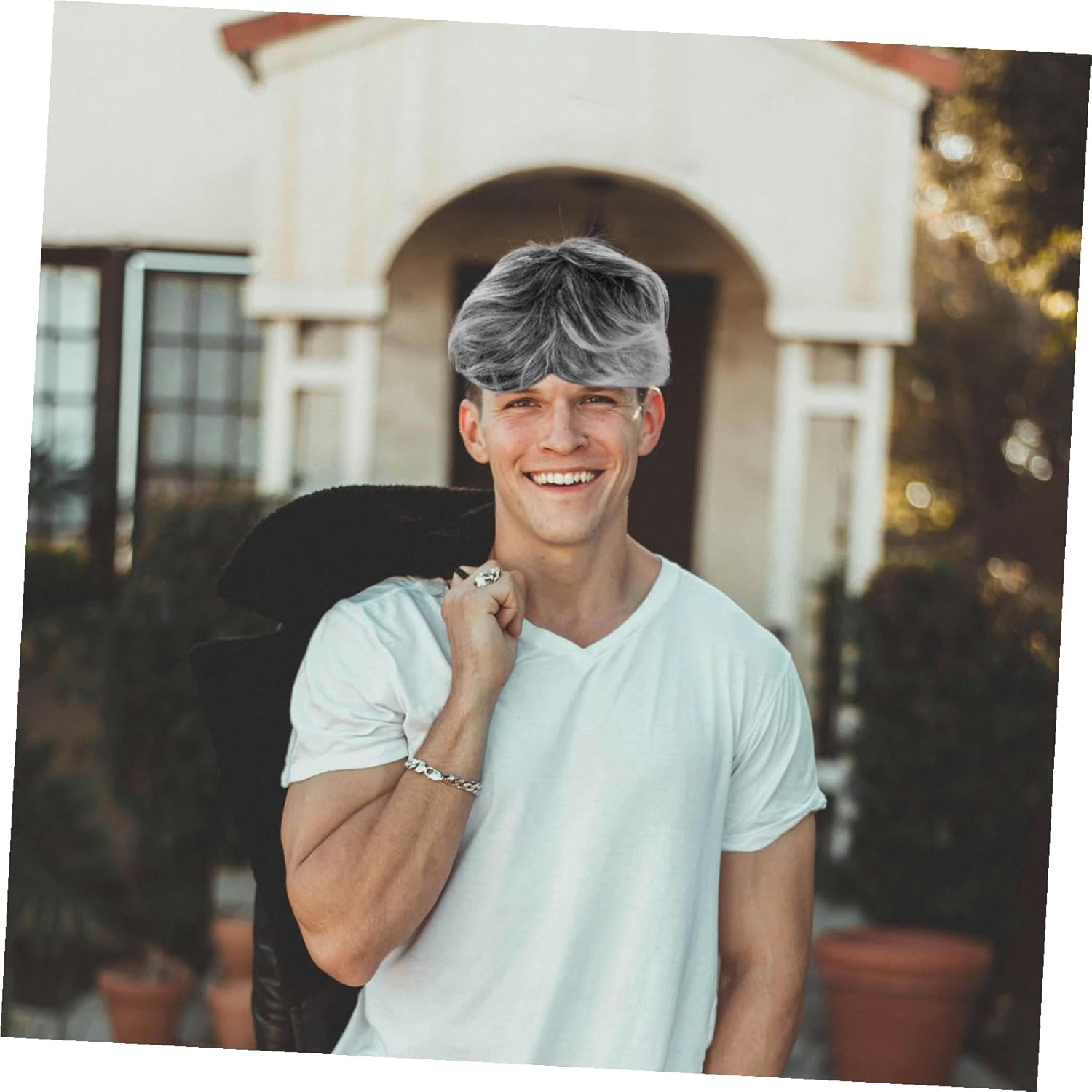 Trasformazione senza sforzo per la vecchiaia: crea all'istante un personaggio anziano convincente con il nostro accessorio per costumi, per un improvviso per il centesimo giorno di scuola e per capelli in costume di halloween, parrucche per costumi da uomo, colorati fermagli per capelli da festa Ideale per l'uso multiscena: si adatta a qualsiasi , rappresentazioni teatrali alle parrucche divertenti in costume per le feste; adatto per parrucche per capelli corti e parrucche da uomo, articoli per feste di halloween, parrucche di carnevale Parrucca a tema anziano: sperimenta un look da anziano credibile con la nostra parrucca da vecchio, ideale per il set di costumi da nonno o parrucche realistiche per donne e uomini in qualsiasi scenario, accessorio per costumi, parrucche per capelli corti Trasformazione istantanea del personaggio: la parrucca per cosplay offre una soluzione rapida per creare un autentico look da persona anziana, ideale per parrucche da festa e cambi di ruolo di emergenza, parrucche divertenti per feste, parrucca per feste Stile nonno: ottieni un autentico costume da nonno con questa parrucca cosplay grigia, progettata per imitare i capelli veri per copricapi maschili che per esigenze cosplay femminili, cuffia per parrucca, parrucca per costume