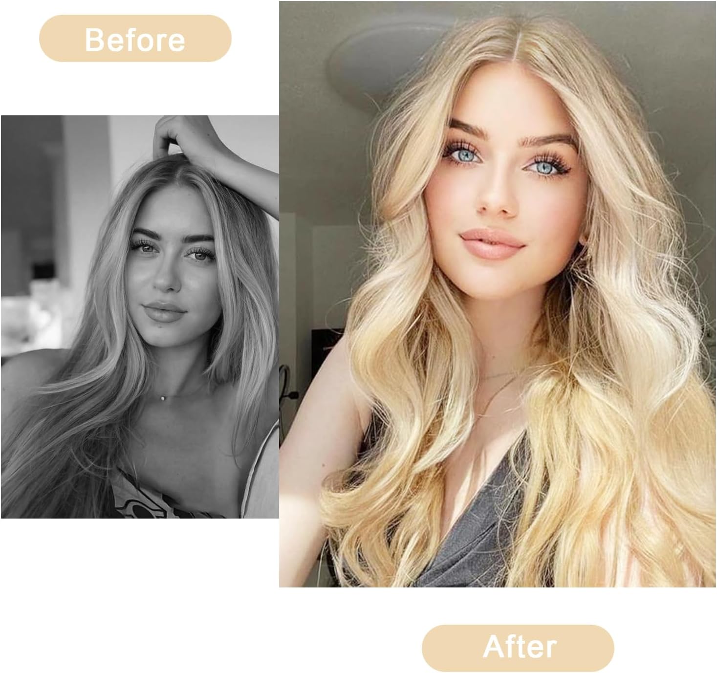Aspetto naturale con cuoio capelluto realistico: questa parrucca ondulata lunga da donna ricci lunghi ha un cuoio capelluto dettagliato e una separazione centrale precisa che creano un aspetto realistico. Il riccio lungo è ideale per tutti coloro che apprezzano la naturalezza. Lunghezza elegante e onde per diversi look: con la sua impressionante lunghezza 70 cm e la voluminosa struttura ondulata, questa parrucca bionda ondulata lunga dona immediatamente un aspetto elegante per donne e ragazze. La lunghezza di 70 cm è perfetta per servizi fotografici, festival o eventi di moda. Capelli sintetici resistenti al calore facili da acconciare: realizzata con fibre resistenti al calore di alta qualità, questa parrucca può essere acconciata con una piastra lisciante o un ferro arricciacapelli fino a 150 °C senza perdere lucentezza o struttura, rimanendo flessibile per cambiare look. Comfort e adattabilità a qualsiasi forma della testa: l'affascinante parrucca con cappuccio regolabile lungo integrato con rete per capelli traspirante si adatta in modo sicuro e confortevole a qualsiasi forma della testa, ideale per lunghi periodi di utilizzo durante feste, cosplay o abbigliamento quotidiano. Pratico set per lo styling all-in-one con pettine: il pettine a punta nero in dotazione aiuta a separare e acconciare con precisione, rendendo questa affascinante parrucca bionda ondulata la scelta perfetta per principianti e professionisti.