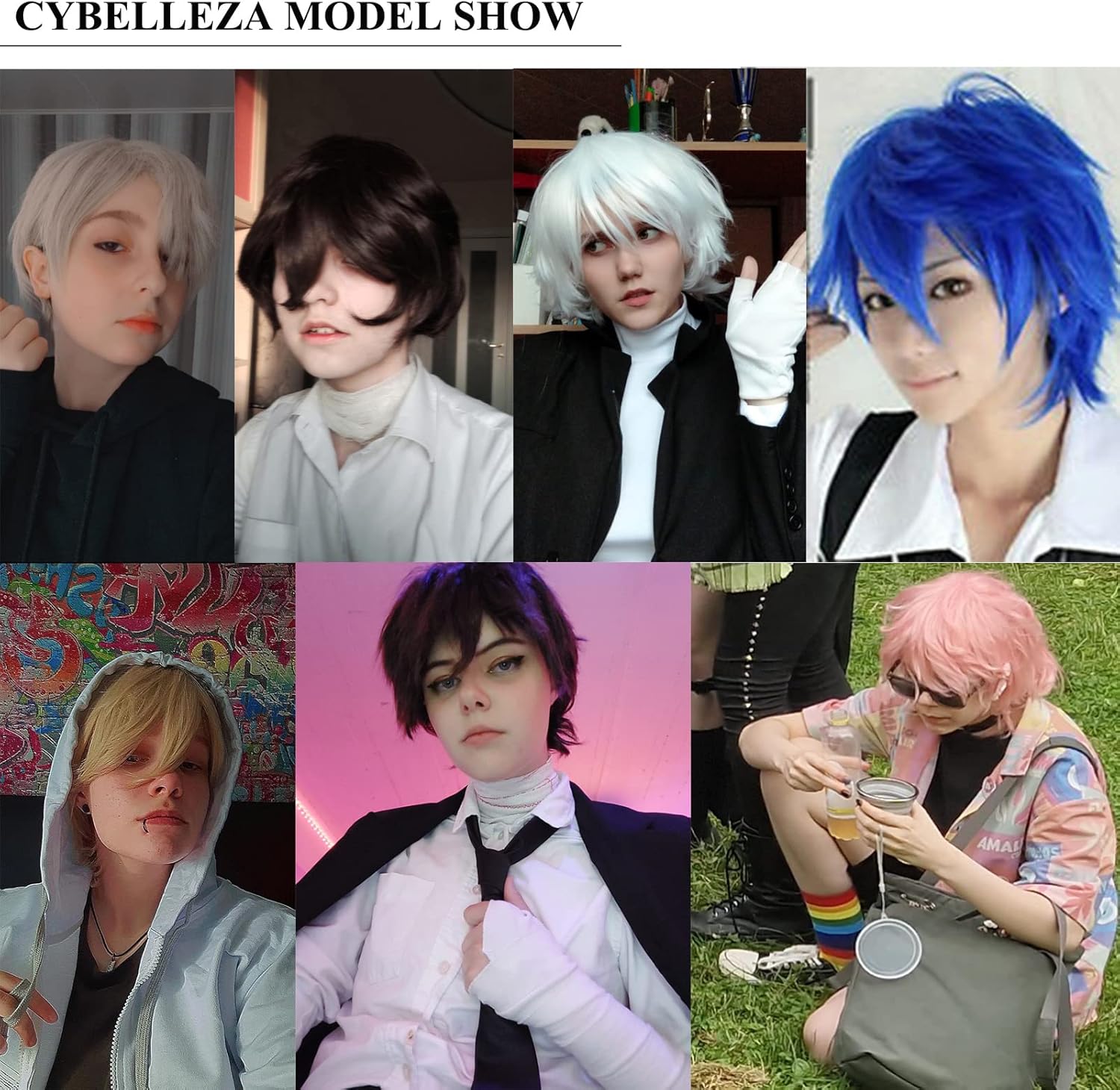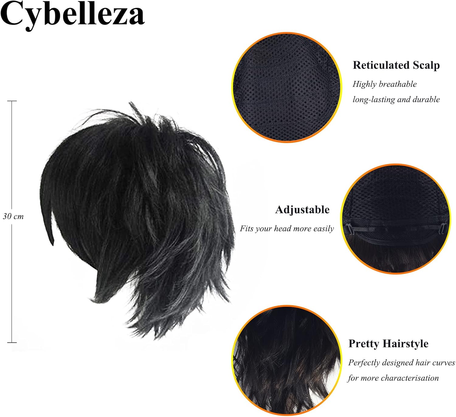 Materiale: Fibra sintetica di alta qualità e resistente al calore. (La parrucca cosplay può essere raddrizzata a 180℃). Morbido liscio senza nodi. Lunghezza: circa lunghezza del collo; peso: circa 130 g. Stile: capelli corti ricci, parrucca completa, onda dritta riccia a strati Cappuccio regolabile per parrucca: traspirante, 2 cinghie regolabili all'interno, la dimensione può essere regolata a 20"-23". Processo speciale per facilitare lo styling dei capelli: per facilitare lo styling dei capelli, alcuni pezzi di capelli molto corti sono nascosti nella parte superiore della testa per facilitare lo styling della parrucca in seguito. Unisex: Può essere una parrucca da donna o da uomo, adatta a feste, costumi, cosplay, club, balli, Halloween, Natale, carnevale o semplicemente per divertimento.
