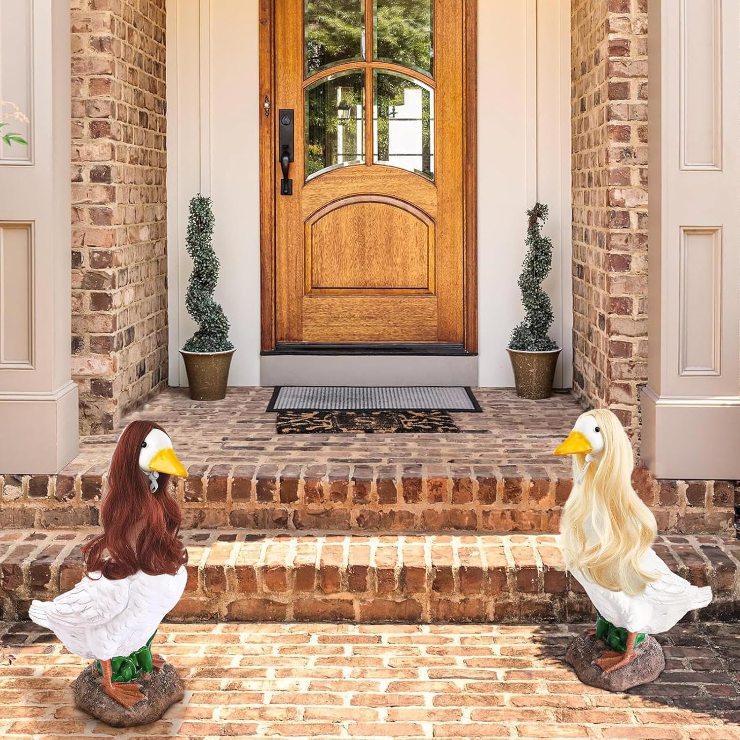 Design accattivante: il design giocoso e stravagante crea un'atmosfera gioiosa e funge da decorazione creativa. Combina moderno con estetica tradizionale e offre a tutti gli utenti di parrucche per animali da terrazza un'esperienza visiva intensa. Resistenza a qualsiasi condizione atmosferica: fibre di alta qualità mantengono la profondità del colore sotto la luce del sole. Progettato con resistenza ai raggi UV e all'umidità per una resistenza affidabile agli agenti atmosferici in caso di uso intensivo esterno. Attira l'attenzione all'aperto: parrucche con superficie dettagliata e struttura dei capelli realistica. Ideale come elemento decorativo da giardino, che si integra armoniosamente nel design esterno. Misura adatta: assicura un dimensionamento preciso e un posizionamento antiscivolo per sculture standard. Arricchisce le proprietà espressive delle parrucche decorative per animali e consente un'integrazione perfetta con diverse opzioni di figure da giardino. Adattamento stagionale: preziosa decorazione con opzioni alla moda come stili lisci/ricci, design innovativi e tre motivi distinti per diverse stagioni
