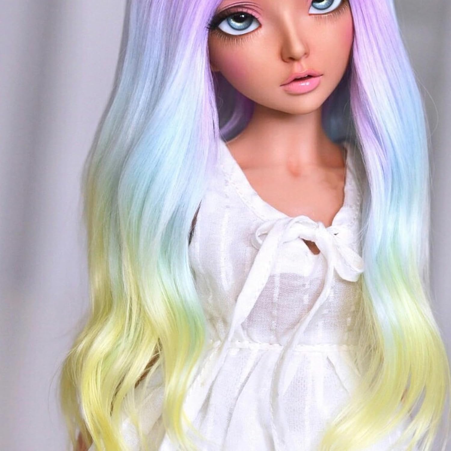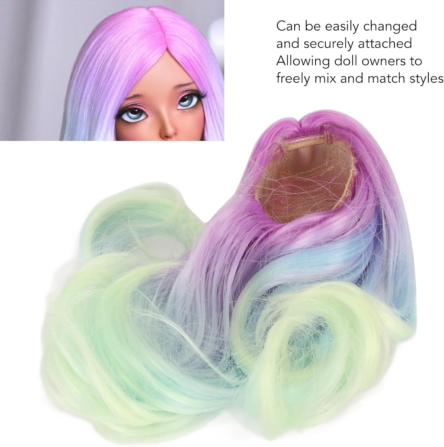 Alte prestazioni: la parrucca offre un'elevata resistenza al calore e allo stiramento, garantendo un uso duraturo senza deformità o danni. Materiale: realizzata con fibra sintetica morbida ed elastica e un cappuccio a maglia fine, la parrucca si adatta perfettamente e naturalmente alla testa della bambola 1/6, senza grovigli o nodi. Applicazione: adatta per una circonferenza della testa di 15,5-17 cm, la parrucca può essere facilmente cambiata e fissata in modo sicuro, consentendo ai proprietari di bambole di mescolare e abbinare liberamente gli stili. Ottima fattura: ogni ciocca di capelli è cucita individualmente nel modello di crescita, creando un aspetto liscio e naturale, esalta la bellezza e il fascino della bambola. Delicata e adorabile: la parrucca è squisitamente realizzata con dettagli raffinati e un aspetto carino e adorabile, che mette in mostra la personalità e lo stile accattivanti della bambola.
