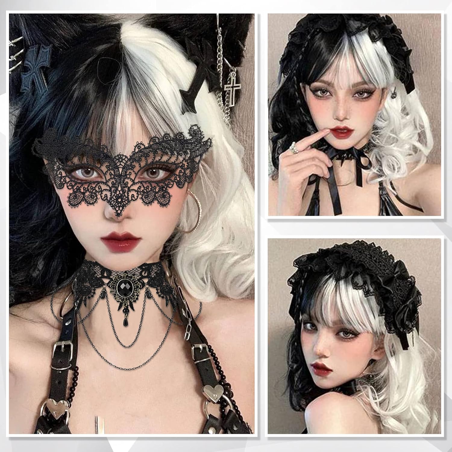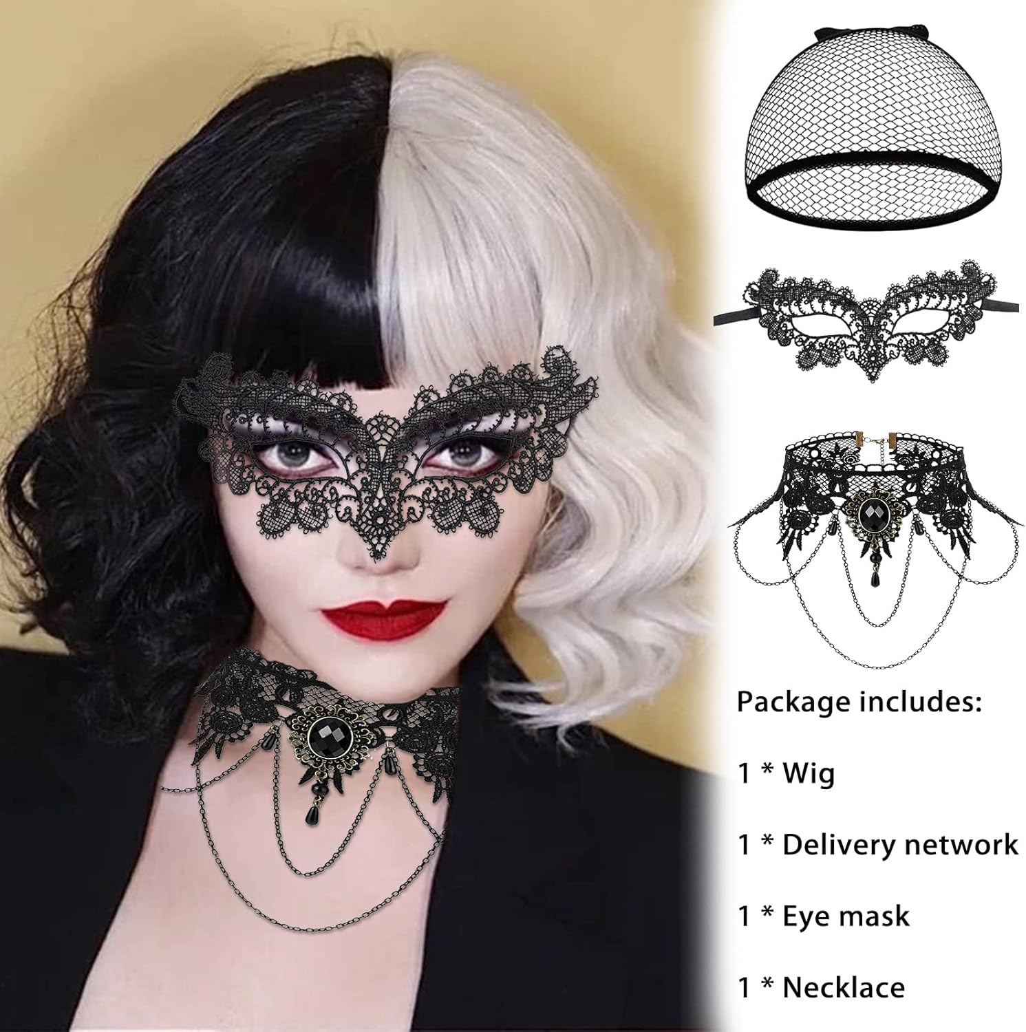 Materiali di alta qualità: la mezza parrucca nera è realizzata in fibre sintetiche resistenti al calore, molto bella e bella. Questa parrucca di Halloween, mezza parrucca sintetica nera e semi bianca per cosplay con una lunghezza progettata secondo il carattere principale del film e ha le dimensioni per adulti. Facile da indossare: parrucca corta nera bianca e nera con una rete interna traspirante regolabile, più forte e durevole rispetto alle normali reti interne. Mezza parrucca nera semi bianca con cuoio capelluto realistico. Le parrucche di Halloween hanno una fascia regolabile all'interno, è possibile regolare la lunghezza per adattarsi alla testa. Ti rende più stabile e comodo da indossare. Facile da pulire e mantenere: parrucca nera e bianca con capelli corti, può essere lavata con acqua. Si prega di lavare questa parrucca di Halloween con uno shampoo delicato in acqua fredda e in un luogo ben ventilato per asciugare naturalmente la parrucca in bianco e nero. Ampia applicazione: questa parrucca in bianco e nero è naturale e morbida, perfetta per gli amanti dei cosplay e delle parrucche. Quando si indossano parrucche di Halloween, vi sentirete come un nuovo personaggio. Questa parrucca semi-nera mezza bianca per servizi fotografici, giochi di ruolo, Halloween, Natale, carnevale, feste a tema, feste in maschera, spettacoli di moda, feste in maschera e così via. Parrucca semi-nera per giochi di ruolo. Contenuto della confezione: 1 parrucca corta nera bianca, 1 maschera in pizzo, 1 retina, 1 collana in pizzo. Garantiamo che lo stile corrisponde a quello mostrato nelle immagini. Questa parrucca di Halloween è adatta per tutte le età, forma del viso o ogni occasione. Ritoccate il vostro viso.