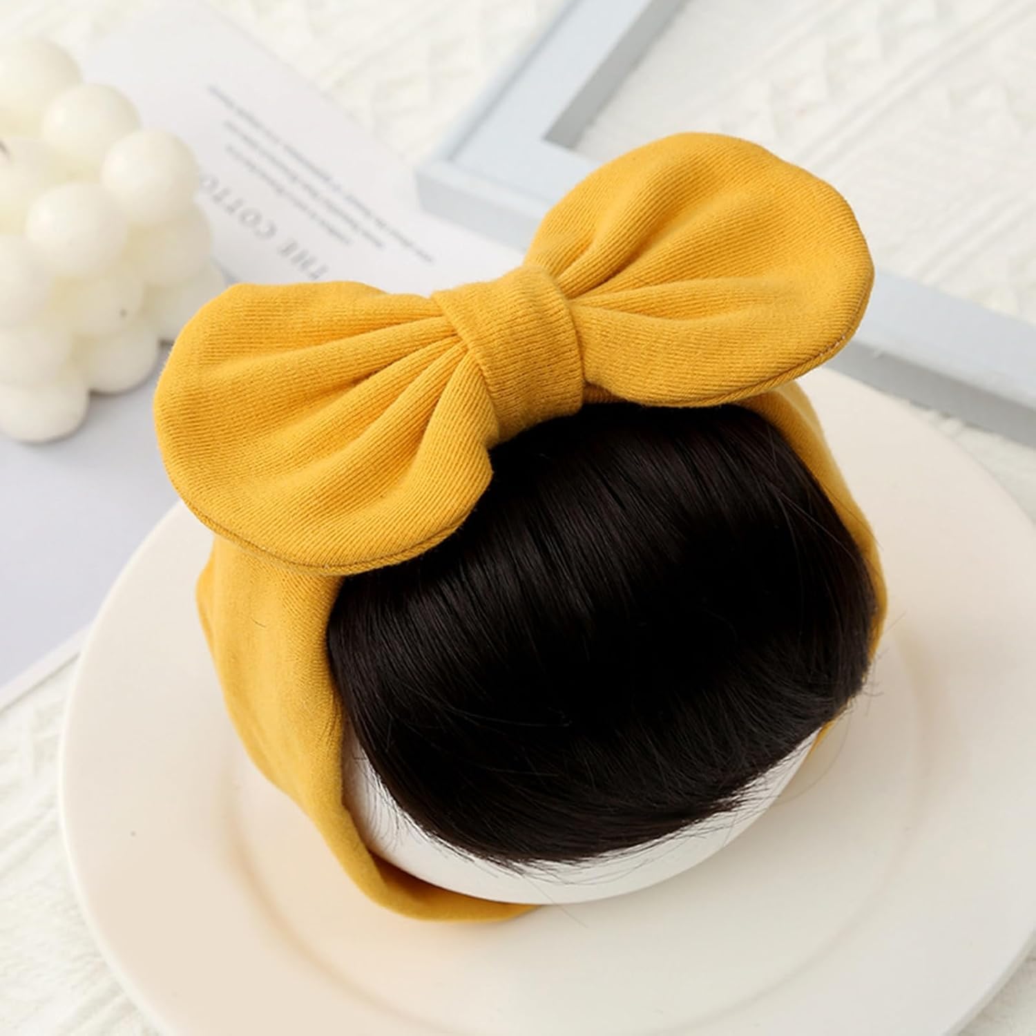 L'adorabile design ad arco aggiunge un tocco dolce al vestito del bambino. La cinghia elastica per capelli garantisce un posizionamento facile e sicuro. Dettagli dimensione: la circonferenza della testa è di 43-47 cm. Realizzato con capelli simulati di alta qualità per una consistenza realistica. I materiali morbidi garantiscono una vestibilità confortevole senza irritazioni.