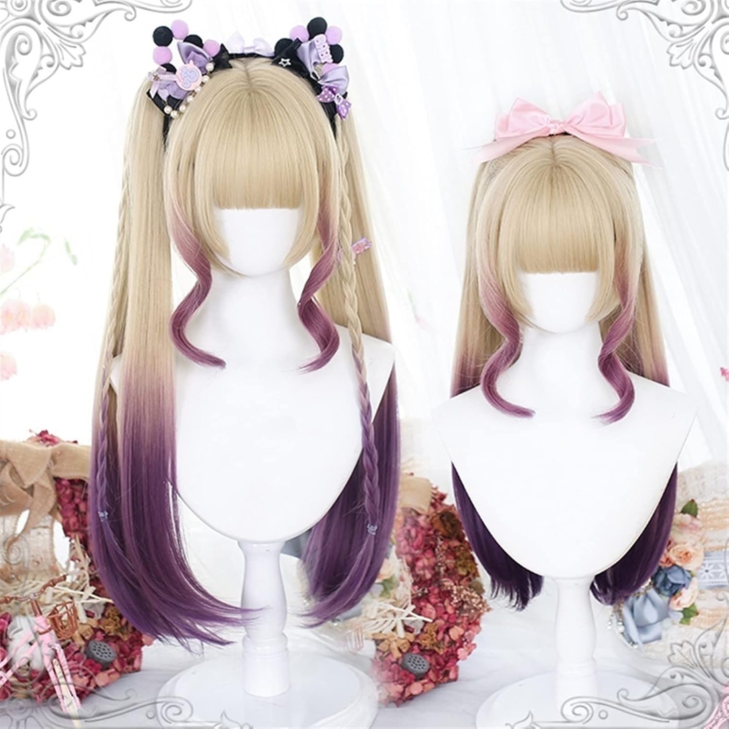 Materiale: le nostre parrucche sono realizzate al 100% in fibra sintetica resistente alle alte temperature. Da ogni fibra sintetica a ogni pezzo di rete, utilizziamo materiali di alta qualità, sicuri e confortevoli. Questo è il miglior materiale in fibra per la realizzazione di parrucche. Sembra proprio come capelli veri. Stile: fibra di alta qualità resistente al calore, può essere lisciata e arricciata. Puoi acconciare questa parrucca come preferisci. Puoi provare diverse acconciature. Adatto per: Lascia i capelli naturalmente lisci e setosi. Può essere utilizzato tutto l'anno, per cosplay, Halloween, feste a tema, styling alla moda o semplicemente per divertimento. Cura: questa parrucca è facile da lavare e da curare, basta aggiungere una piccola quantità di shampoo delicato in acqua fredda. Non cercare di fissare perfettamente ogni capello con le forcine, altrimenti la parrucca apparirà innaturale. Nota: è normale che i capelli fini cadano. Potrebbero creare disordine durante il trasporto, si prega di riordinarli prima dell'uso. A causa dell'illuminazione e del monitor, potrebbero esserci lievi differenze tra l'immagine e l'articolo ricevuto.