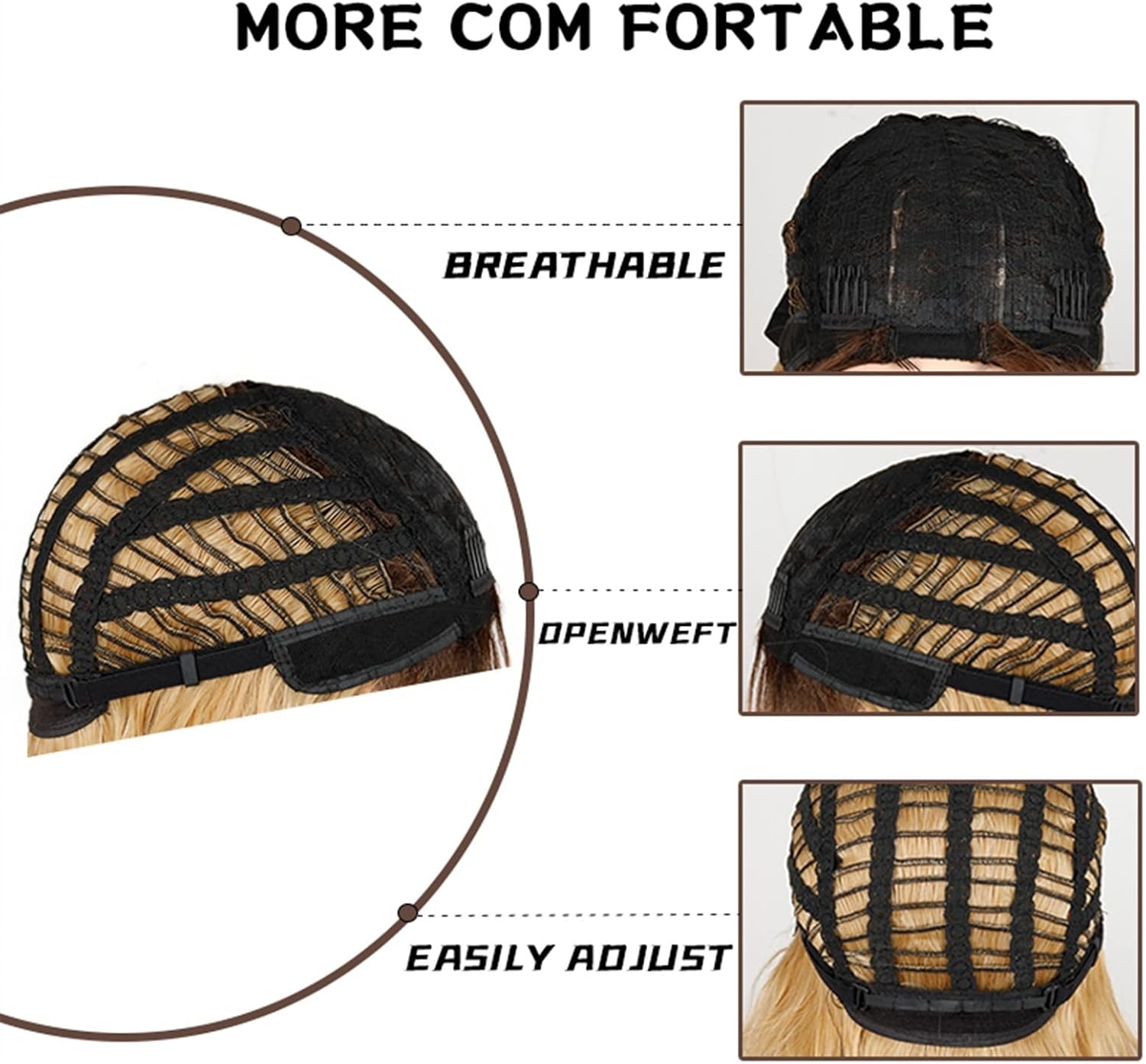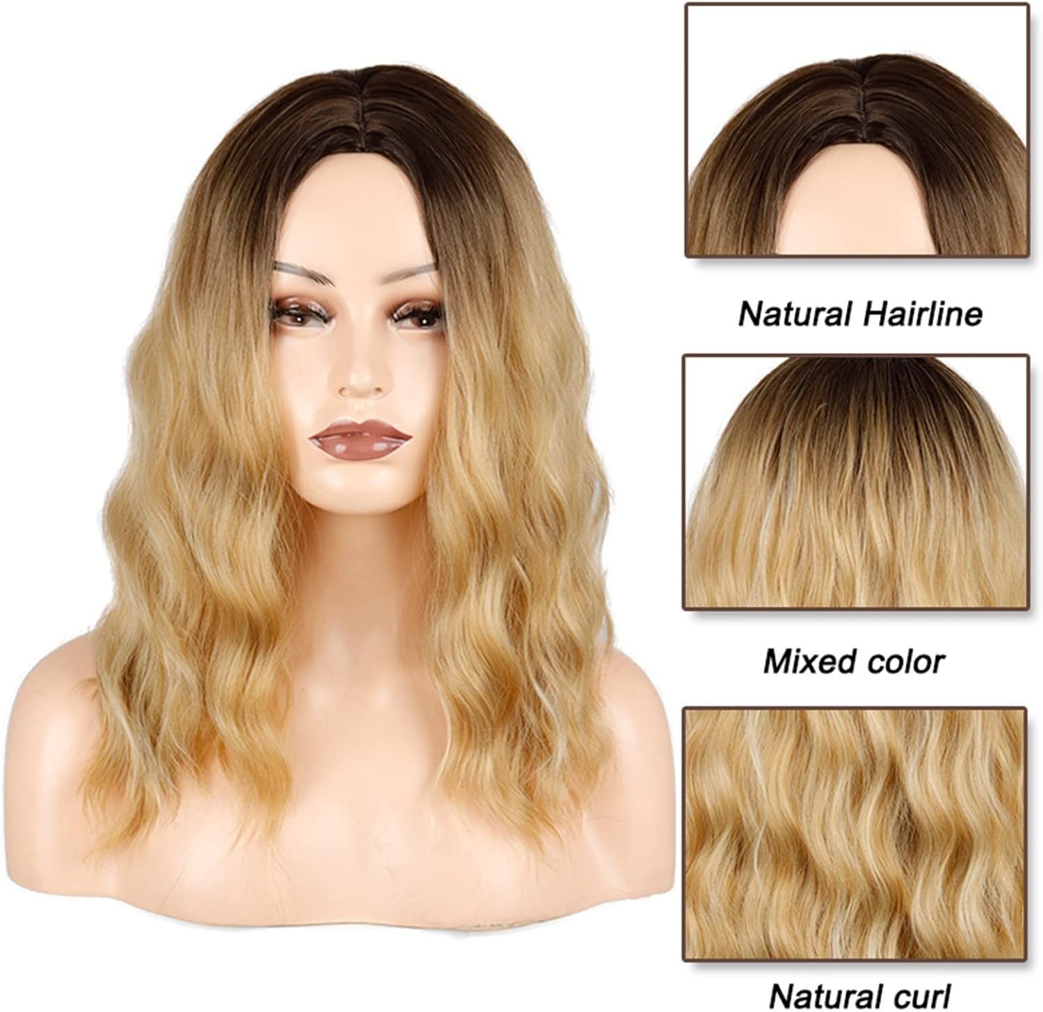 Materiale: fibra sintetica resistente al calore di alta qualità color oro sfumato, aspetto naturale e morbido al tatto. Texture: design corto e ondulato, naturale e morbido come i veri capelli umani, con riga centrale, aspetto e sensazione più naturali, con colori realistici. Occasione: può essere utilizzato per l'uso quotidiano, l'intrattenimento, le feste a tema, i costumi, i giochi di ruolo o qualsiasi altra occasione. Struttura del cappello e della tesa: tesa semplice e design a trama aperta, migliore traspirabilità, nessuna sensazione di soffocamento durante l'uso. Taglia regolabile, comodo e confortevole. Suggerimenti: a causa delle impostazioni del colore del monitor del computer o per altri motivi, il colore potrebbe talvolta risultare leggermente diverso dalla foto.