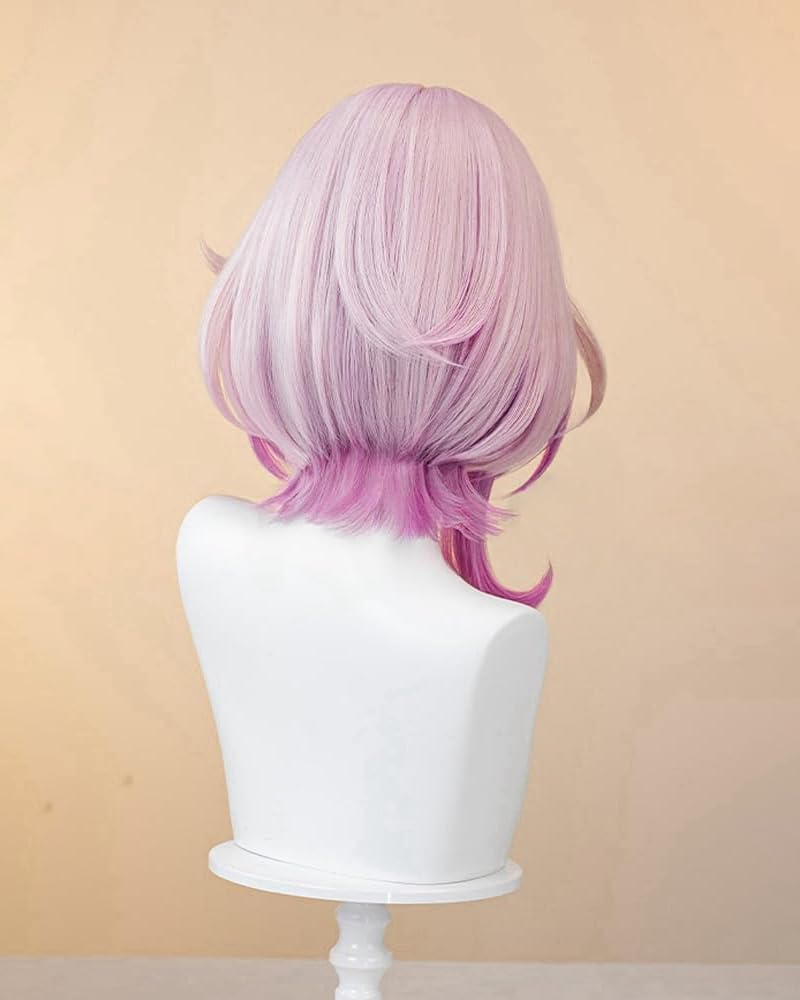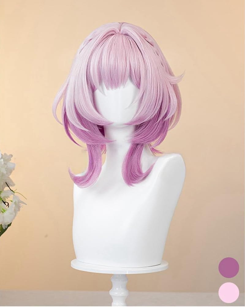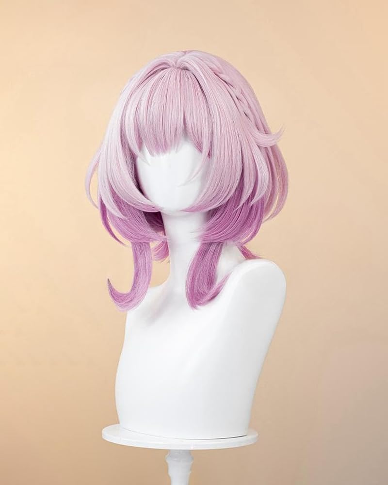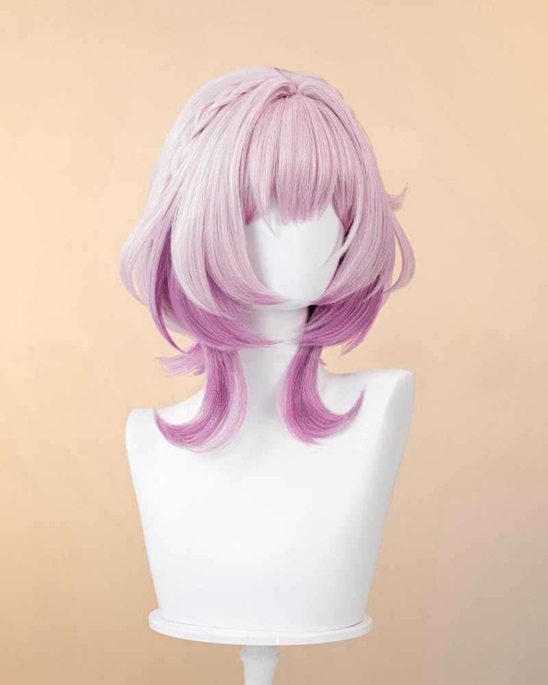Parrucche Cosplay Gioco Delle Donne Per Cirene Rosa Gradiente Parrucca A Strati Corti Con Treccia Capelli in Fibra Sintetica Resistenti Al Calore Per La Festa Di Halloween