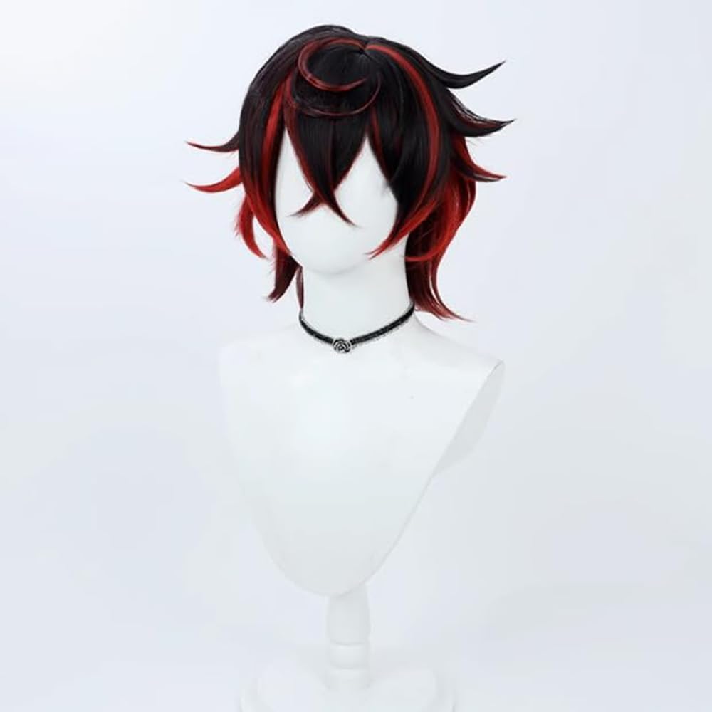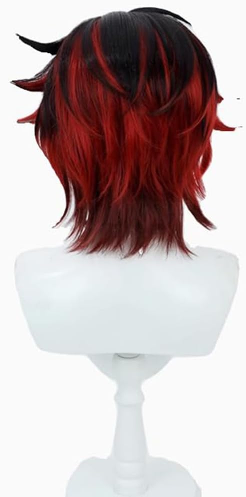 Parrucche Cosplay Gradiente Nero Rosso Da Uomo Con Frangia Parrucca Sintetica Resistente Al Calore Per La Festa Di Halloween