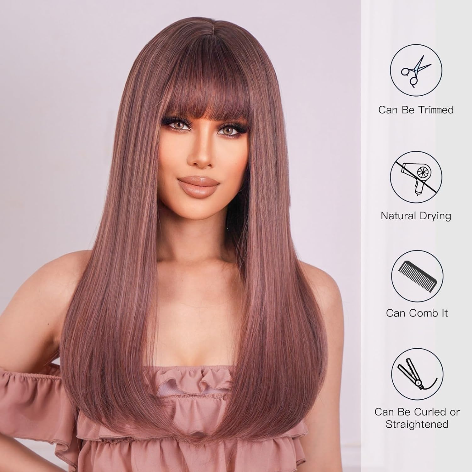 Materiale della parrucca: fibra sintetica di alta qualità resistente al calore, materiale della cuffia della parrucca leggero e traspirante, aspetto naturale, super morbido e delicato sulla pelle. Taglia del cappello: taglia unica adatta alla maggior parte delle forme e dimensioni della testa, con cinturino regolabile incluso. È possibile allentare o stringere il cappello per ottenere la vestibilità più comoda. Colore della parrucca: parrucca bordeaux. Verifica se questa parrucca è adatta alla tua pelle e alla forma del viso. Il colore può variare leggermente a seconda delle impostazioni del monitor del tuo PC o del tuo cellulare. Occasioni applicabili: puoi indossarlo per l'uso quotidiano, feste, giochi di ruolo, concerti, matrimoni, lauree, appuntamenti o come regalo per i tuoi amici.