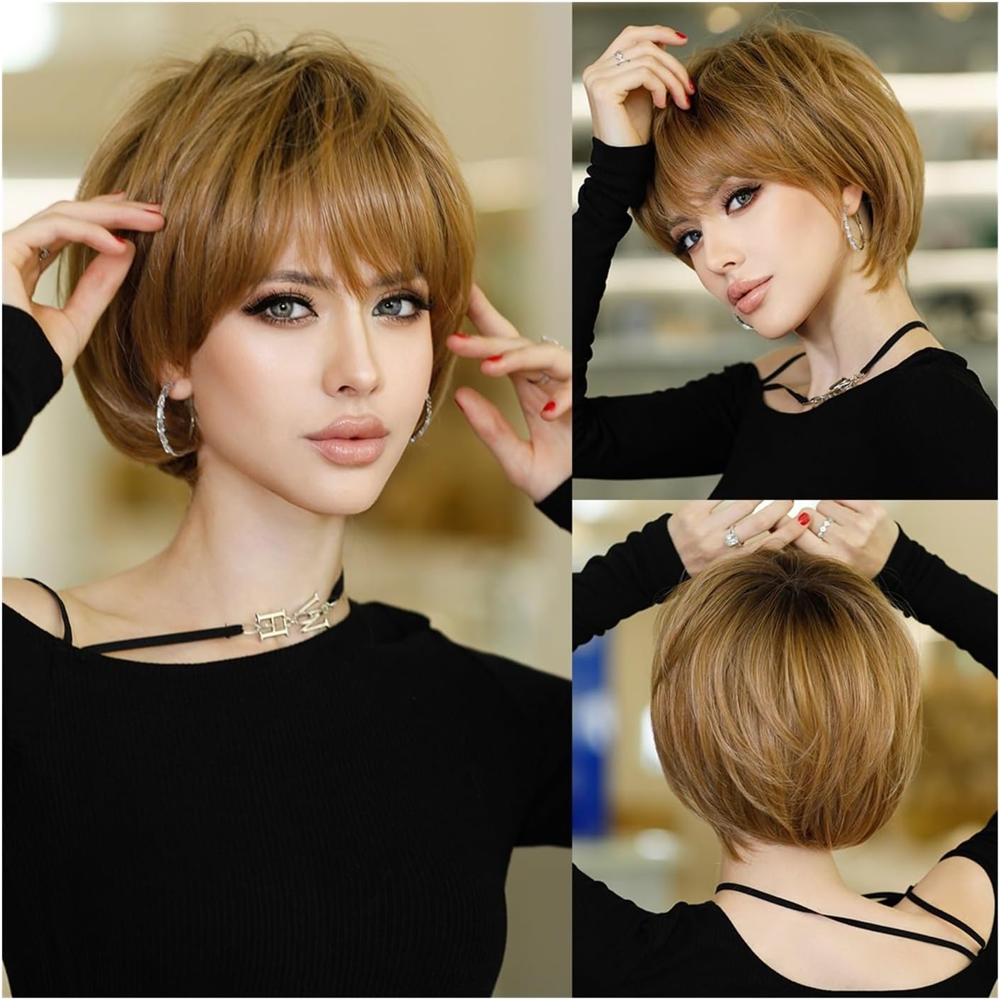 Parrucca bionda sfumata da donna, per feste quotidiane, parrucca caschetto soffice, capelli sintetici naturali, frangia alla moda, fibra resistente al calore Materiale: capelli sintetici di alta qualità, simili a veri capelli umani. Morbidi, delicati sulla pelle e confortevoli. Caratteristiche Parrucca in fibra ad alta temperatura, può resistere a temperature elevate di 150 gradi Celsius (300 gradi Fahrenheit) Il cappello e le dimensioni sono nella media e si adattano alla maggior parte delle persone. Ci sono due cinturini di regolazione su entrambi i lati della parrucca, per adattarla alla misura della testa. Occasioni Perfetto per tutte le occasioni, che si tratti di lavoro quotidiano, matrimoni, feste, concerti, cosplay, feste a tema, Halloween o riprese video, è la scelta migliore. È anche un ottimo regalo per i tuoi amici e familiari.