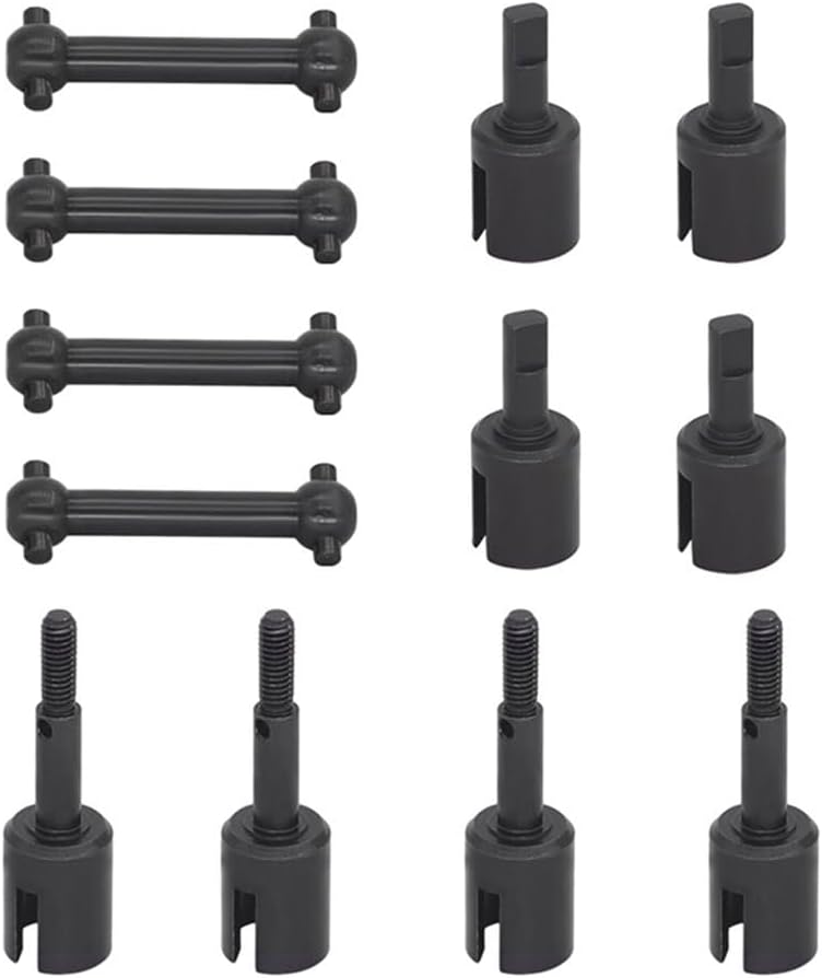 [Kit di aggiornamento tutto in uno] Questo set completo comprende 4 alberi di trasmissione, 4 coppe articolari e 4 differenziali per auto RC TT01 e TT02. Costruzione robusta: realizzati in resistente acciaio calibro 45, questi pezzi sono costruiti per resistere a condizioni di gara difficili e migliorare la durata. [Adatto per le prestazioni] Con dimensioni di 38 x 12 mm, 5 x 12 mm e 41 x 12 mm, questo aggiornamento è progettato per una vestibilità precisa e un funzionamento ottimale. [Componenti leggeri] Ogni parte pesa tra 35 ge 40 g, la tua auto telecomandata rimane agile senza compromettere la resistenza. [Controllo delle dimensioni] Controlla i requisiti di dimensione specifici della tua auto telecomandata prima dell'acquisto per la migliore vestibilità.