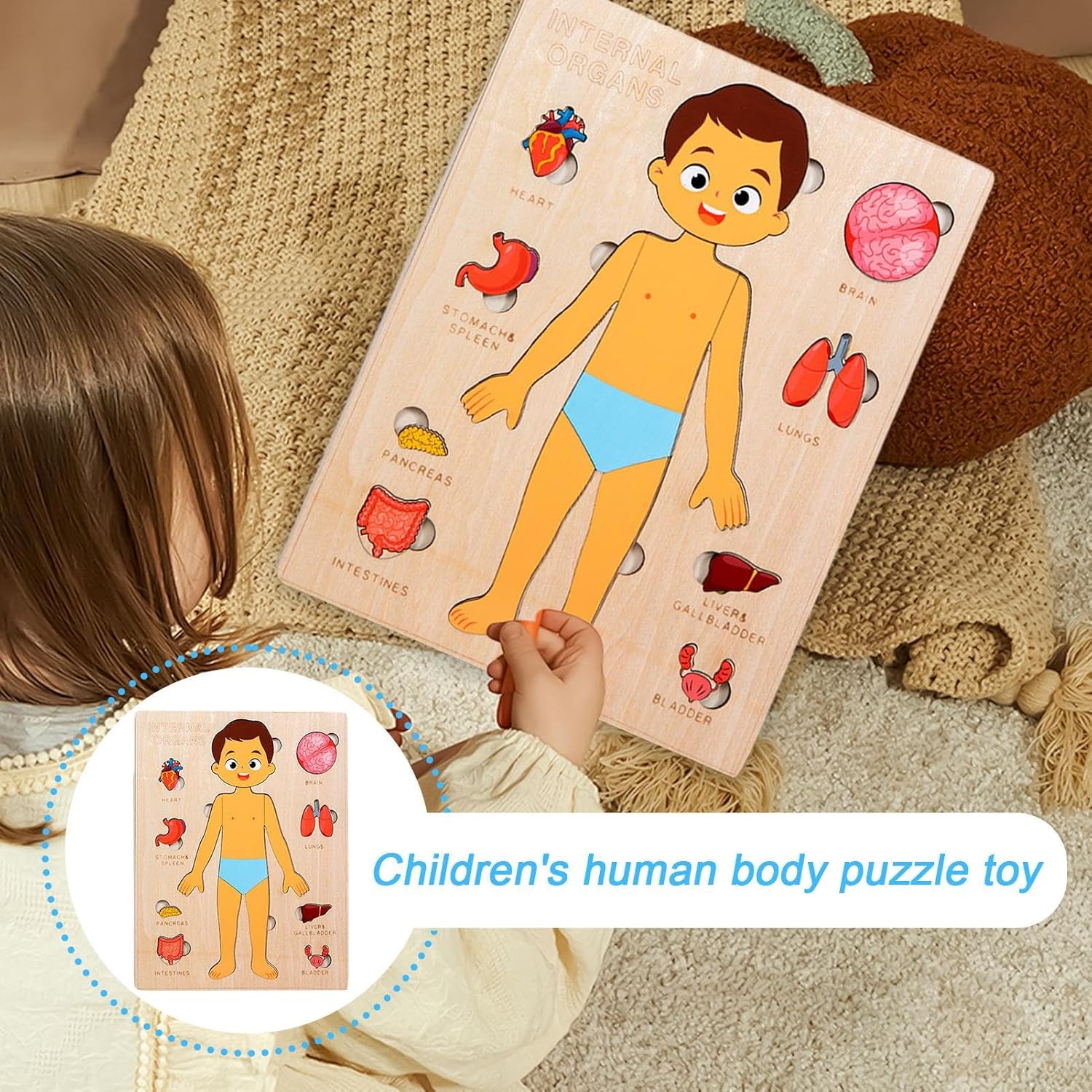 Giocattolo Educativo in Legno: Puzzle in legno di tiglio coinvolgente che favorisce il pensiero logico e la consapevolezza spaziale attraverso il gioco interattivo per bambini che esplorano gli strati 'anatomia . Puzzle Anatomico Interattivo: Puzzle del corpo umano per bambini che funziona come giocattolo per imparare l'anatomia stimolando la curiosità scientifica offrendo un'esperienza educativa STEM pratica con caratteristiche da giocattolo scientifico Gioco Senza Schegge: Puzzle sicuro per bambini prodotto con legno sostenibile, progettato senza schegge e con bordi arrotondati per garantire strumento didattico piacevole e protetto durante ogni utilizzo. Favorisce Apprendimento Interattivo: Progettato come giocattolo in legno di precisione, questo puzzle presenta un incastro per affinare la motricità fine infantile, offrendo un'esperienza coinvolgente con pezzi tagliati con cura per un montaggio senza , incoraggiando concentrazione e migliorando la destrezza tattile senza compromettere sicurezza o funzionalità. Educazione all'Autocura: Promuove la consapevolezza corporea con attività interattive, servendo da enciclopedia anatomica che coinvolge i bambini nell'esplorazione pratica dei concetti anatomici per una comprensione più approfondita.
