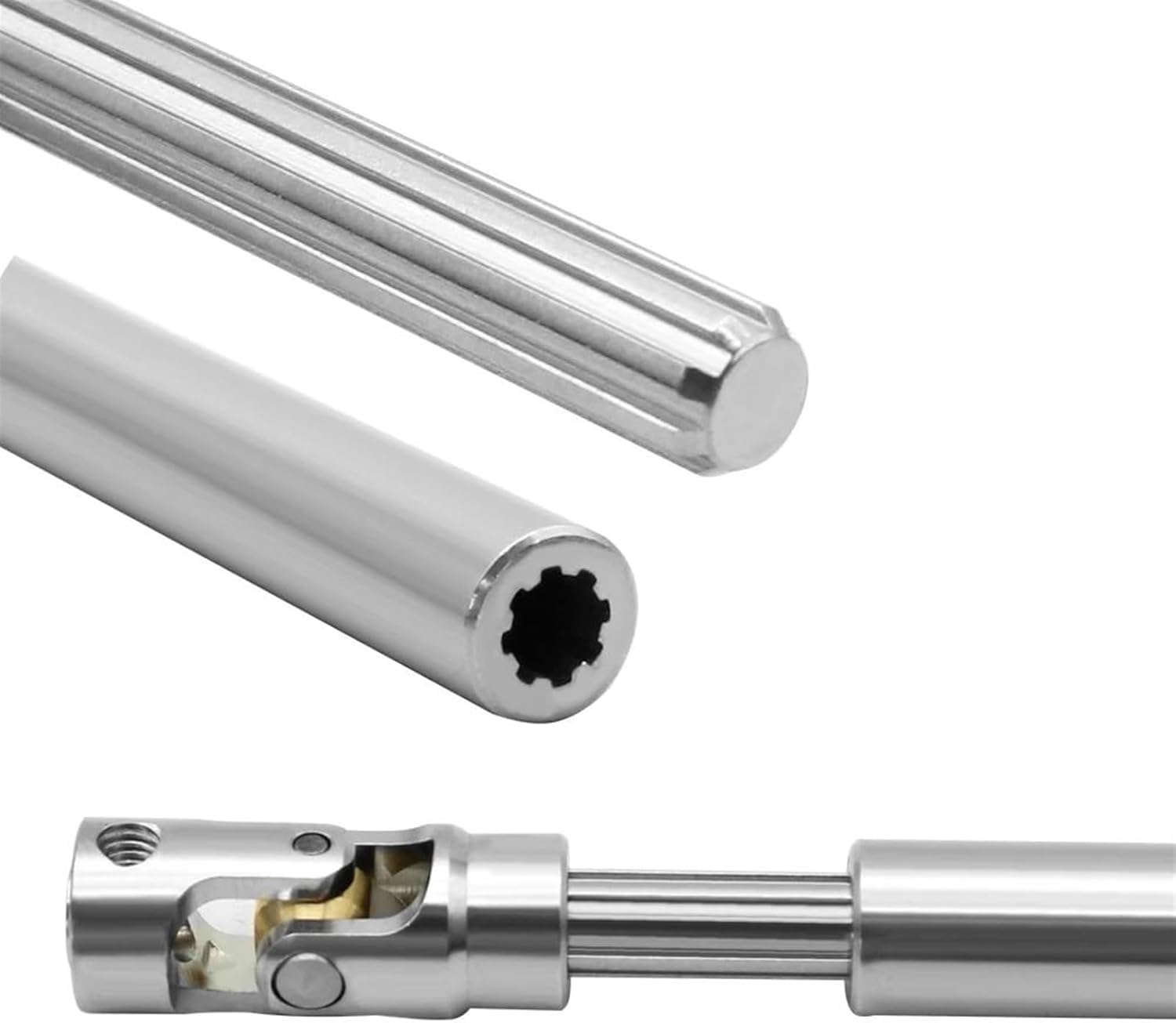 Nome prodotto: Accessori per auto telecomandati per auto giocattolo Parti di ricambio per parti di aggiornamento Albero scanalato interno avanzato lavorato a CNC Con un design innovativo e una lavorazione squisita, la tua auto telecomandata sembra più vivida. e aiuta a migliorare le prestazioni generali complessive. Funziona con la maggior parte dei camion e delle trasmissioni, progettato per consentire una rotazione e una resistenza più fluide. Promemoria caldo: per offrirti un'esperienza migliore con il prodotto, ti consigliamo di confermare la compatibilità prima di ordinare. Assicurati di acquistare il prodotto giusto.